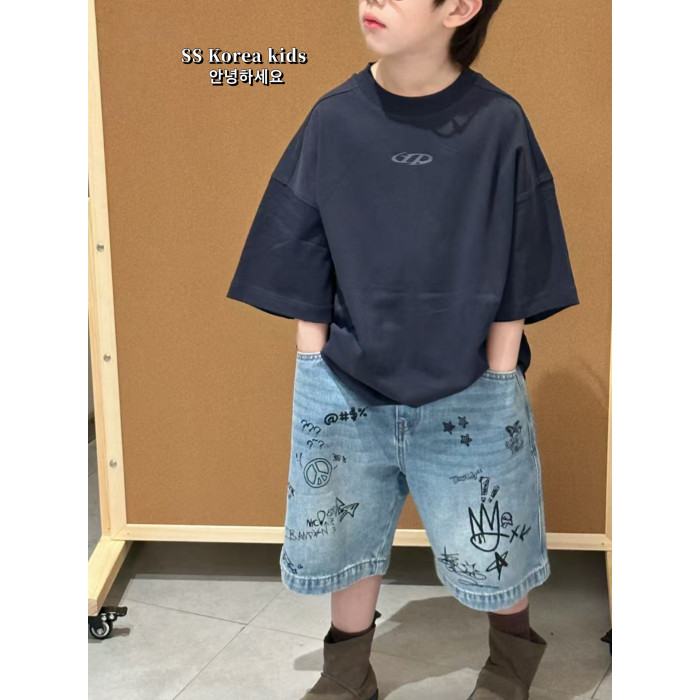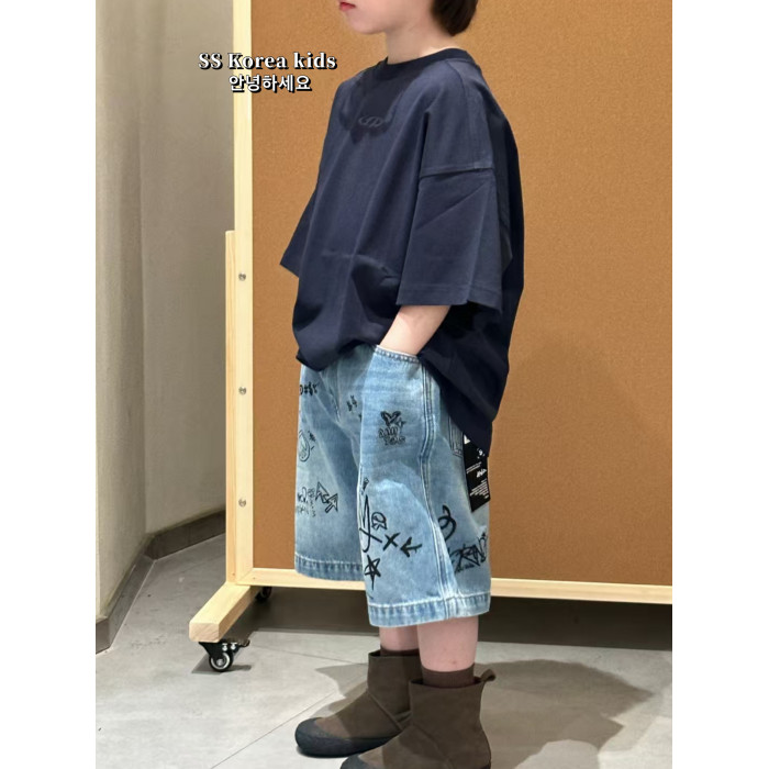 SS品牌童裝帥氣塗鴉牛仔褲五分褲2025新款兒童褲子女童短褲時髦