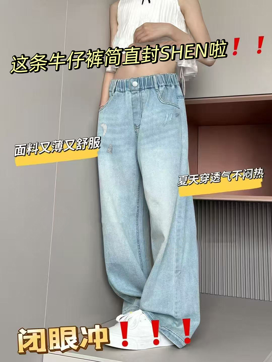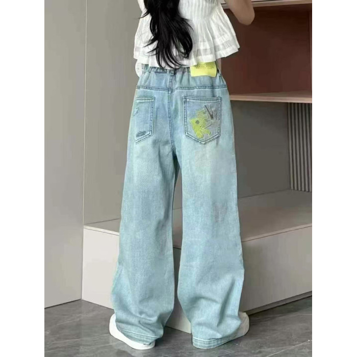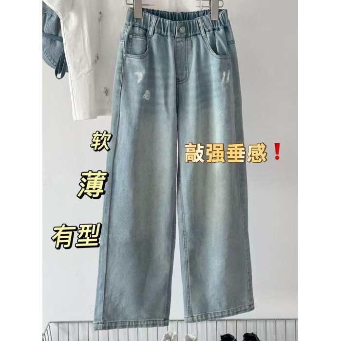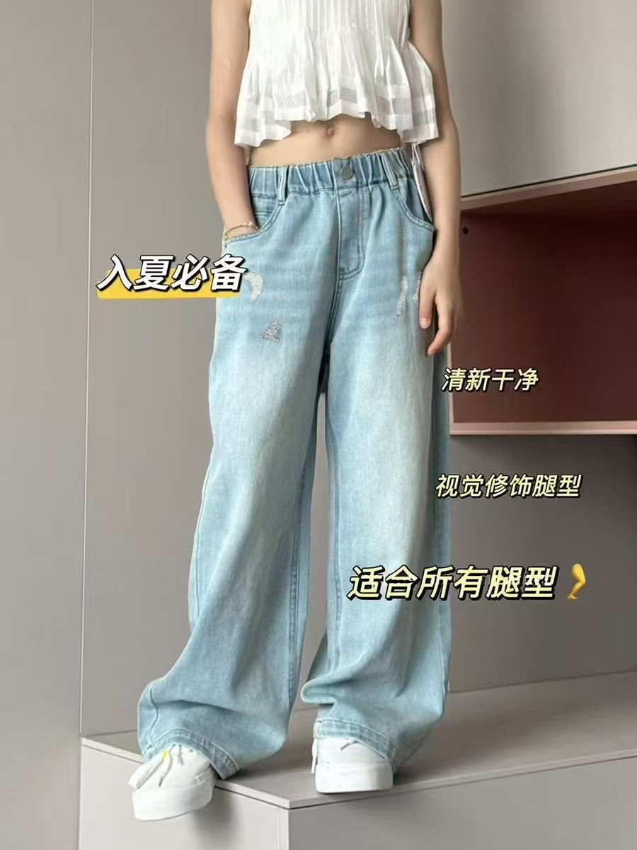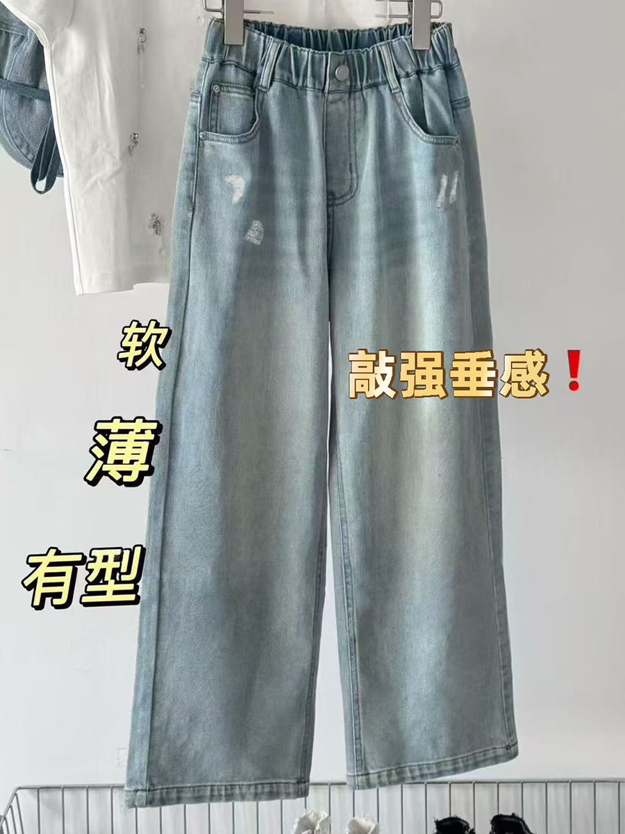 波拉韓女童褲子夏季兒童薄款牛仔褲2025中大童直筒褲柔軟休閒長褲
