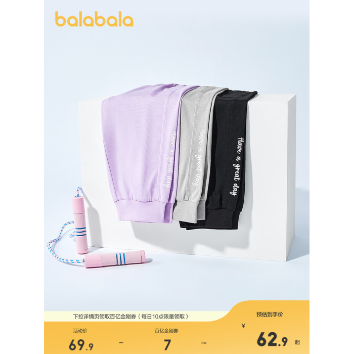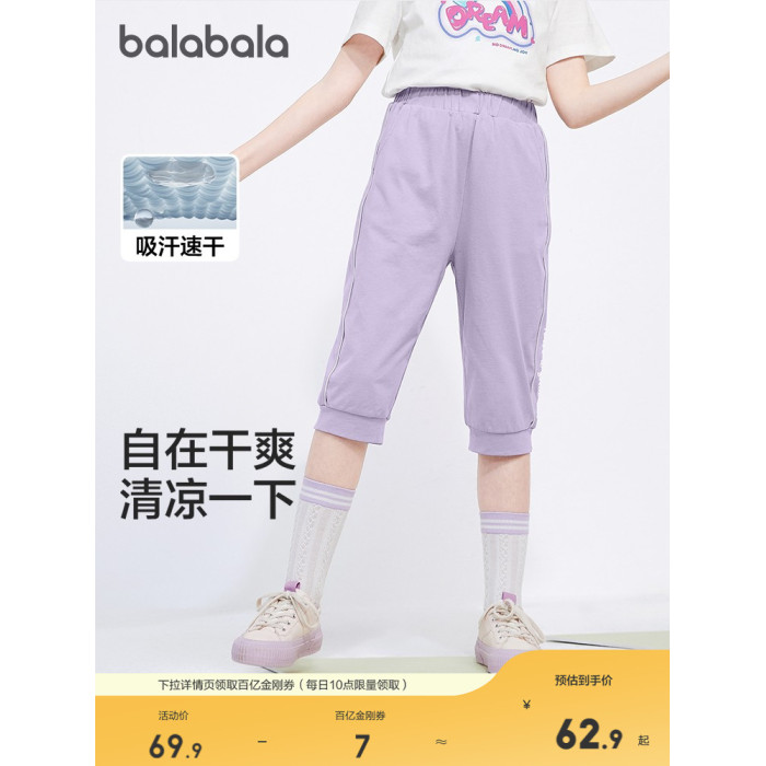 巴拉巴拉童裝兒童七分褲女童2025夏季薄款中大童速乾褲子運動褲潮