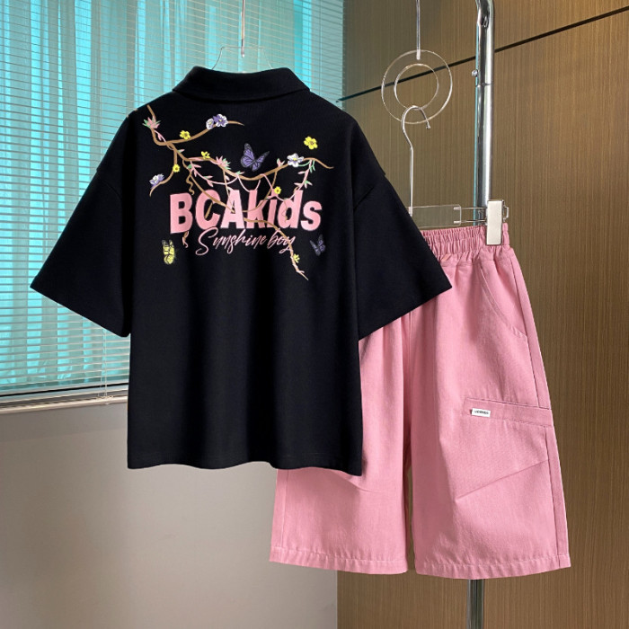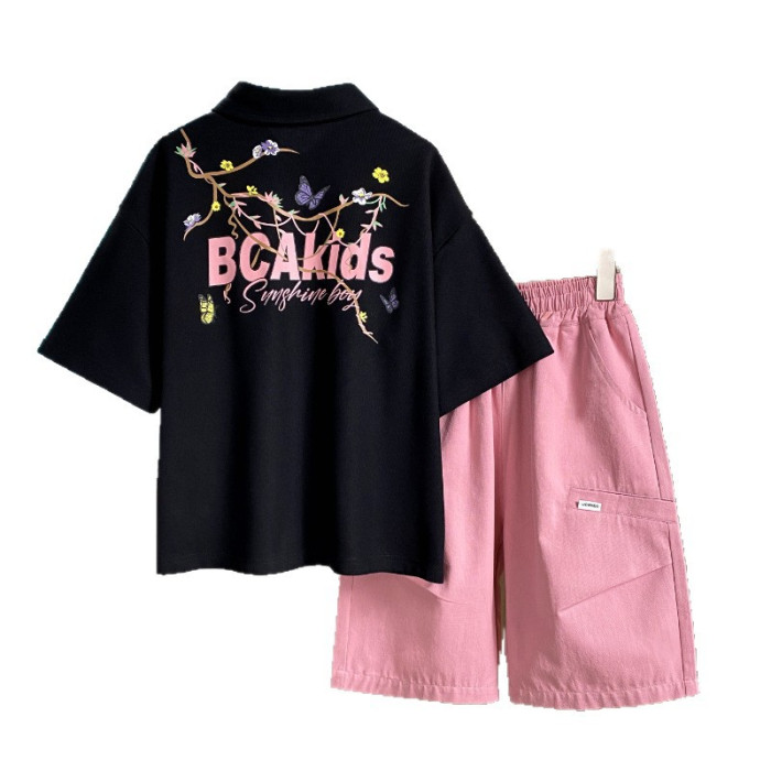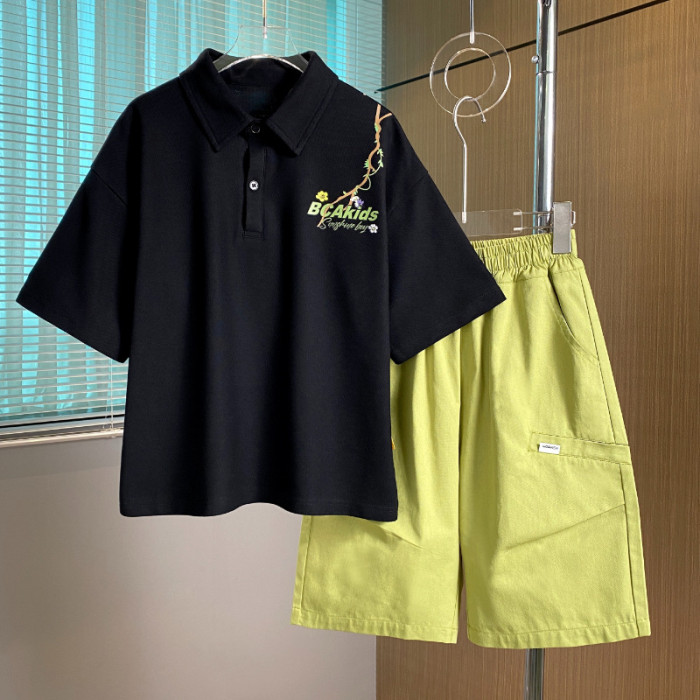 復古刺綉短袖T恤男夏季新款POLO衫上衣顯瘦寬松簡約時尚褲套裝潮