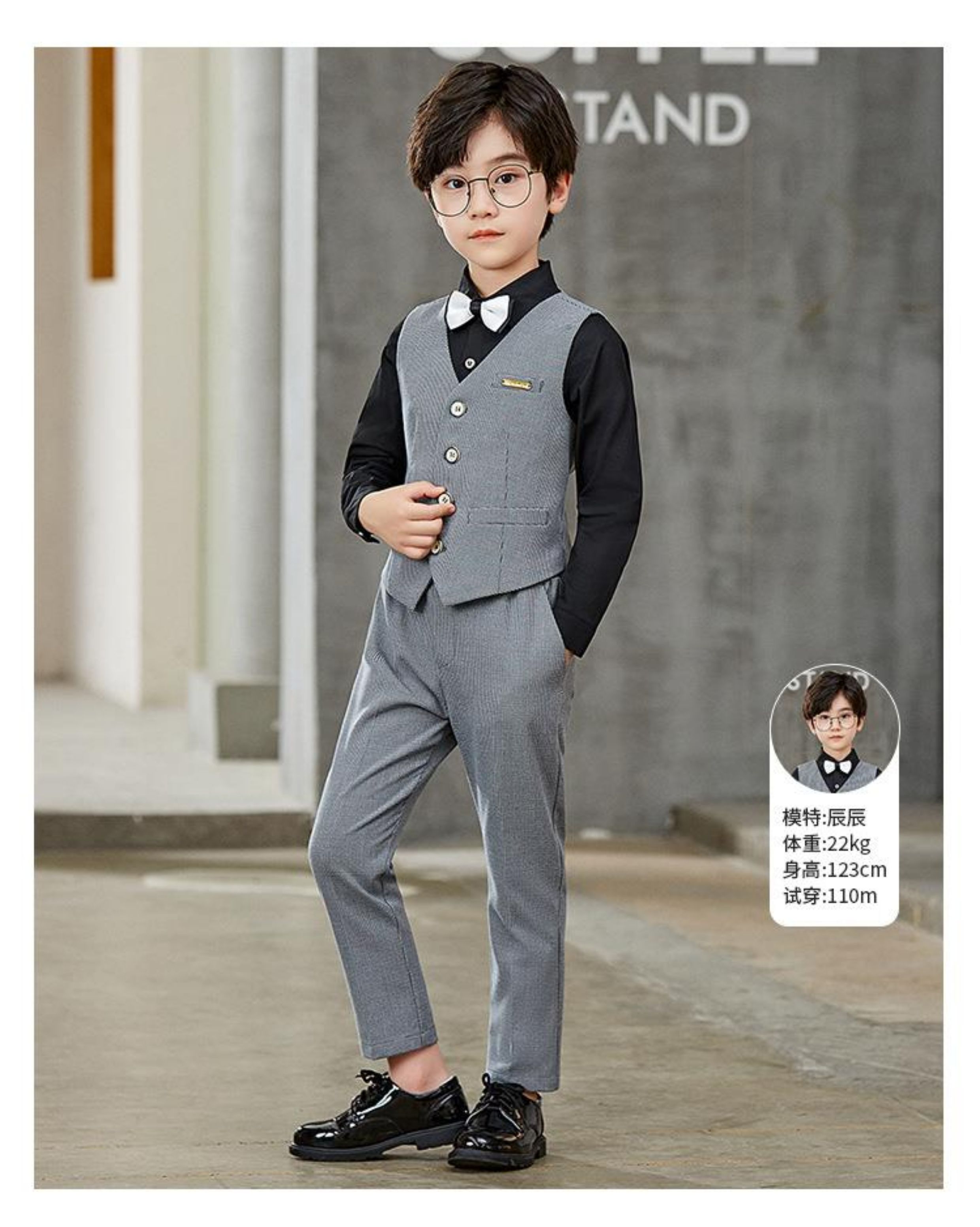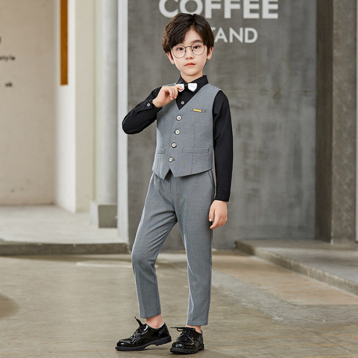 灰色3件套(馬甲+長褲+領結)