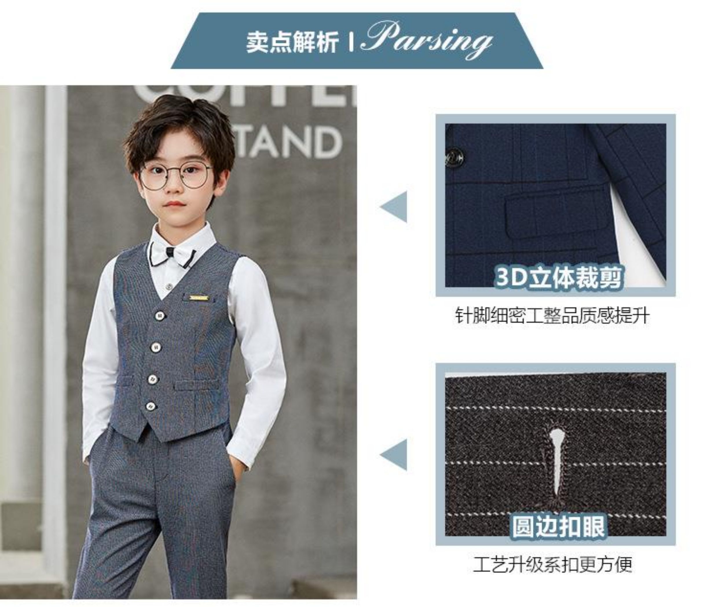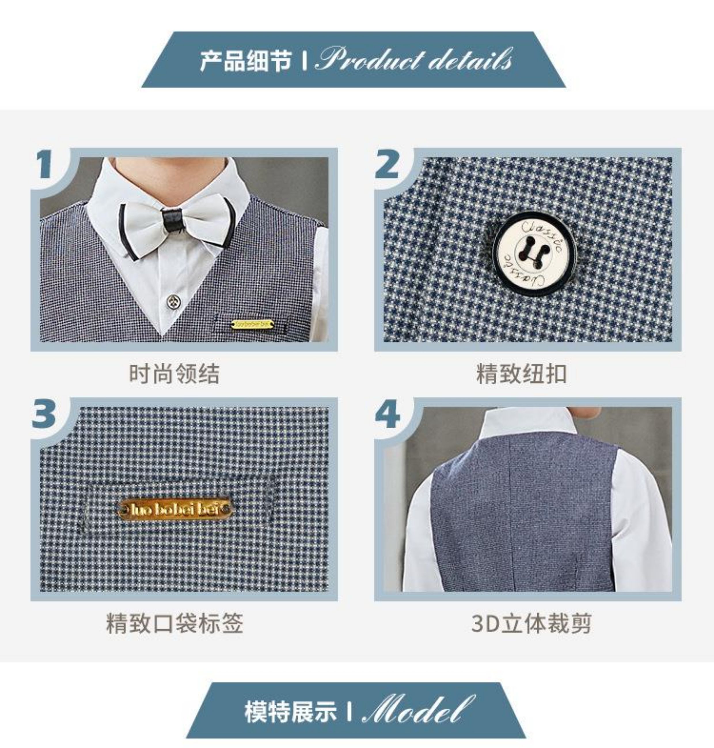 藍色3件套(馬甲+長褲+領結)
