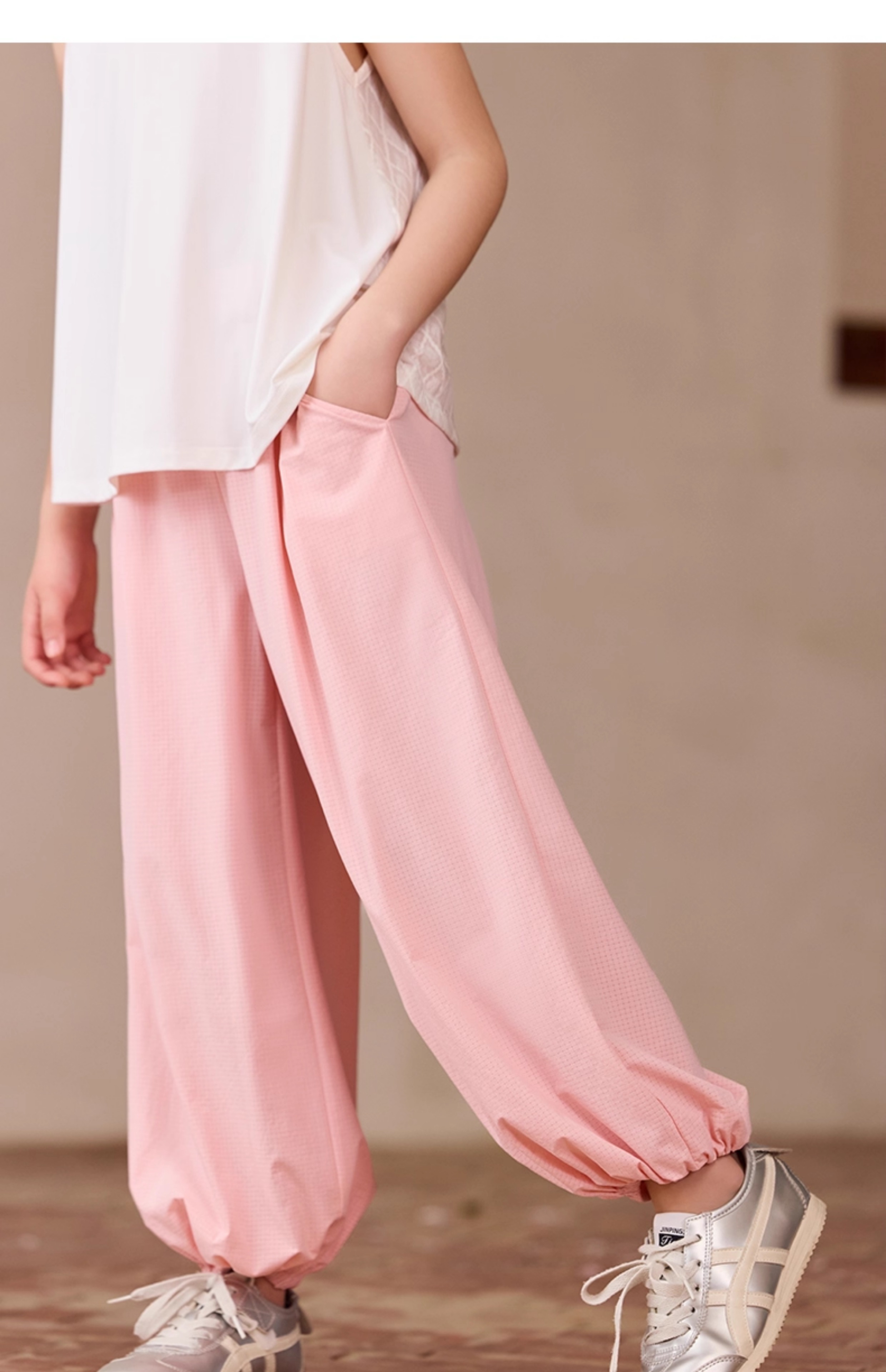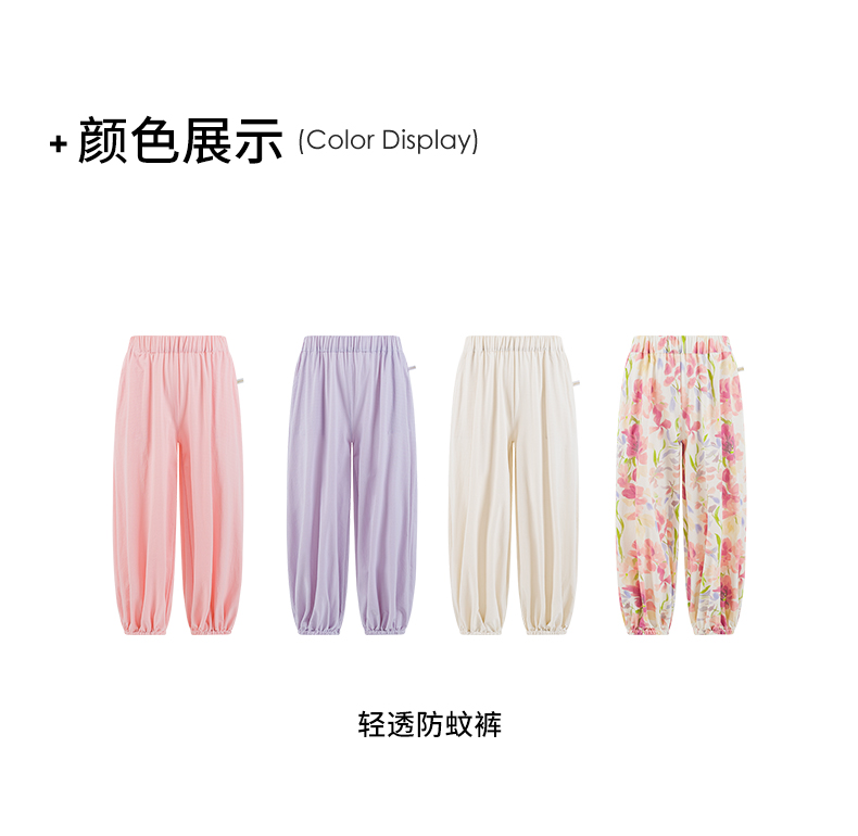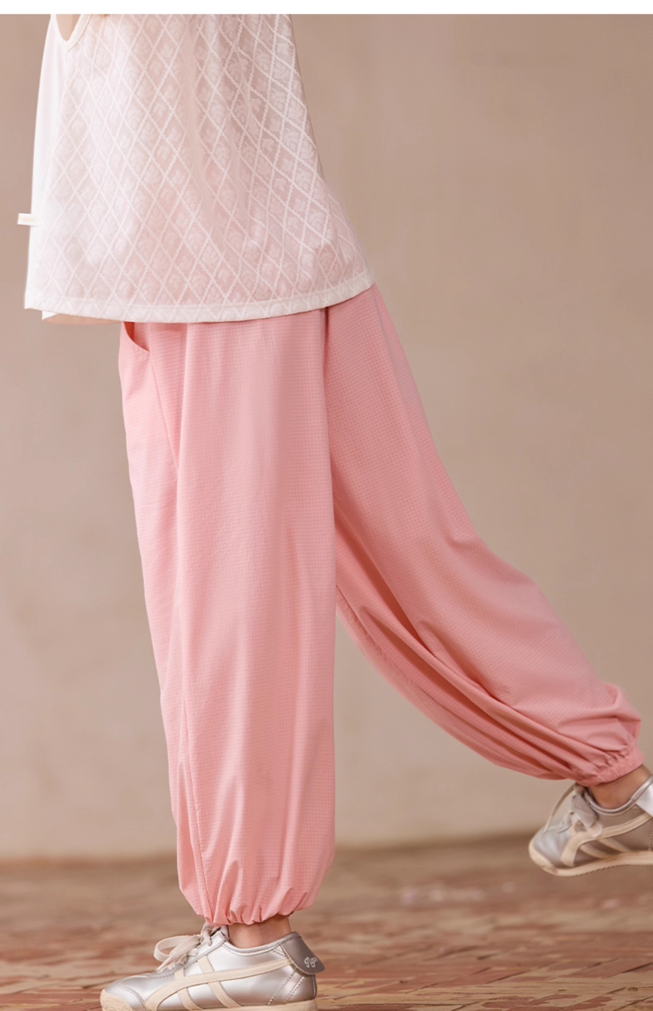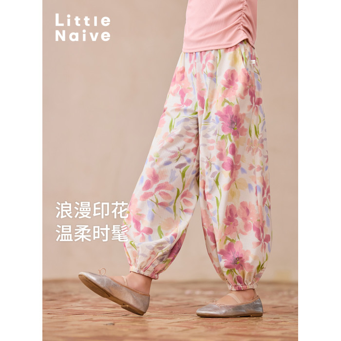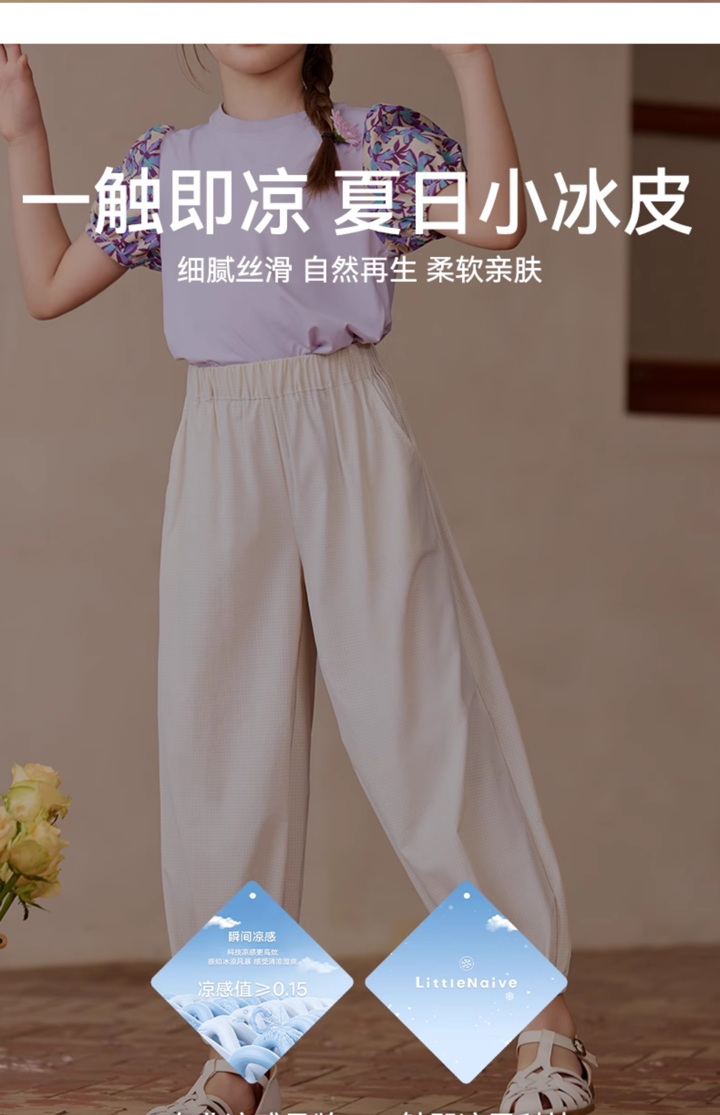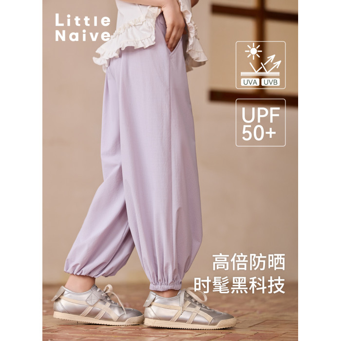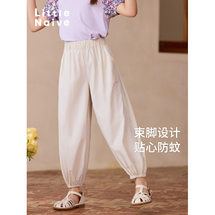 Little Naive女童涼感休閒褲夏季新款透氣防蚊褲兒童彈力束腳褲
