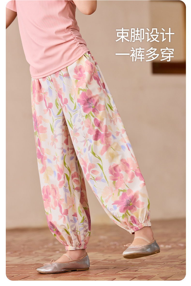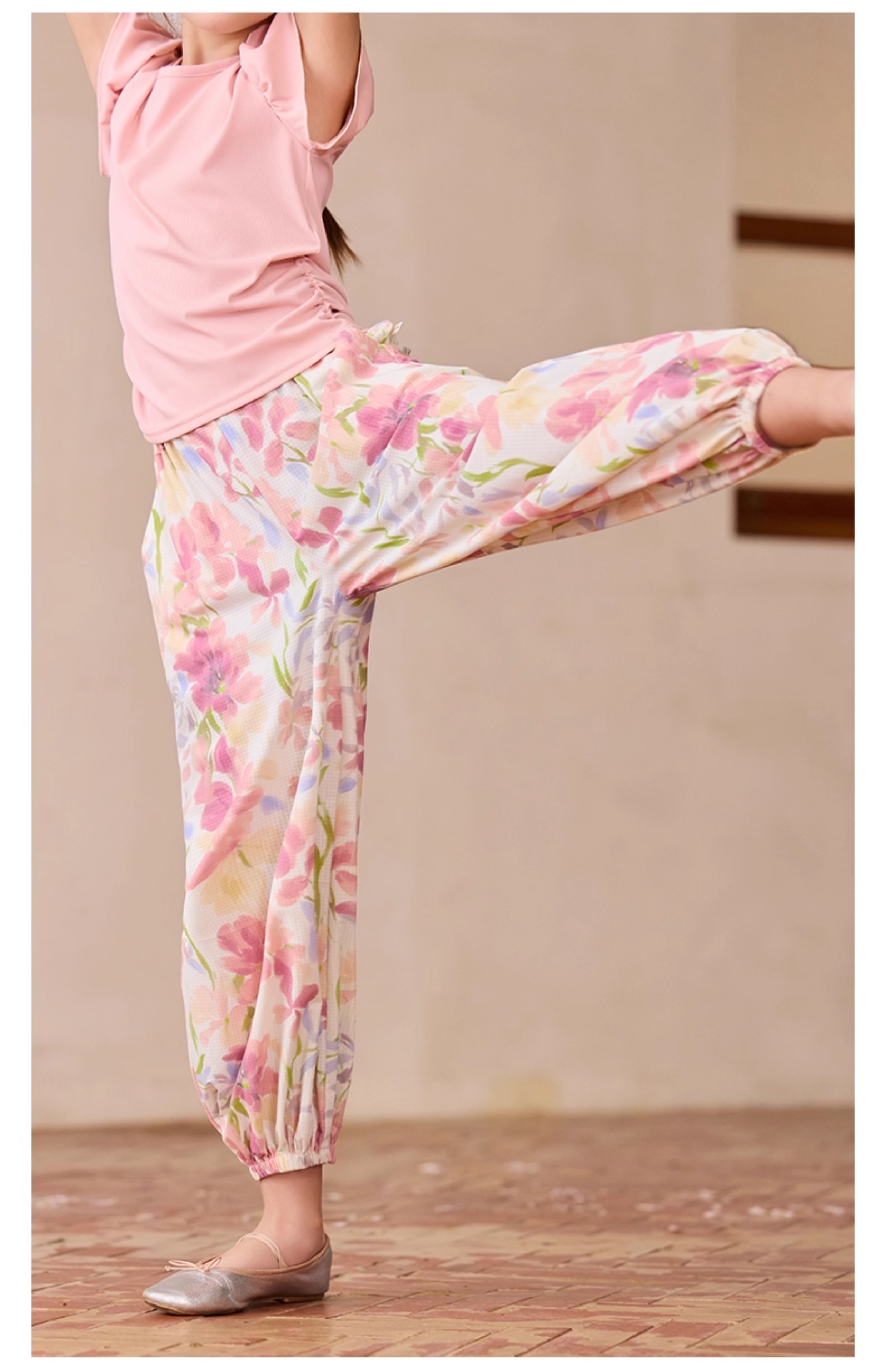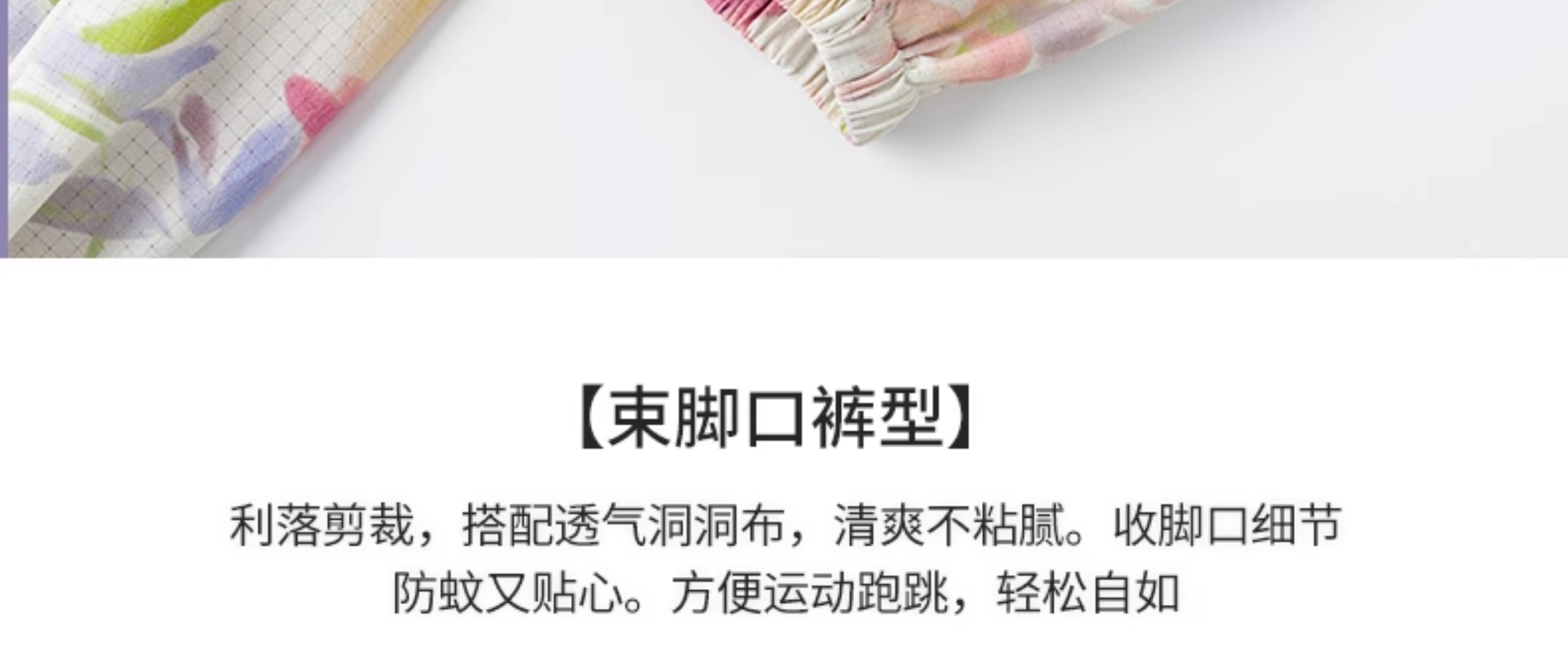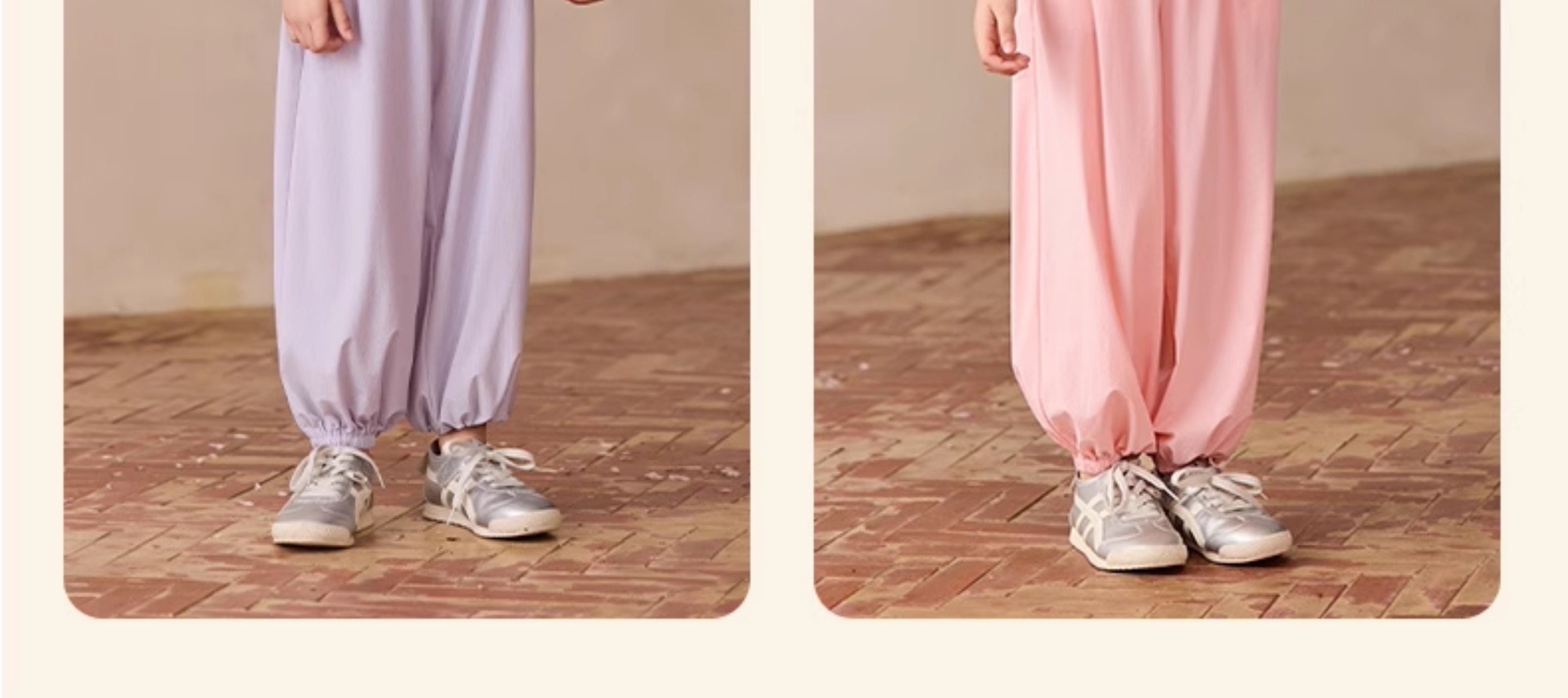 Little Naive女童涼感休閒褲夏季新款透氣防蚊褲兒童彈力束腳褲