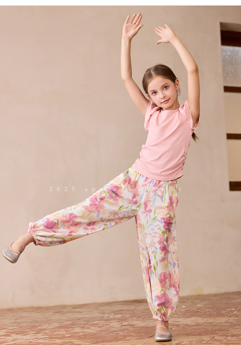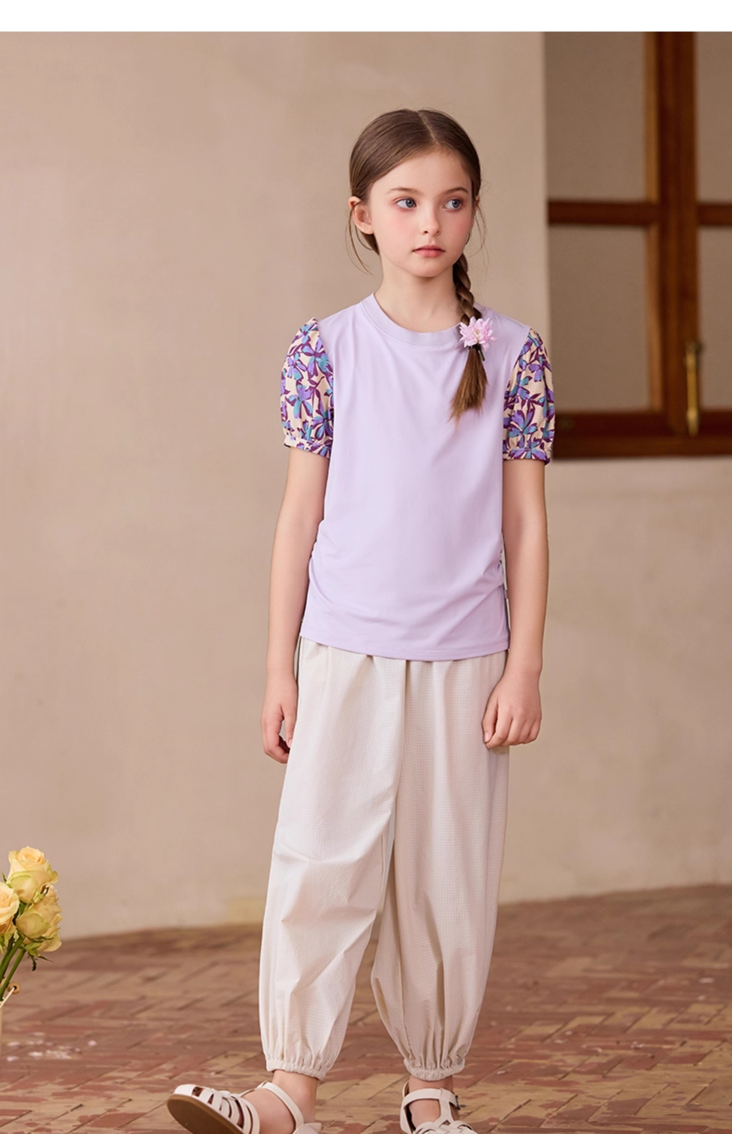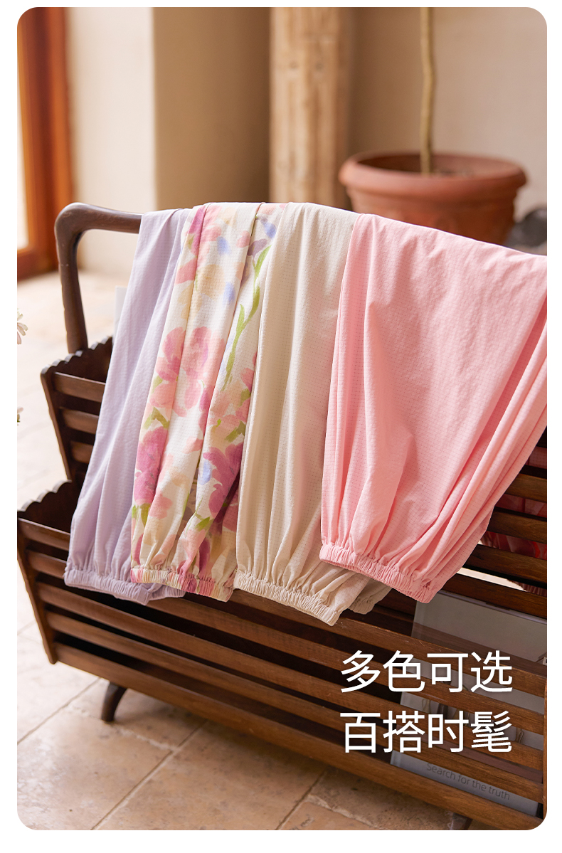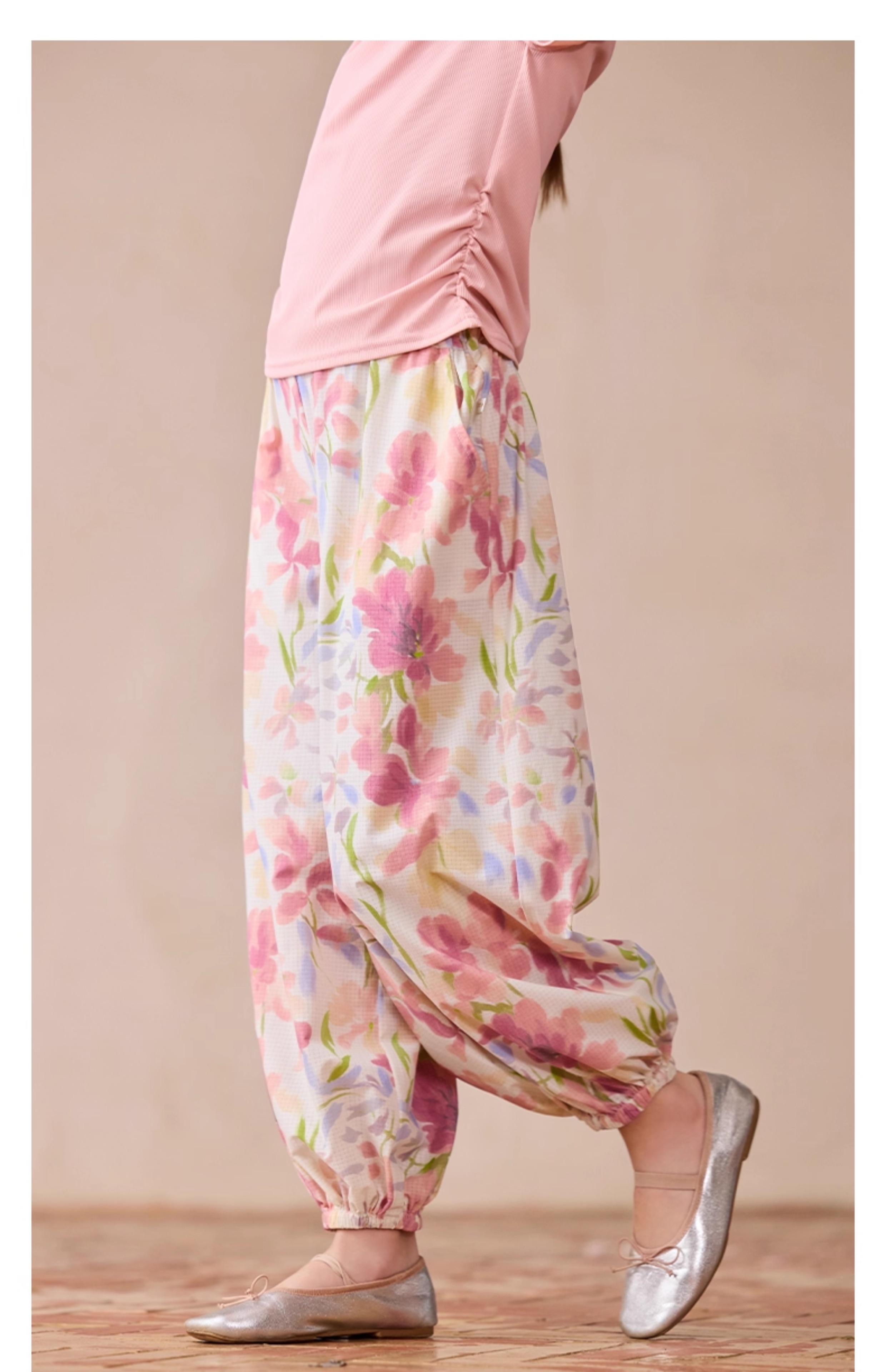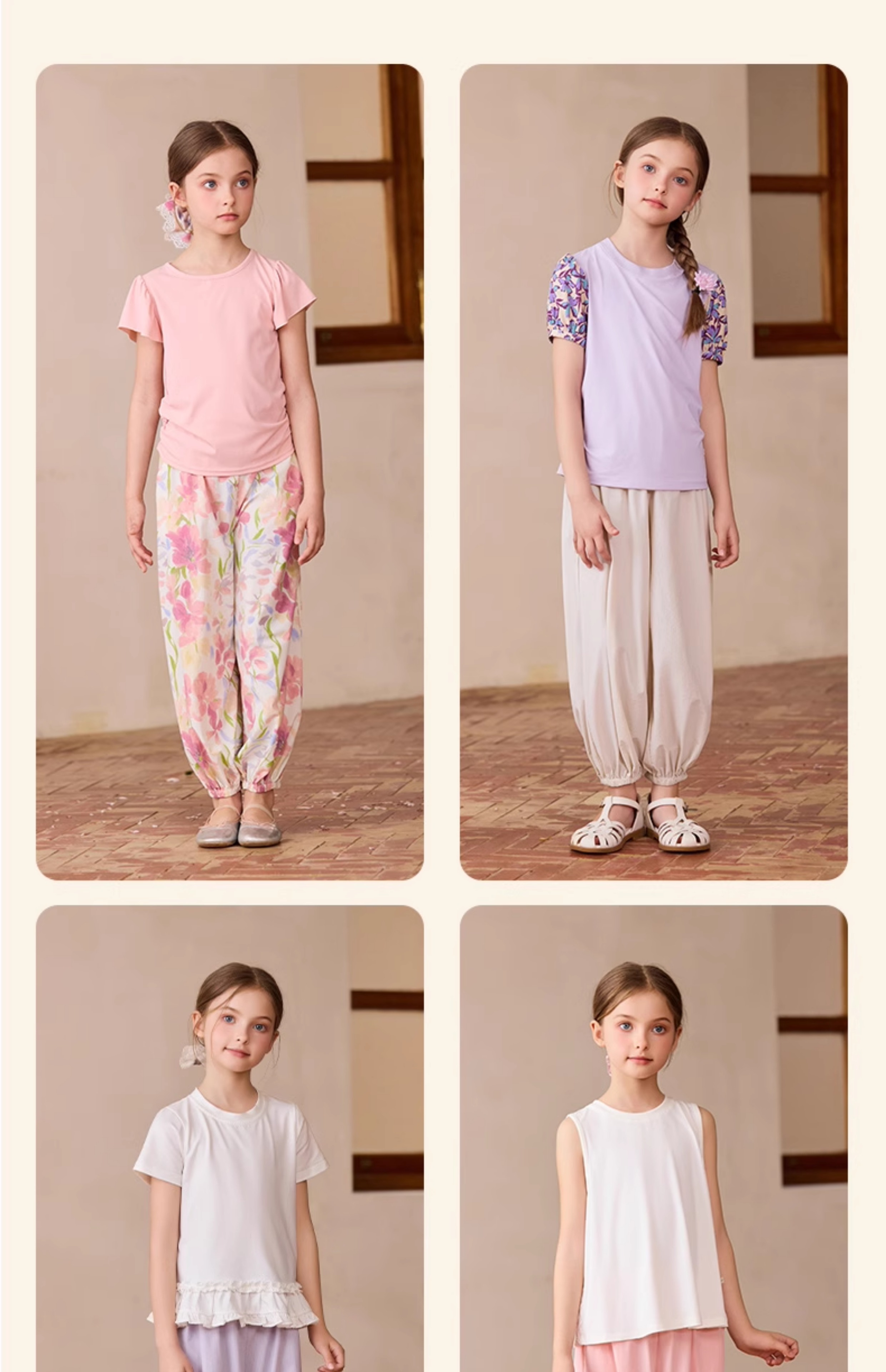 Little Naive女童涼感休閒褲夏季新款透氣防蚊褲兒童彈力束腳褲