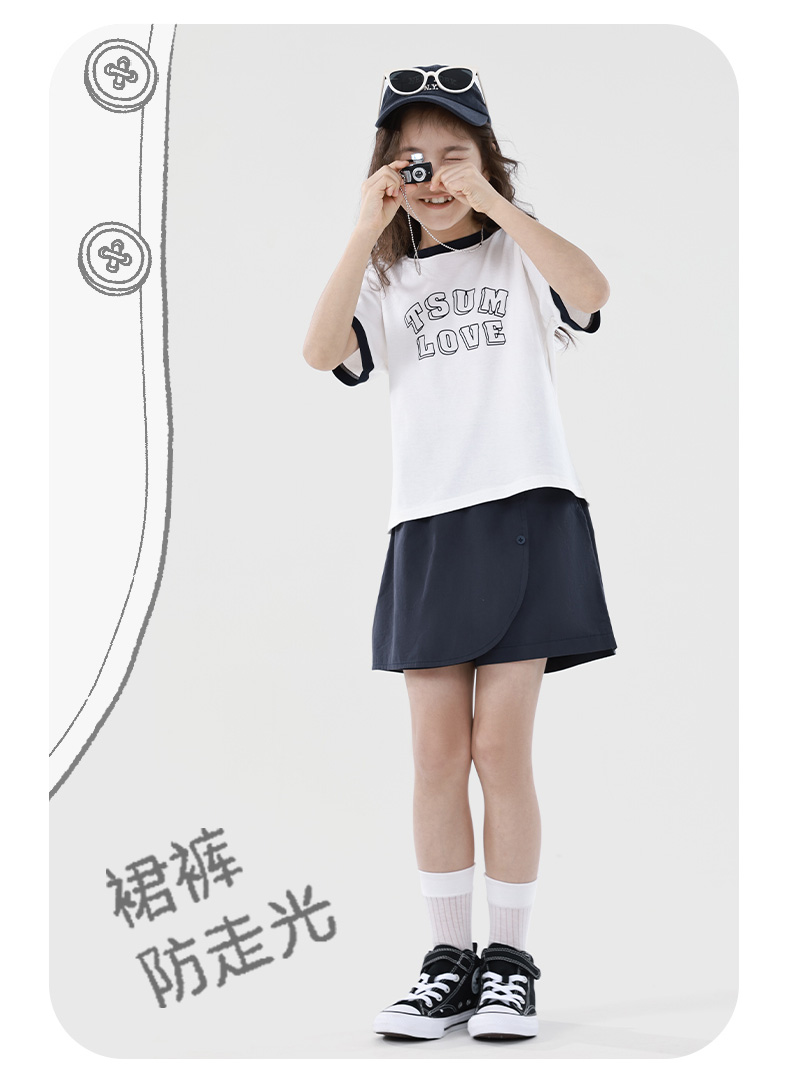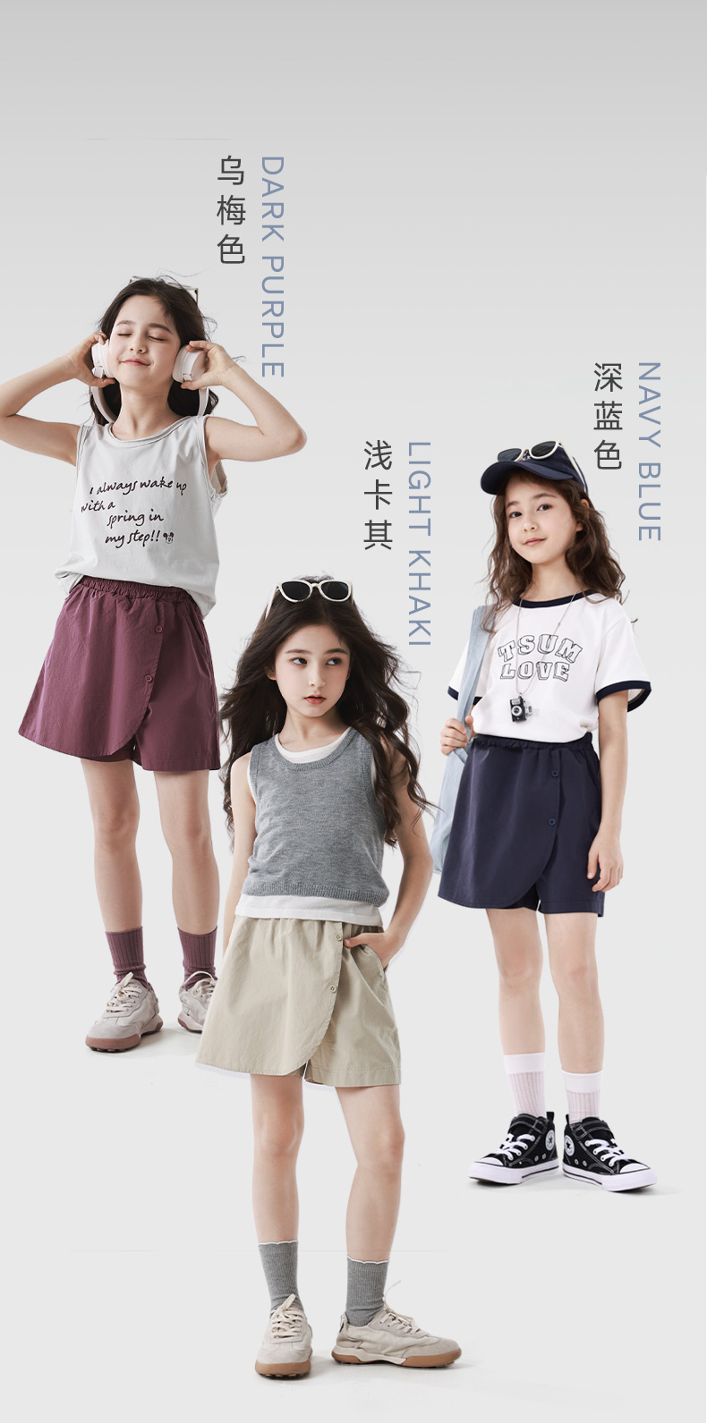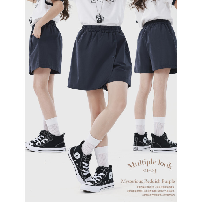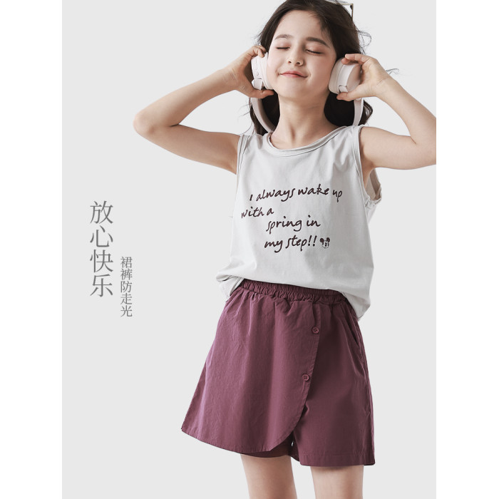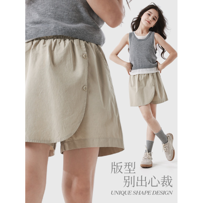 DOMIO女童短褲子2025夏季新款兒童半包裙褲假兩件休閒親子裙褲潮