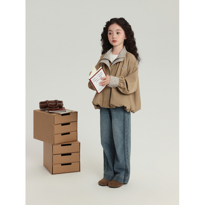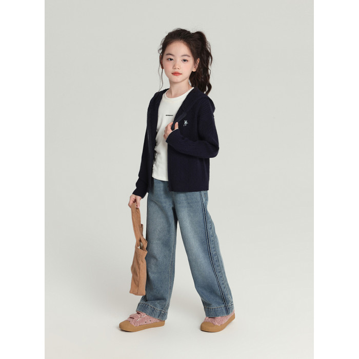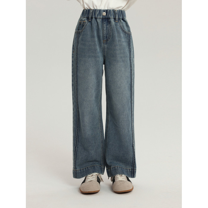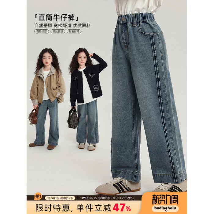 布丁哈魯童裝秋裝女童百搭褲子2025春秋新款兒童簡約直筒牛仔褲