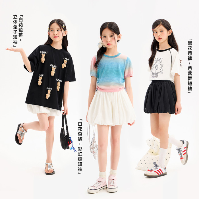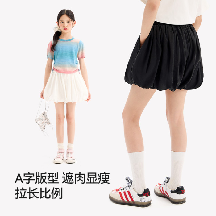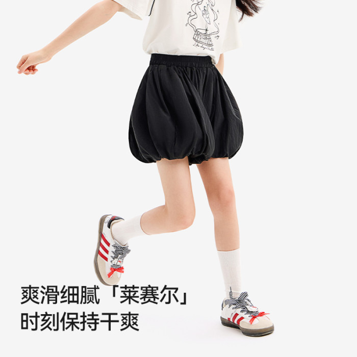 女童花苞短褲2025新款夏季涼感天絲輕盈百搭女孩夏天可愛休閒褲子