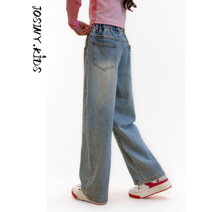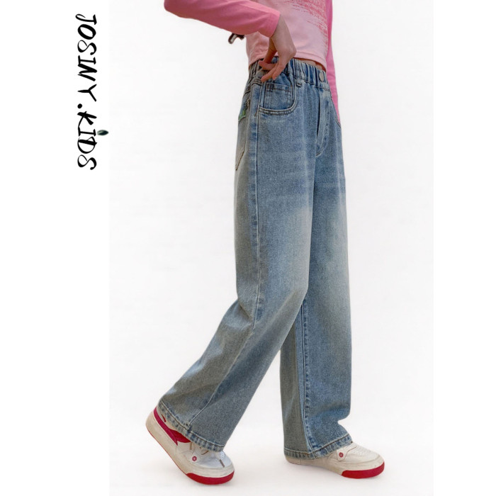卓詩尼夏季薄款女童軟牛仔褲2025新款洋氣時髦寬松濶腿直筒秋褲子