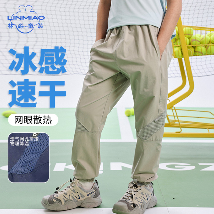 林淼童裝兒童四面彈長褲男童夏季透氣網眼訓練打球運動褲中童褲子