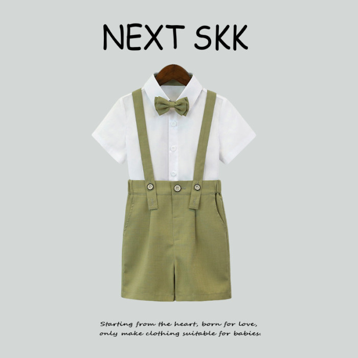 草綠4件套(短袖+短褲+背帶+領結)