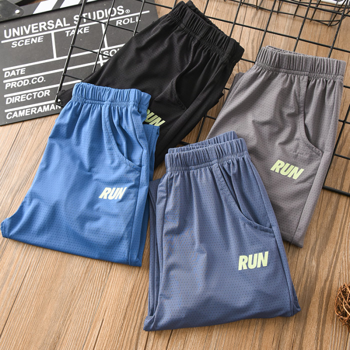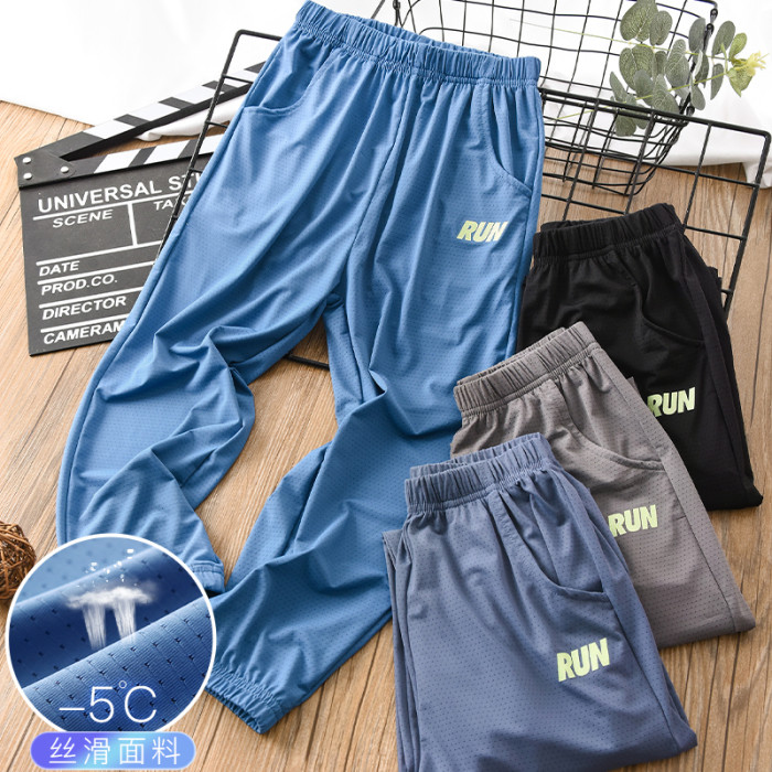 男童褲子兒童防蚊褲中大童2025夏季薄款冰絲速乾運動網眼透氣長褲