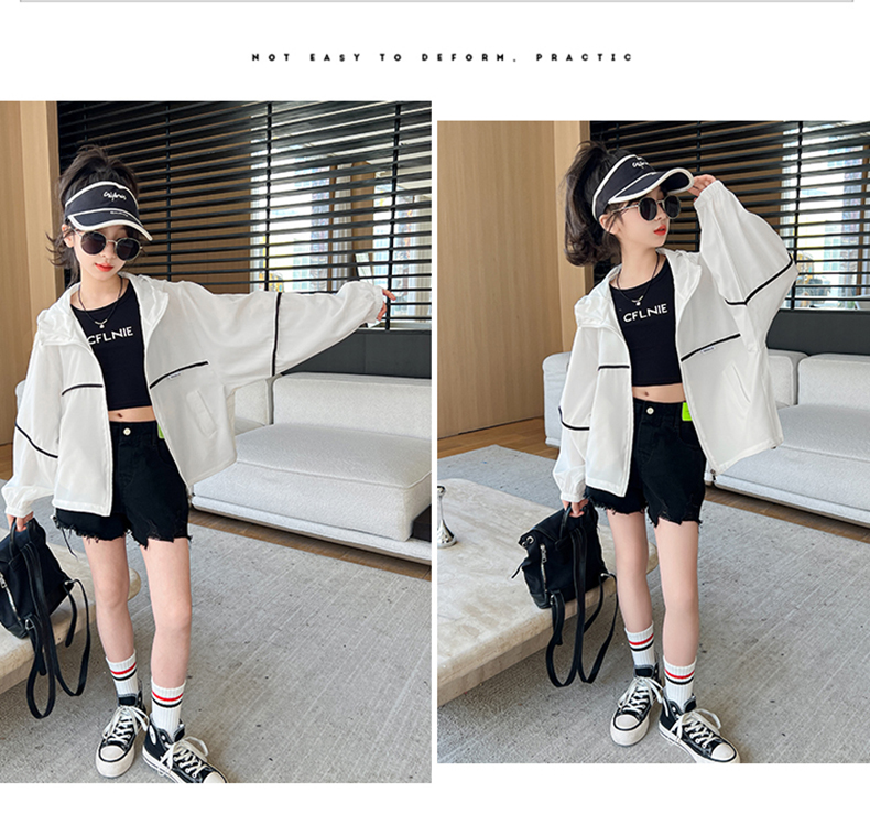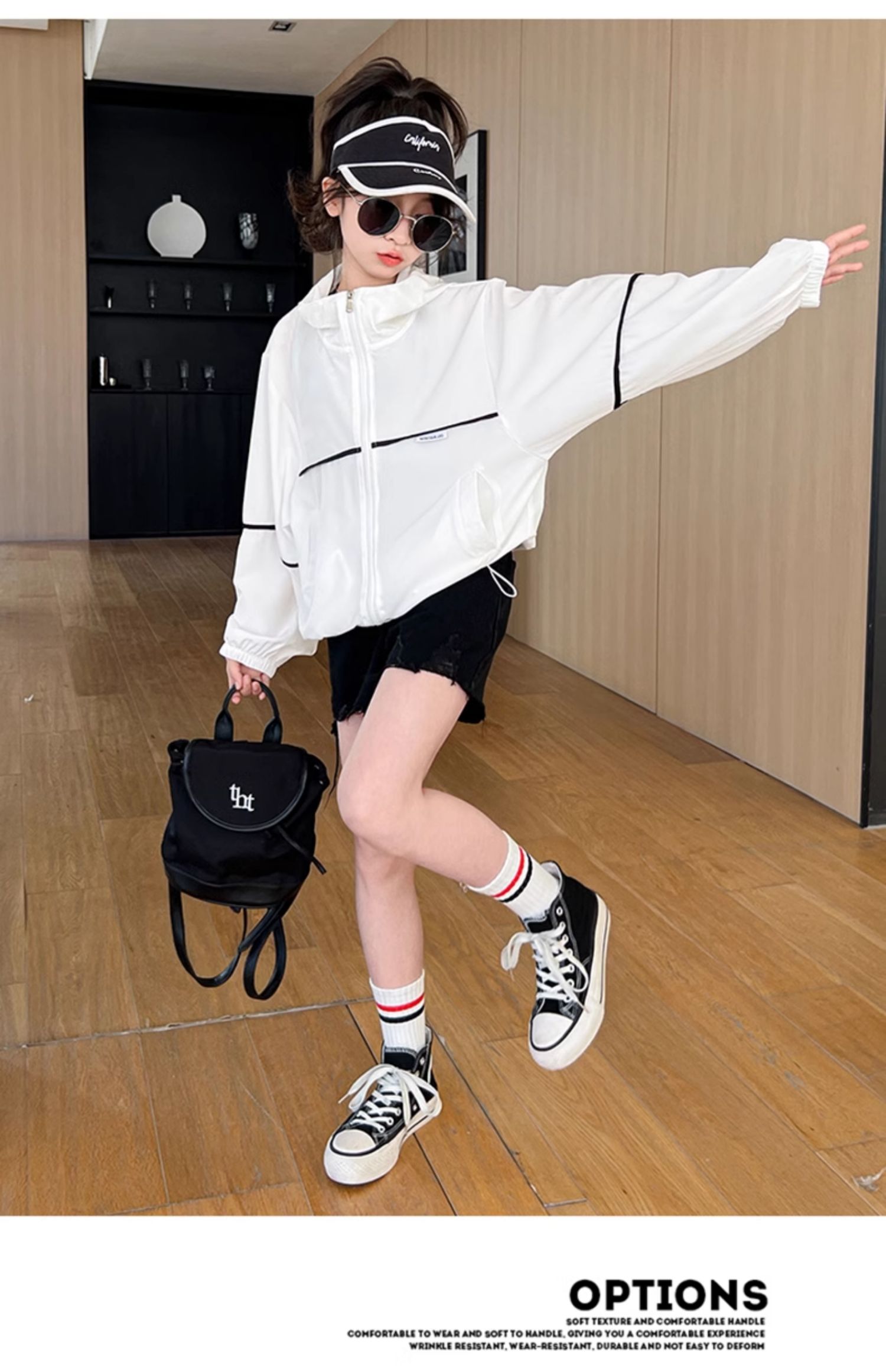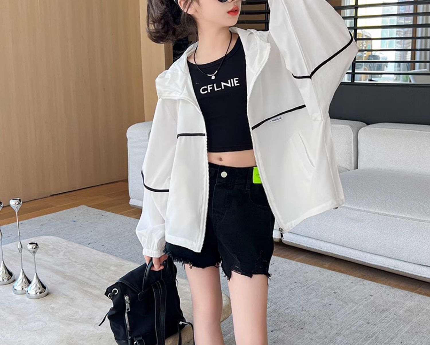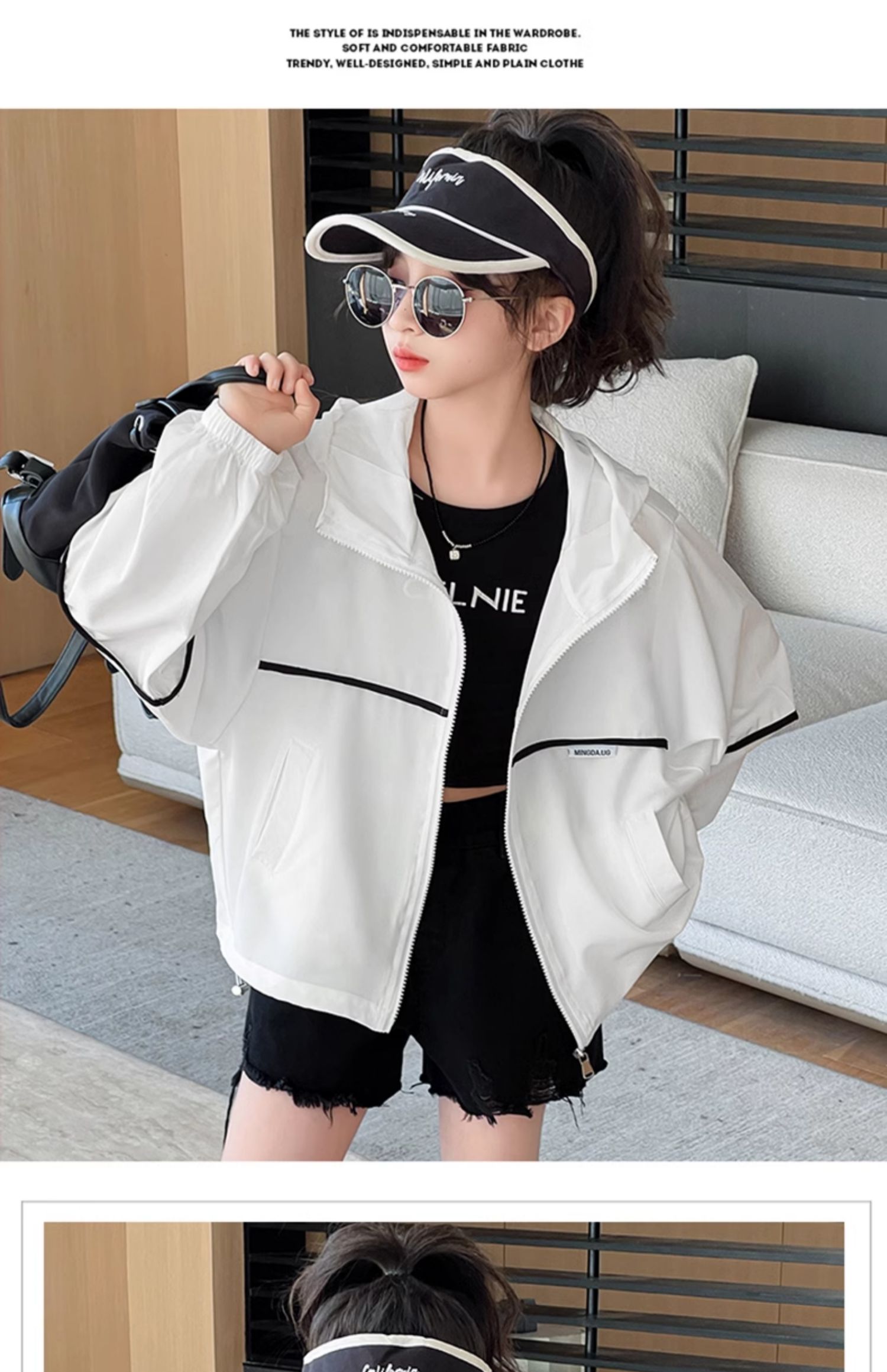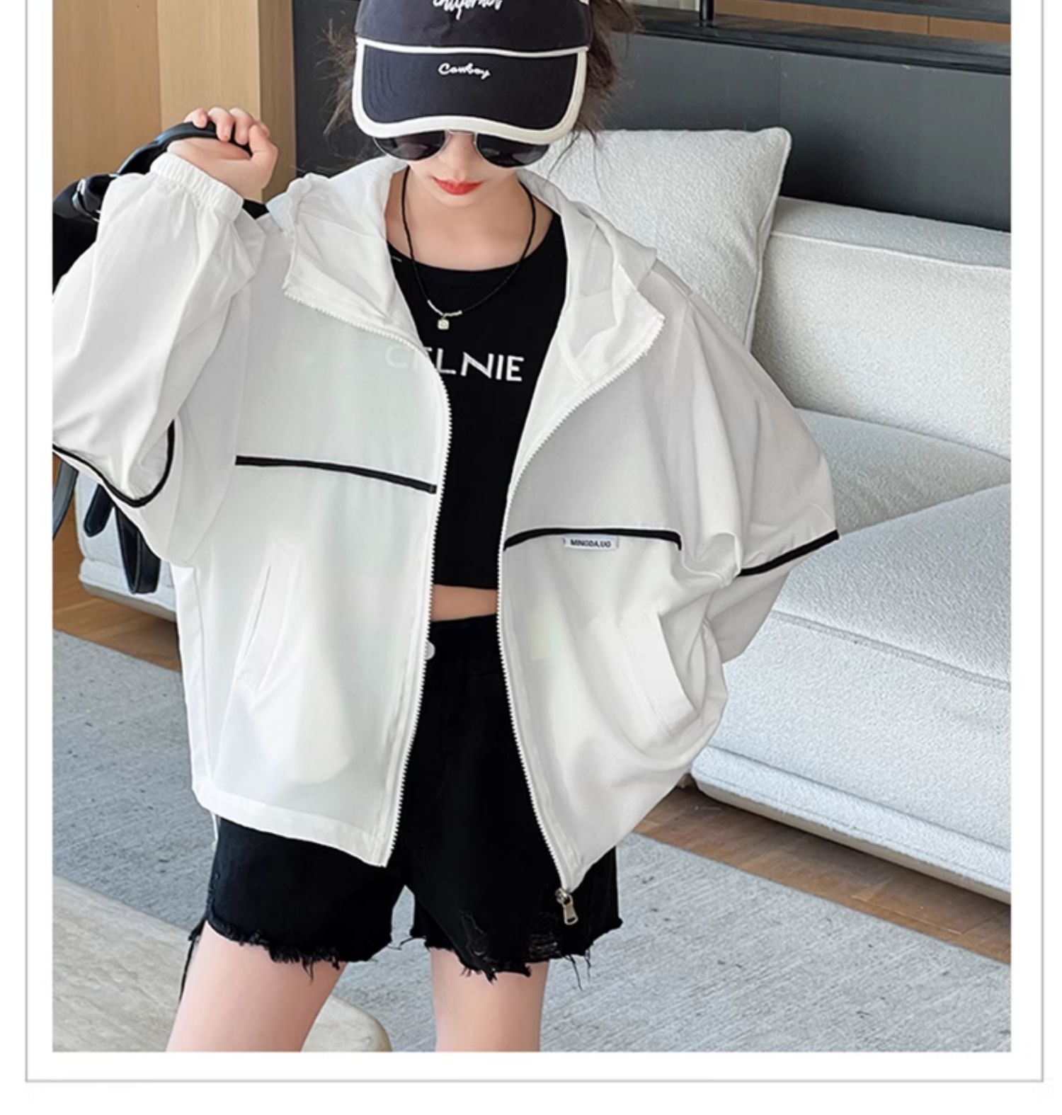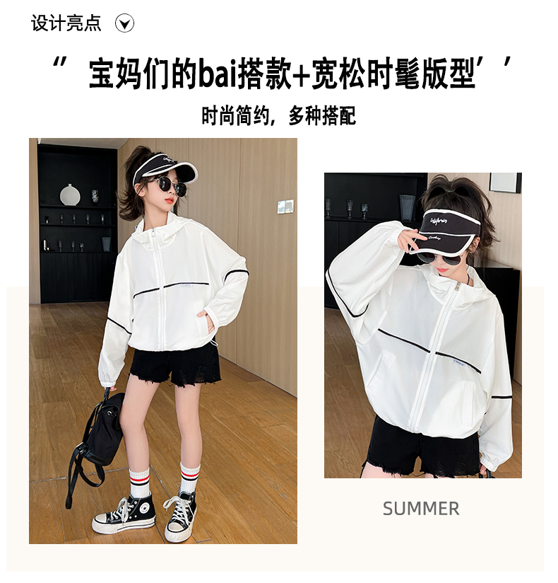 女童防曬衣夏季2025新款兒童防紫外線薄款外套大童夏裝連帽防曬服
