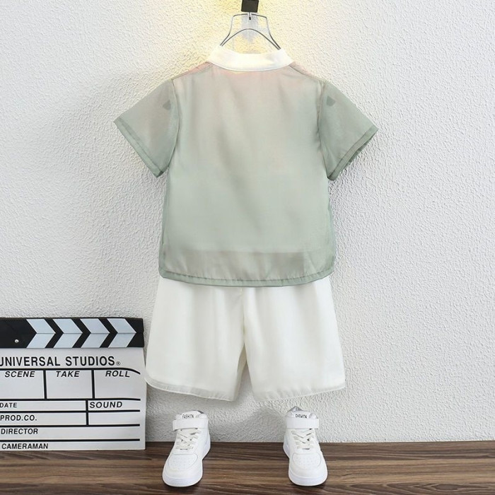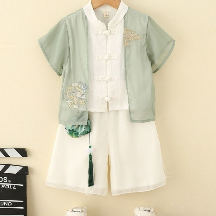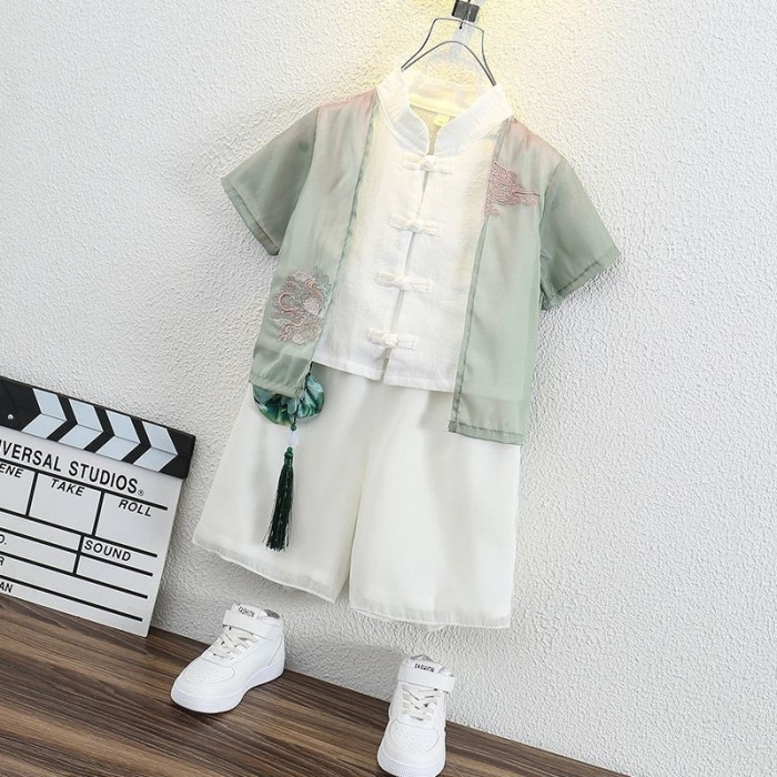 漢服兒童男短袖套裝幼兒園寶寶夏季風古裝秋唐裝國學服演出服