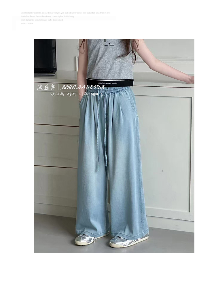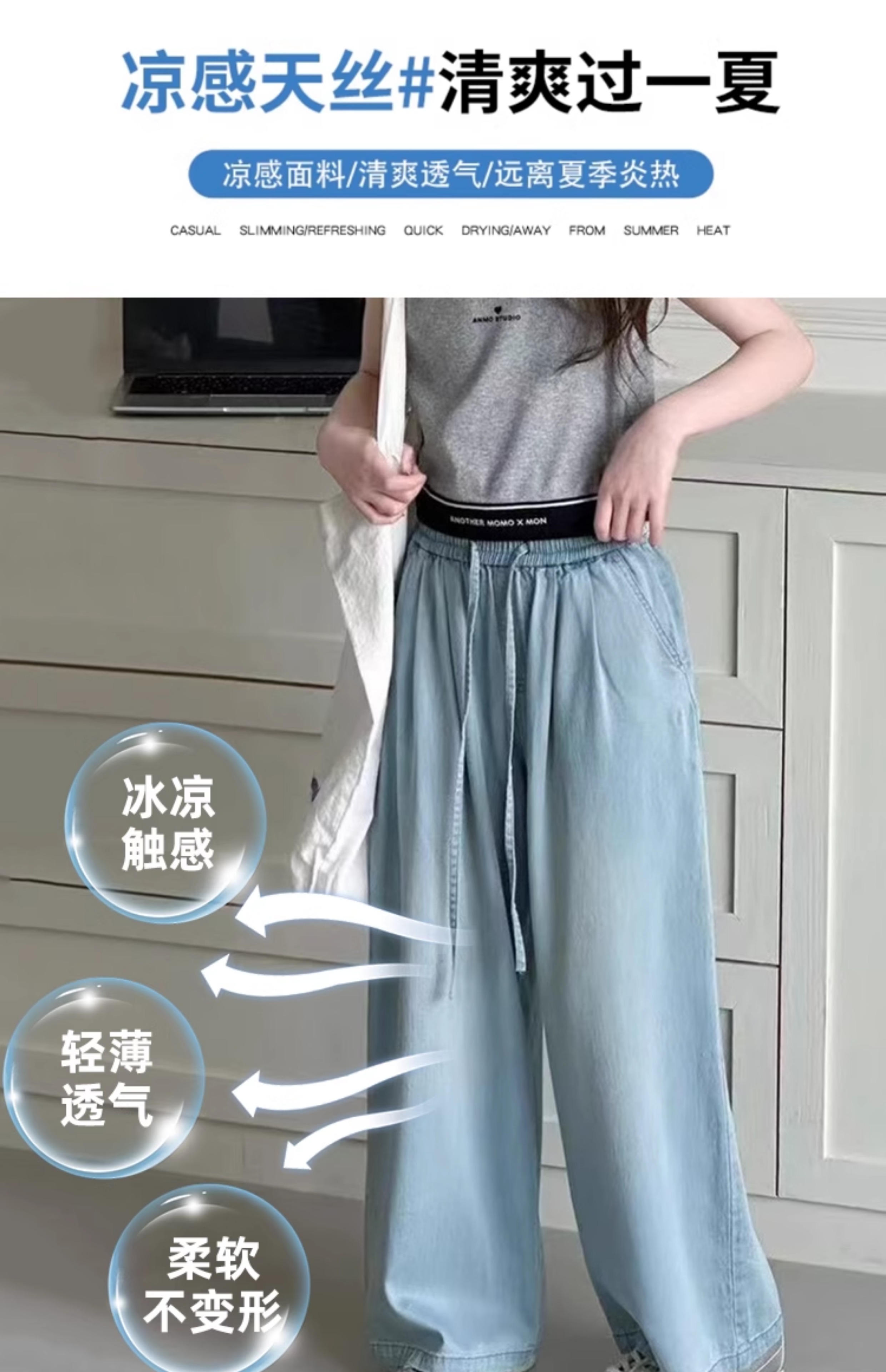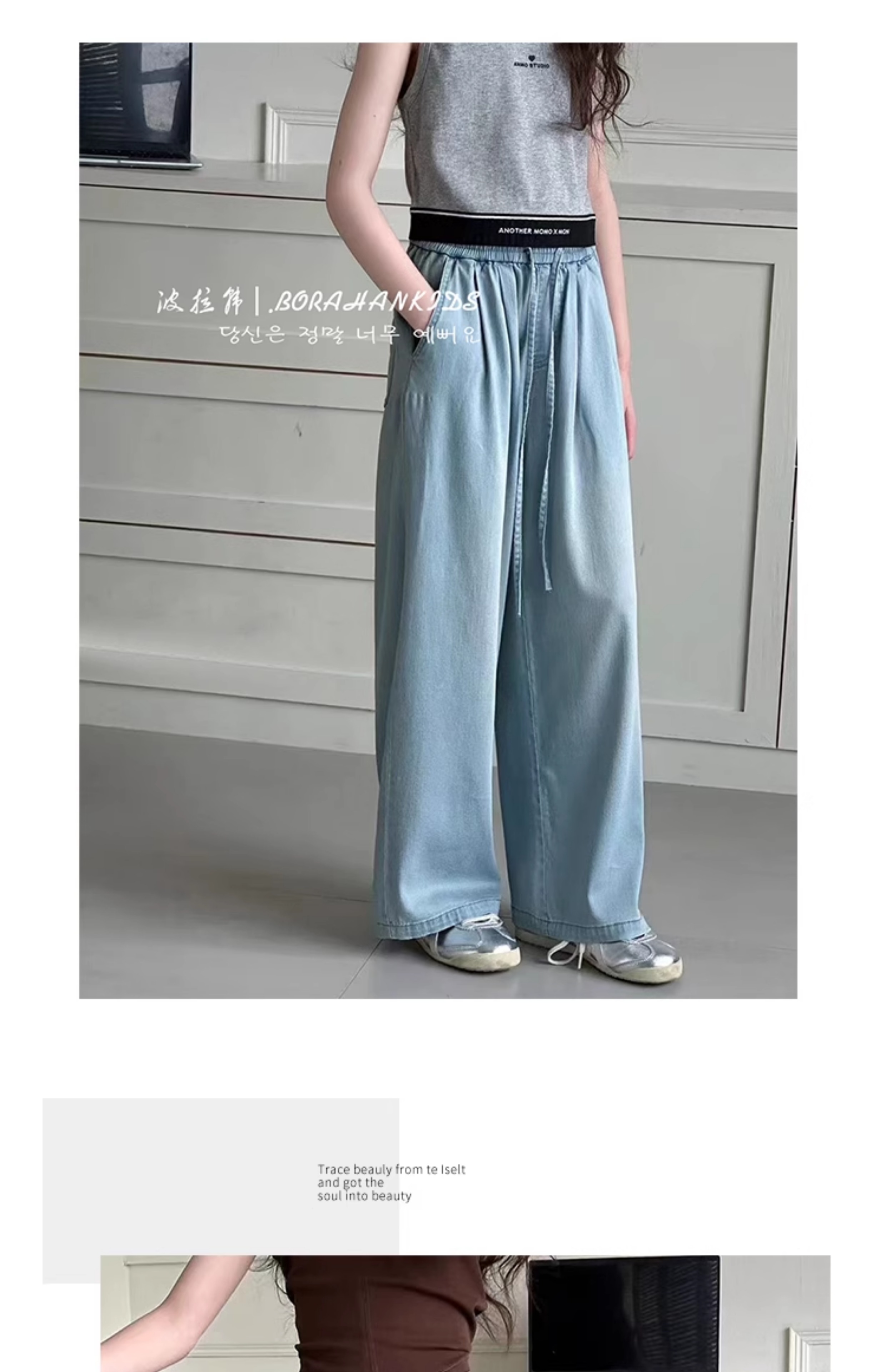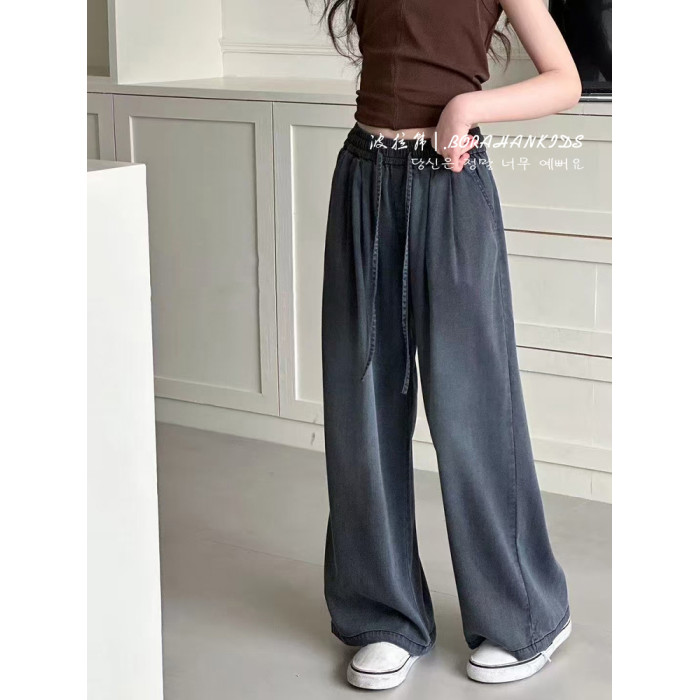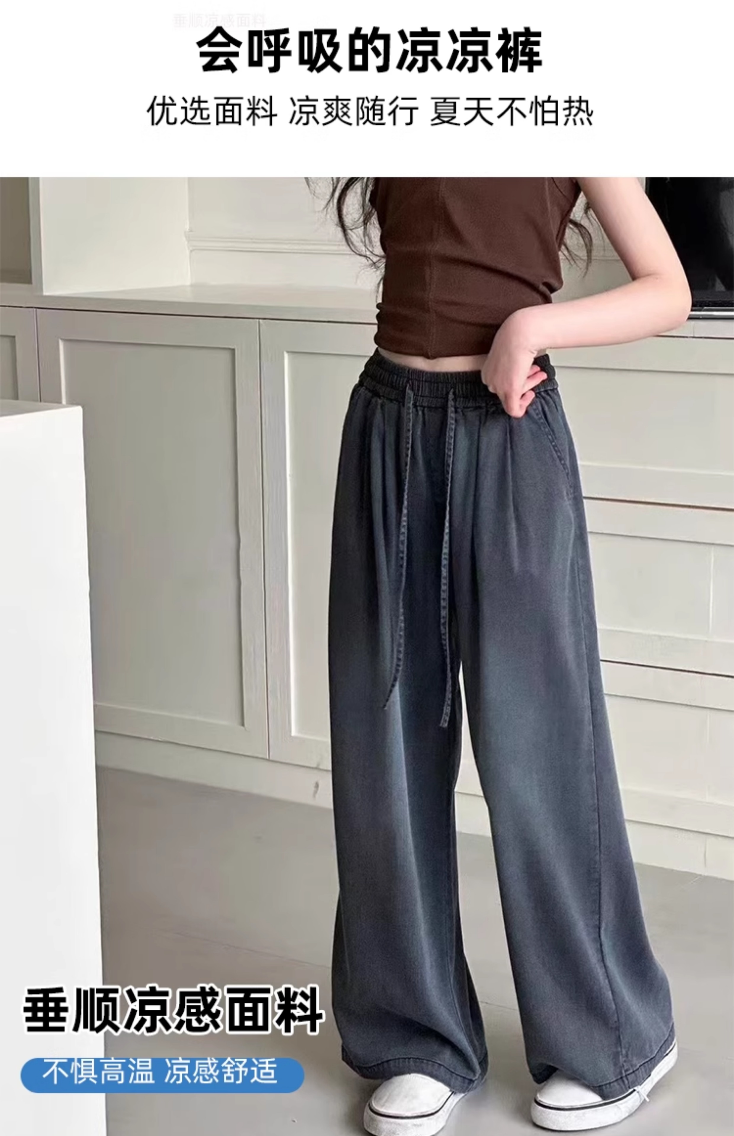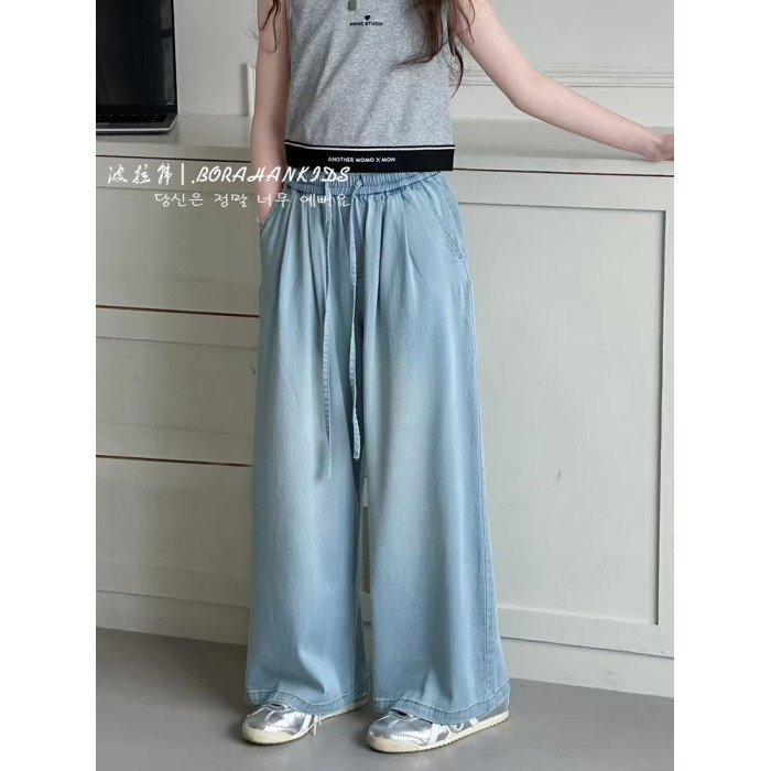 波拉韓女童牛仔褲夏季2025新款兒童天絲棉直筒褲中大童濶腿褲長褲