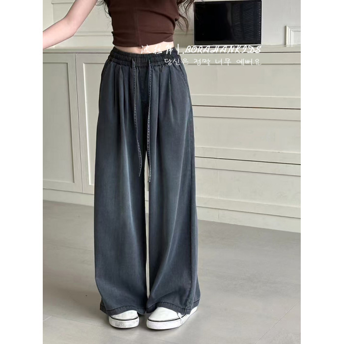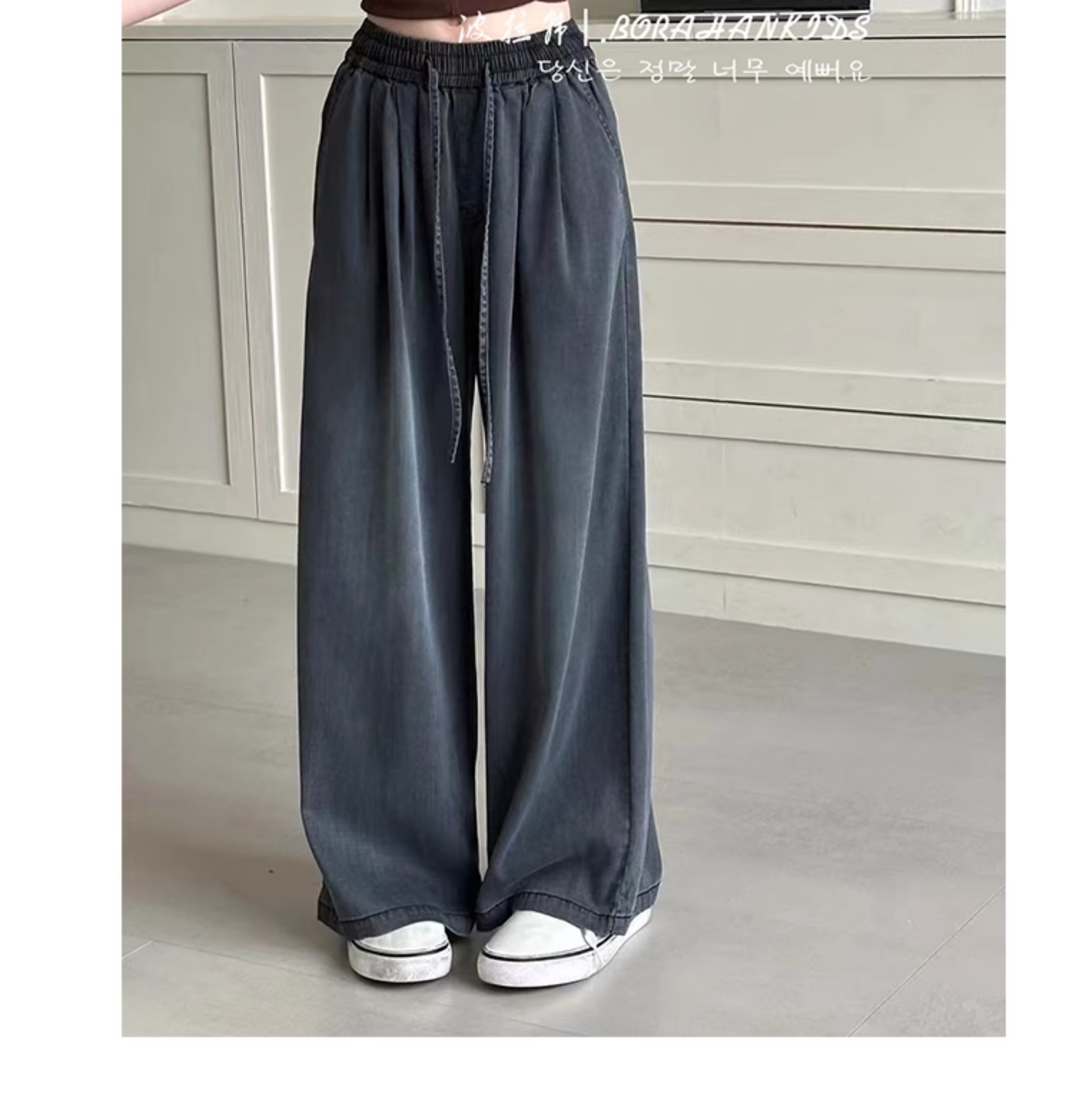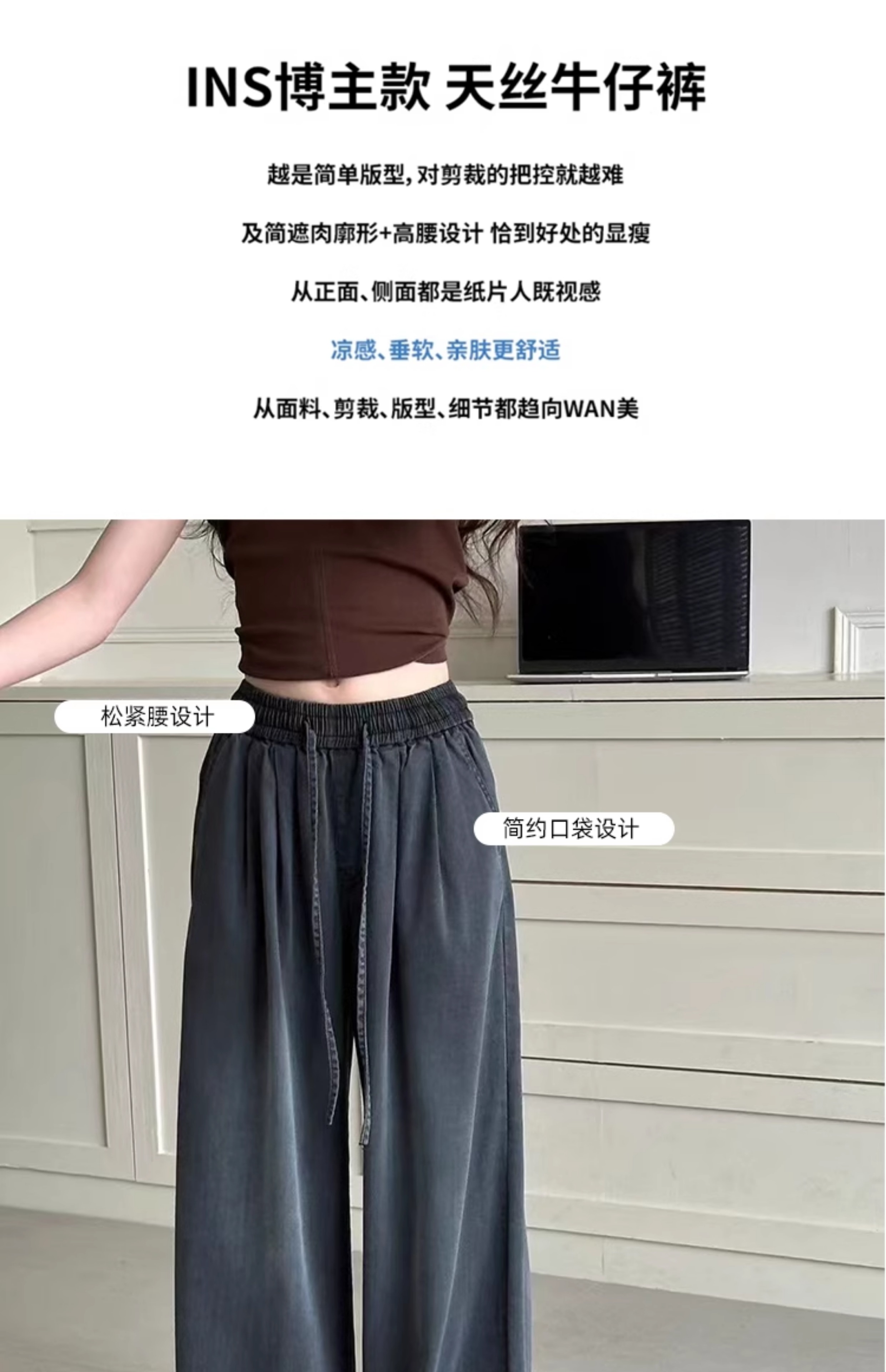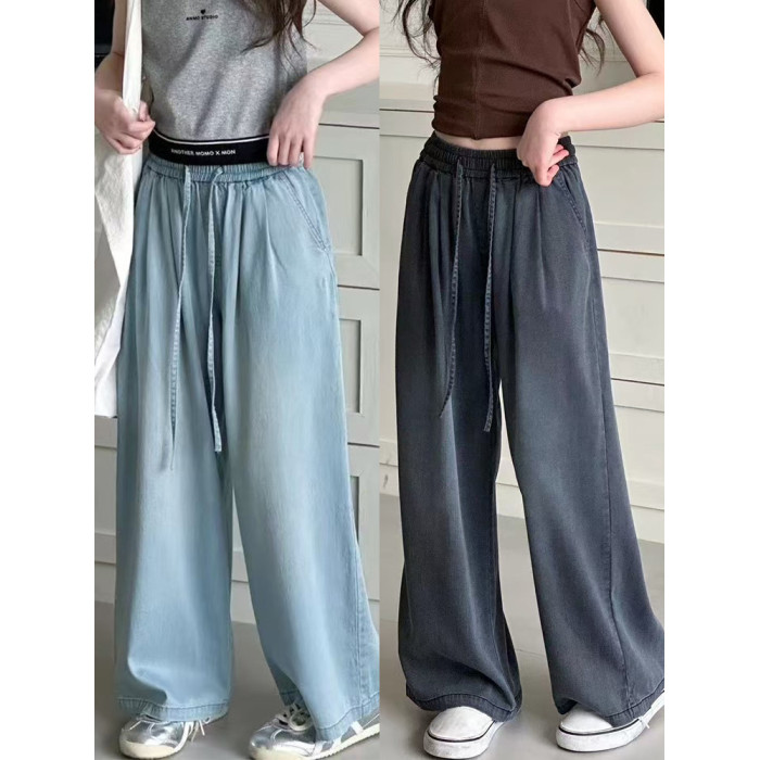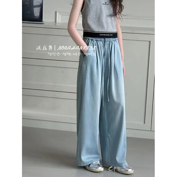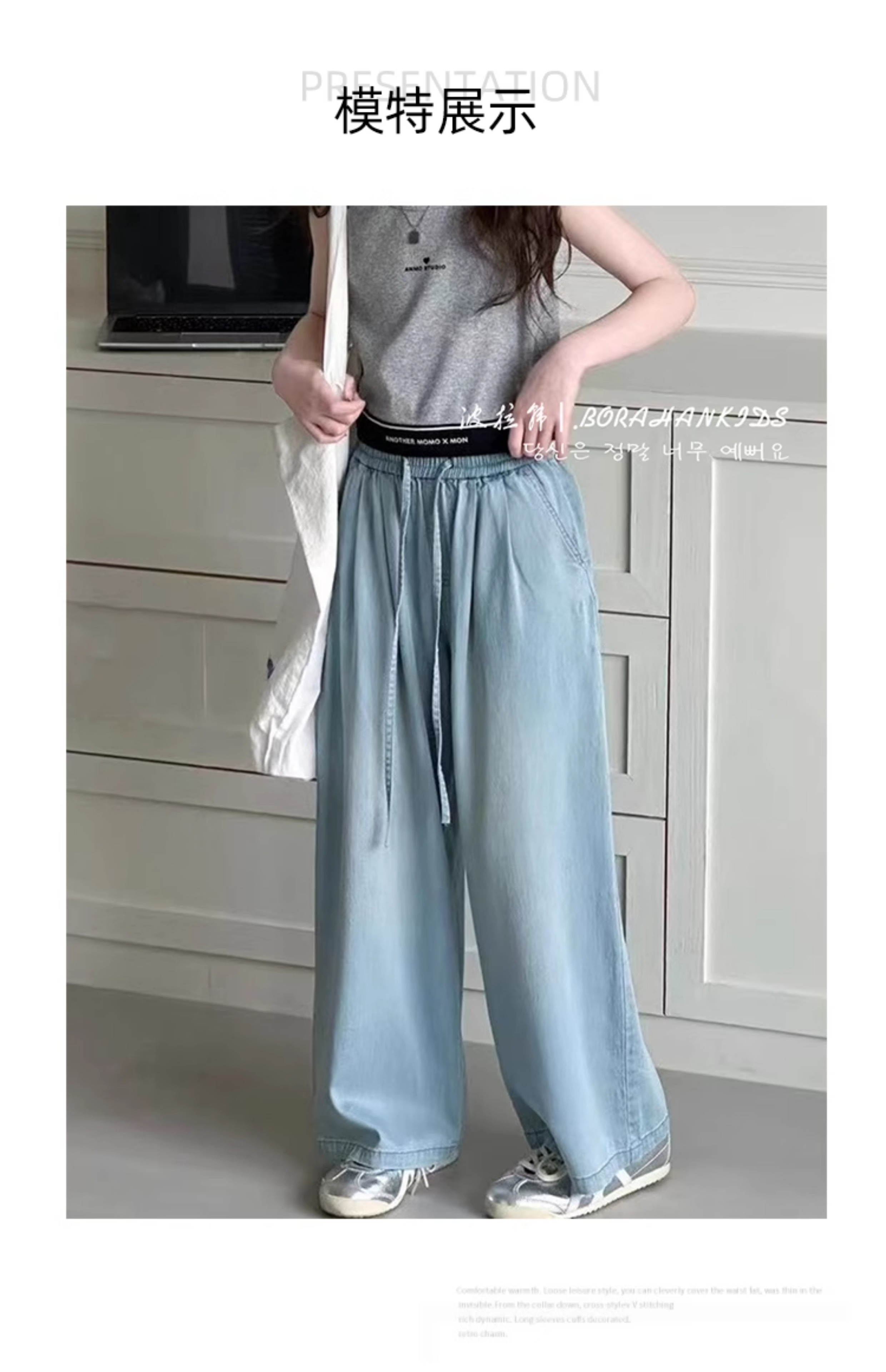 波拉韓女童牛仔褲夏季2025新款兒童天絲棉直筒褲中大童濶腿褲長褲