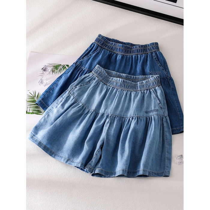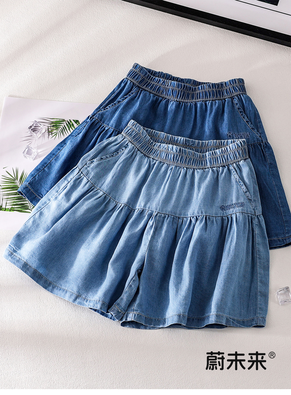 蔚未來女童短褲夏裝2025新款兒童天絲牛仔裙褲女大童濶腿五分褲薄