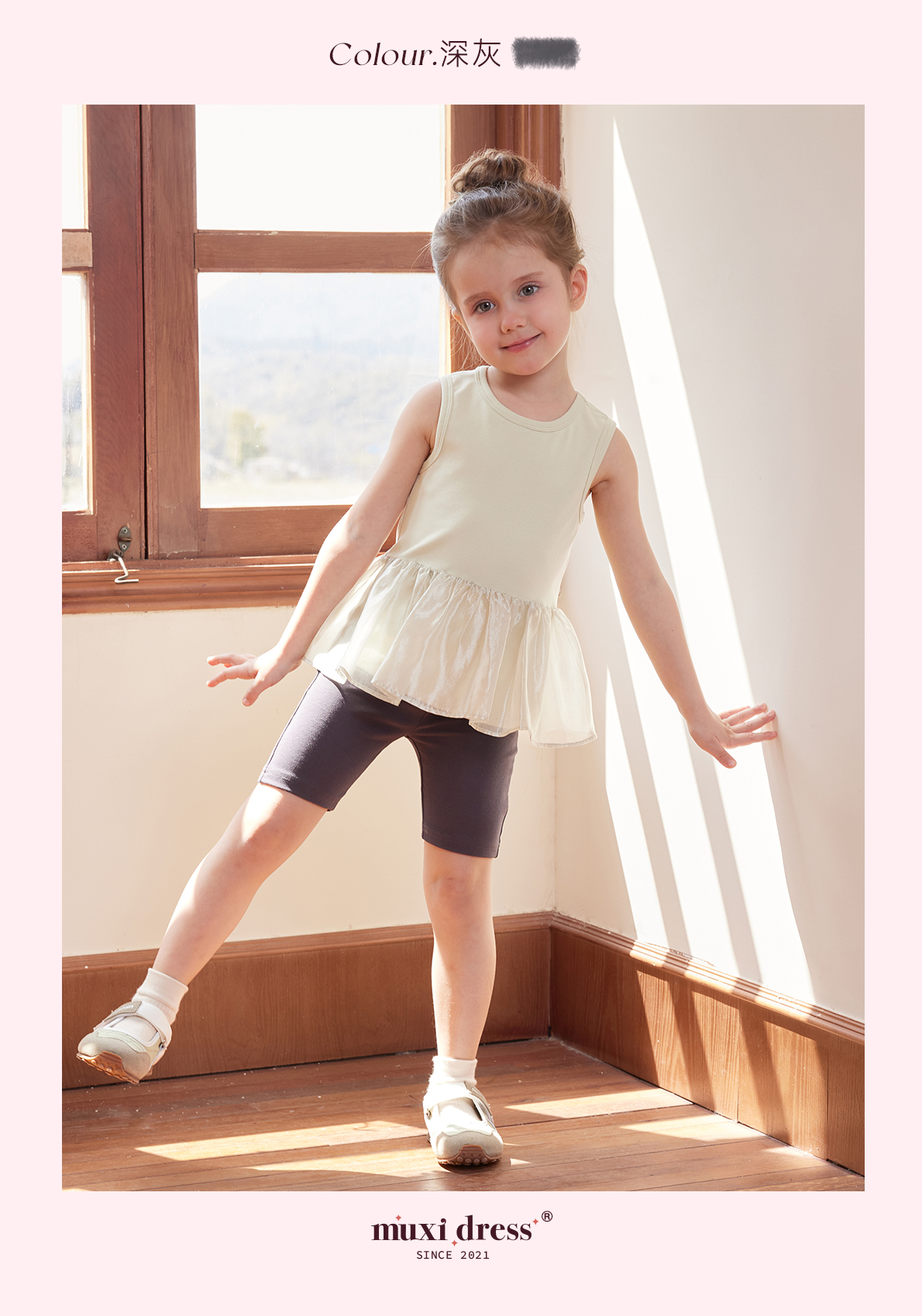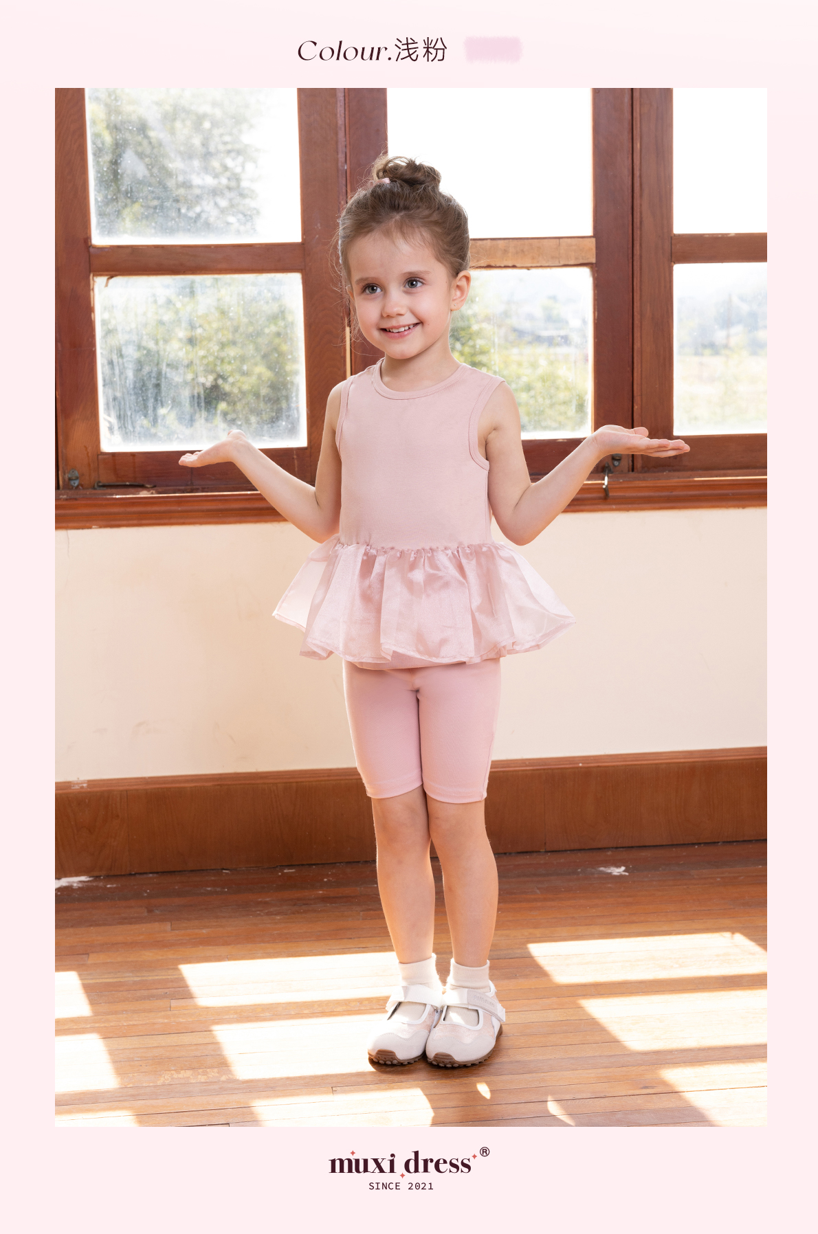 muxidress 25新品女童法式芭蕾風高彈短褲高彈松緊腰頭打底褲夏季