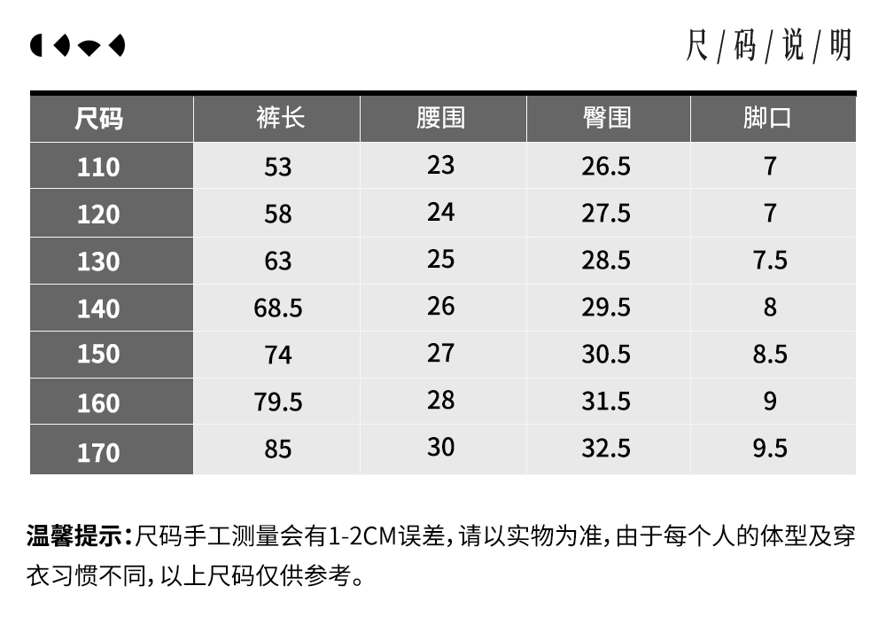 款式及尺寸: