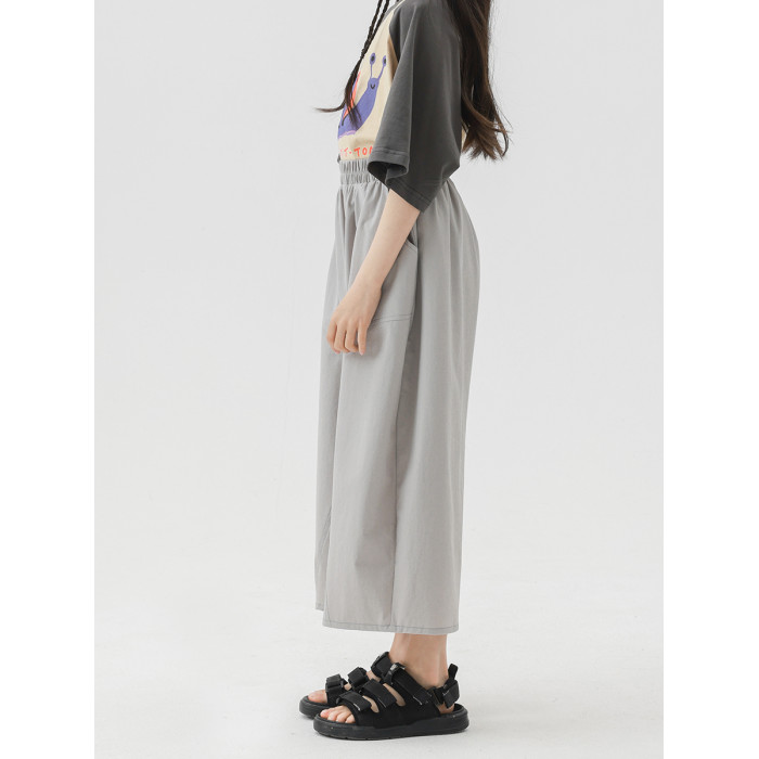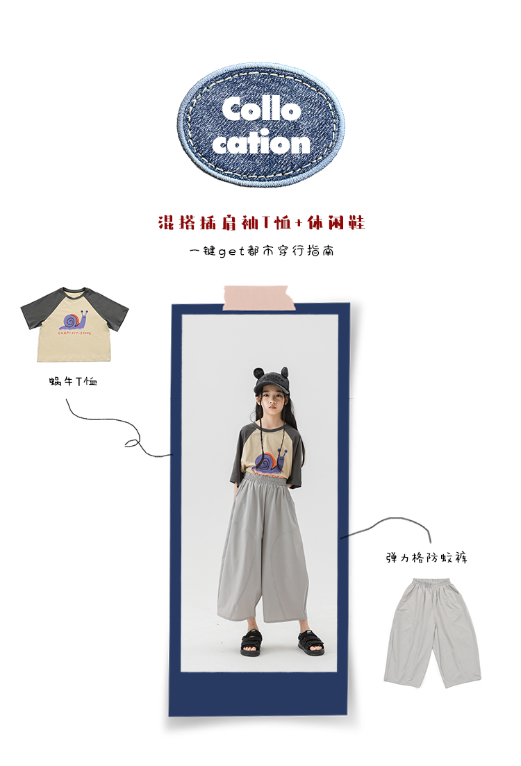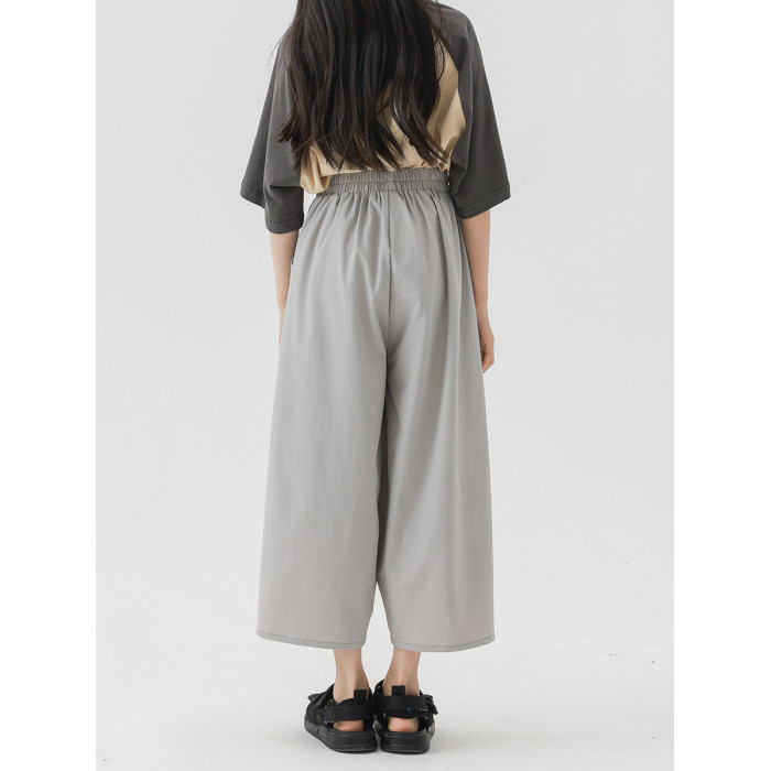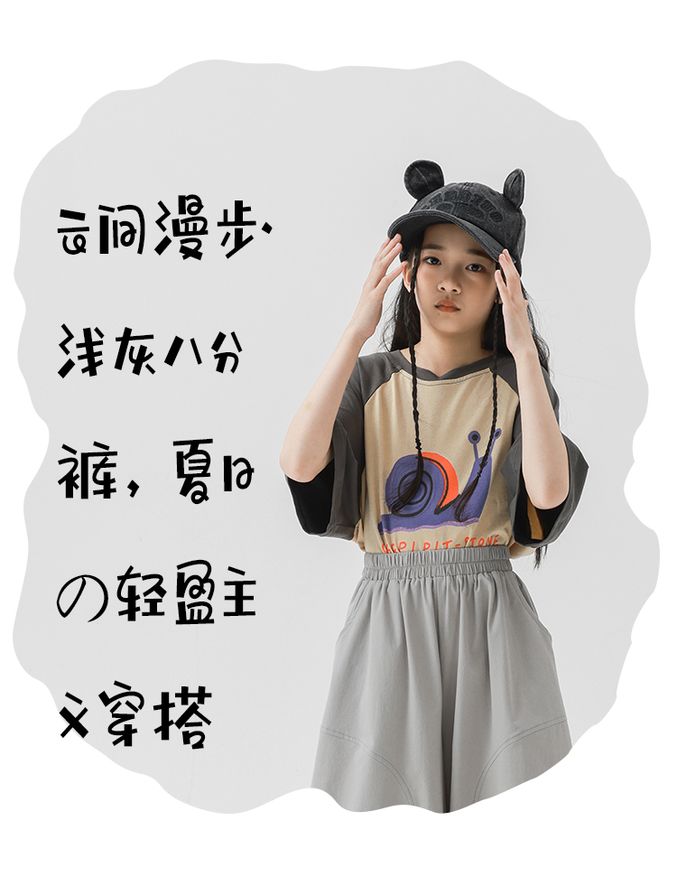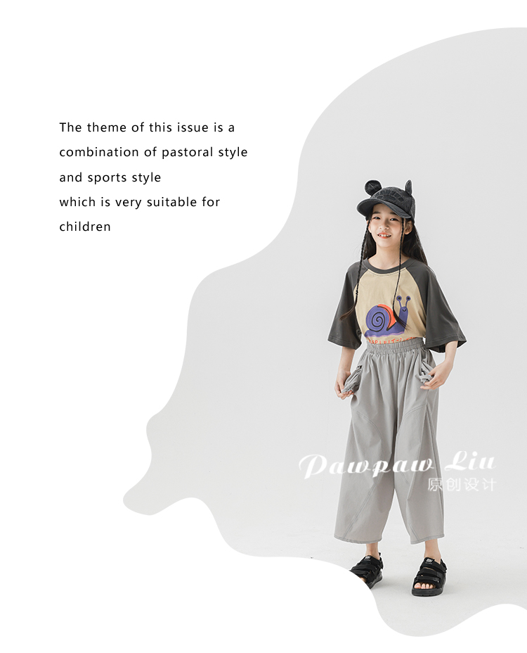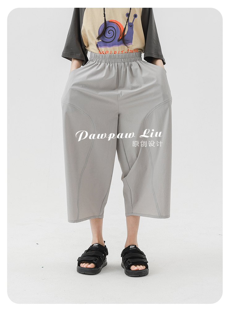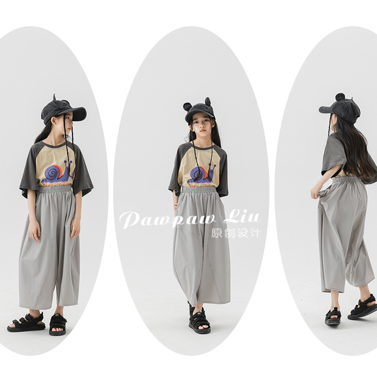 Pawpaw Liu原創設計女童褲子夏薄款2025新品兒童淺灰八分褲寬松
