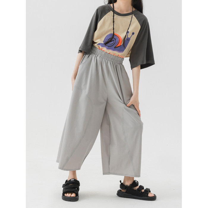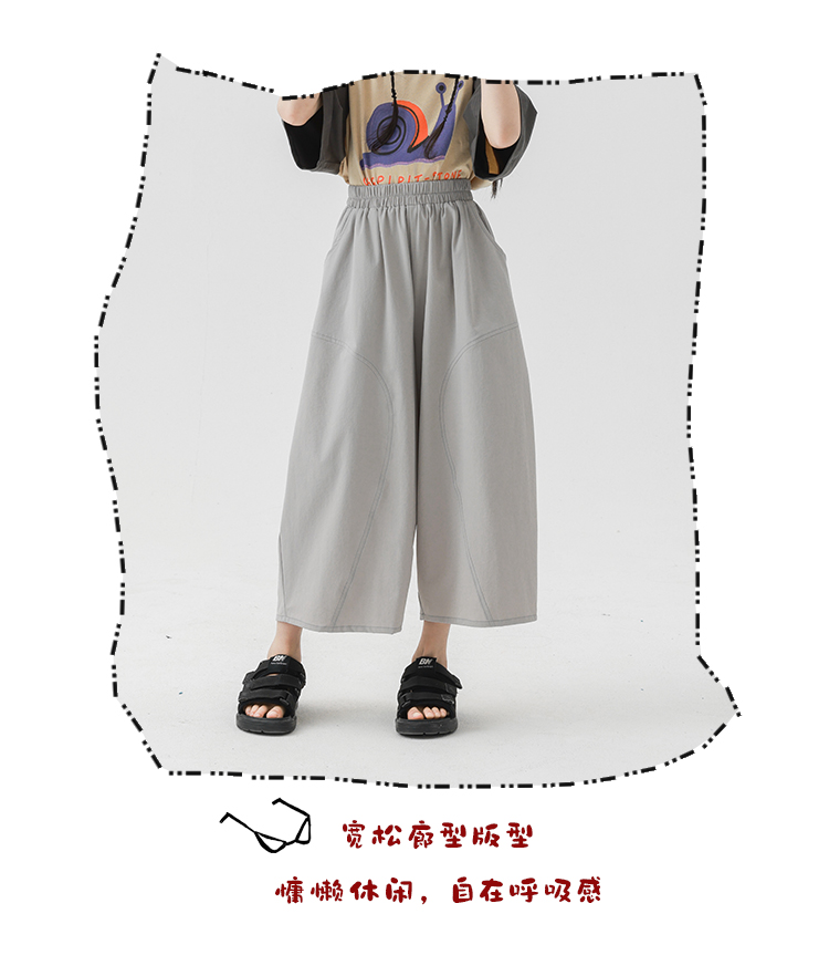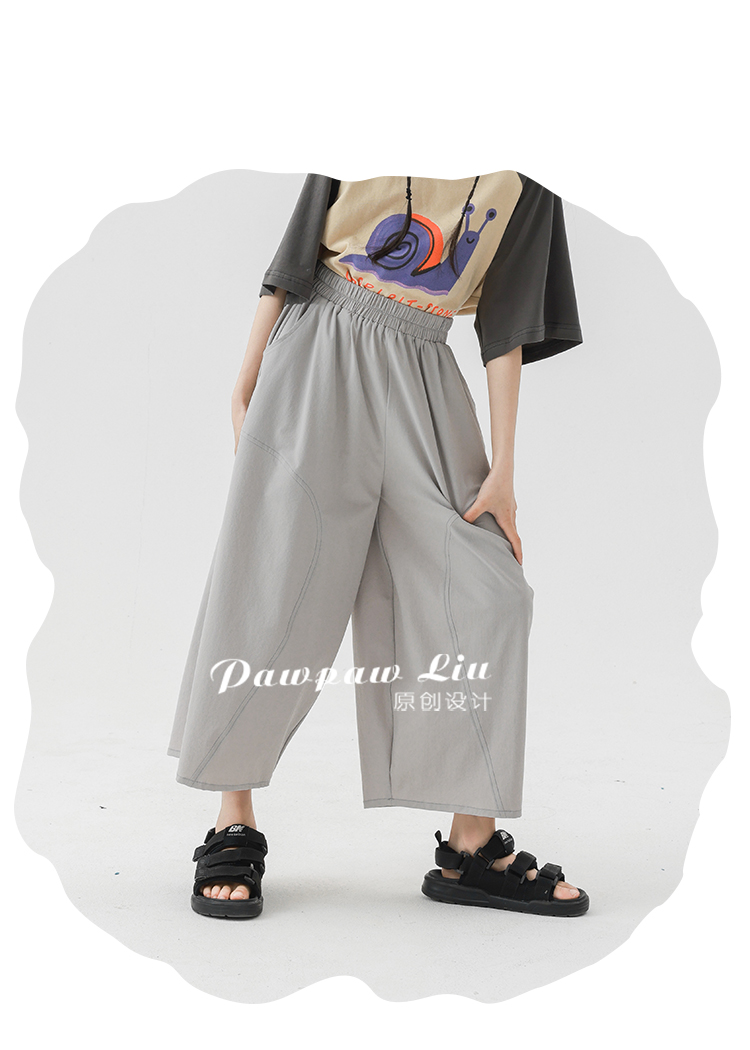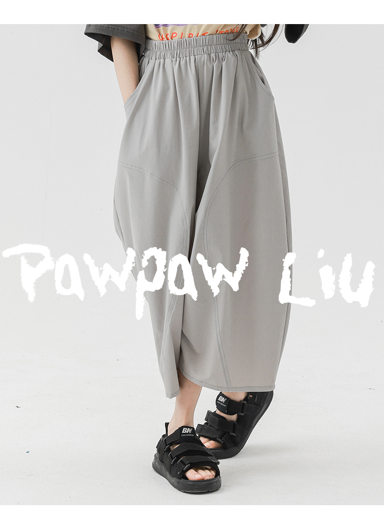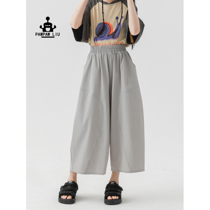 Pawpaw  Liu原創設計女童褲子夏薄款2025新品兒童淺灰八分褲寬松