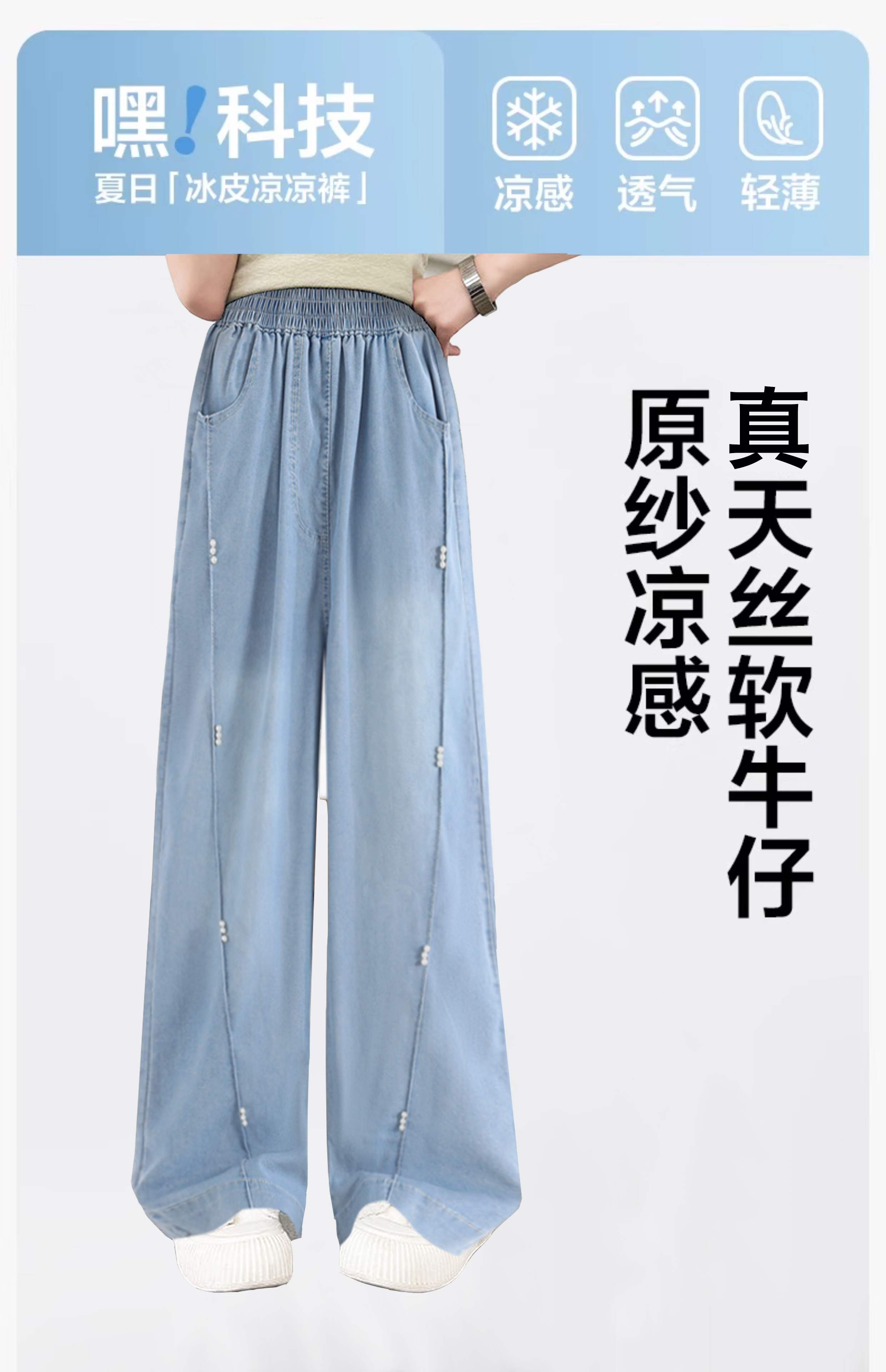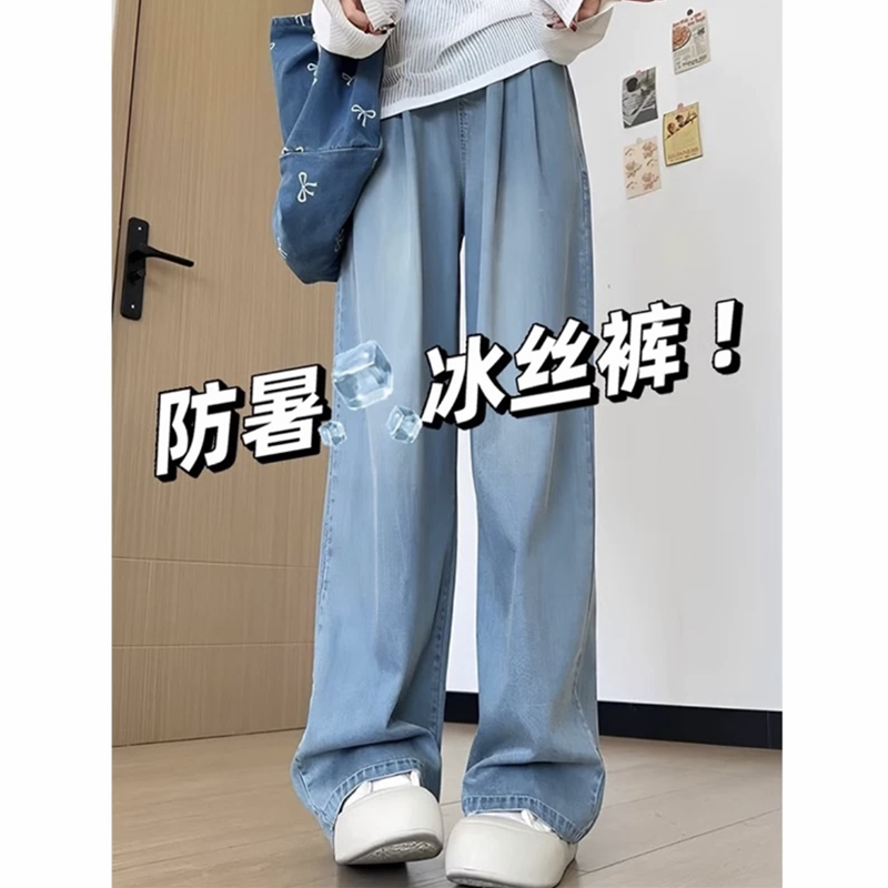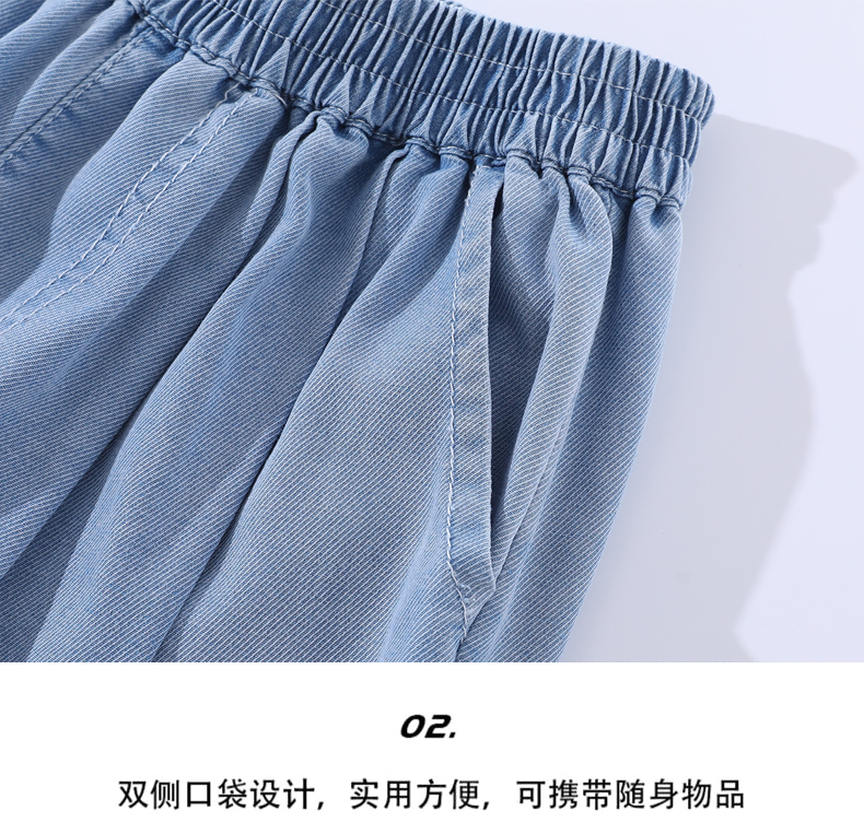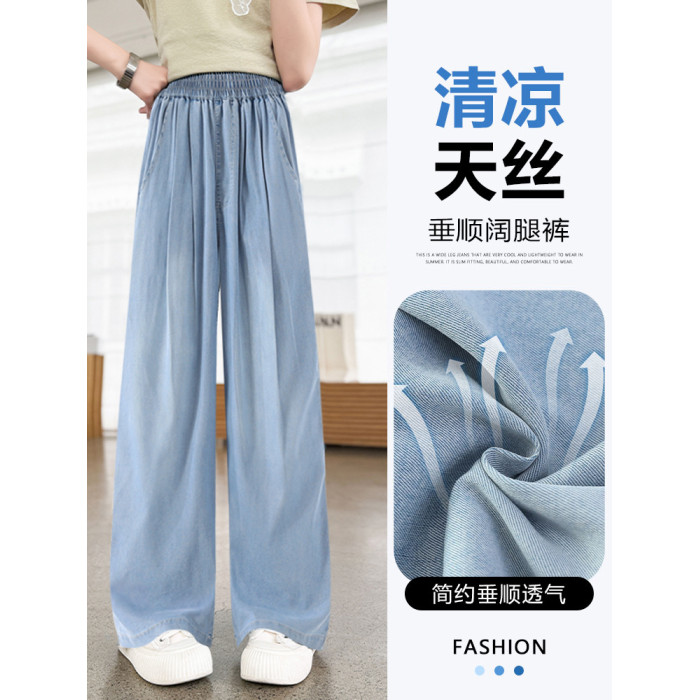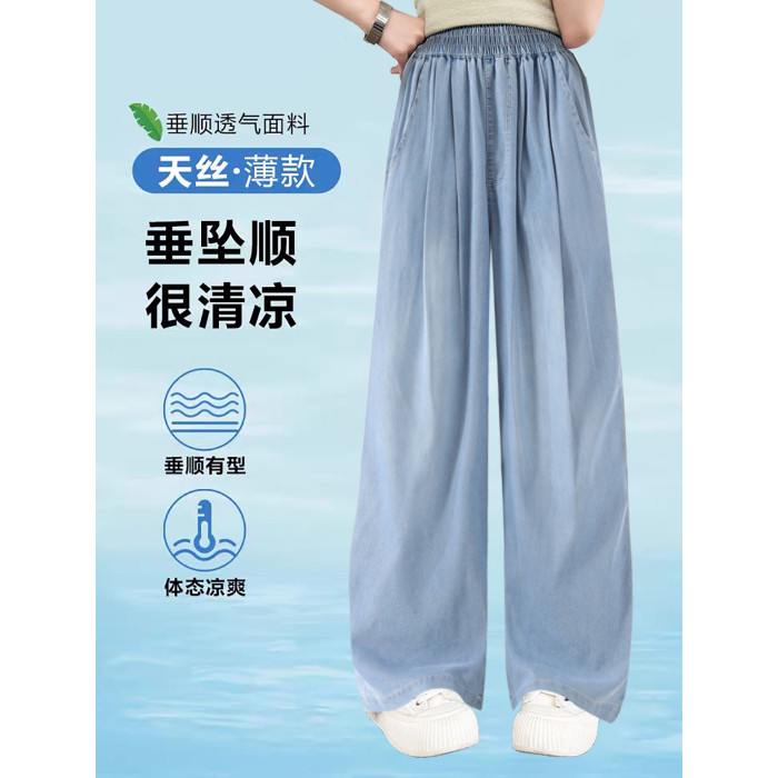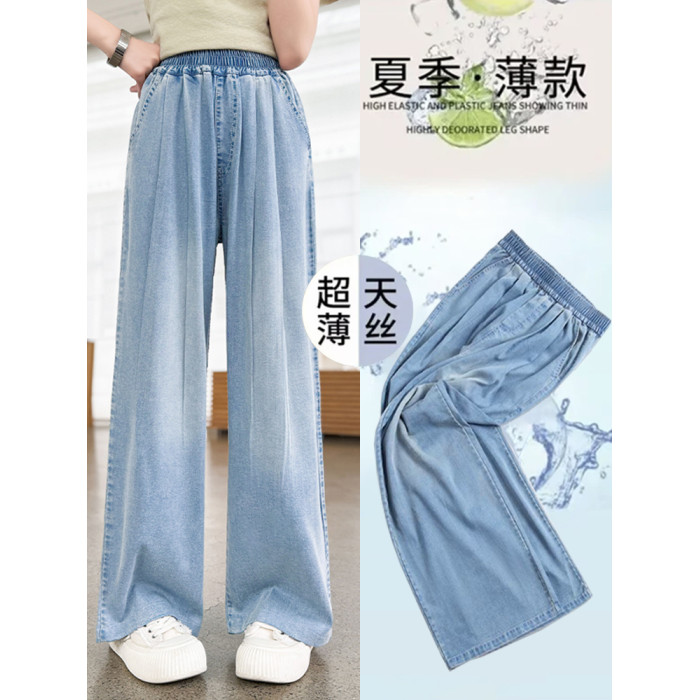 女童夏季褲子2025新款薄款冰絲褲防蚊大童寬松牛仔褲兒童天絲濶腿