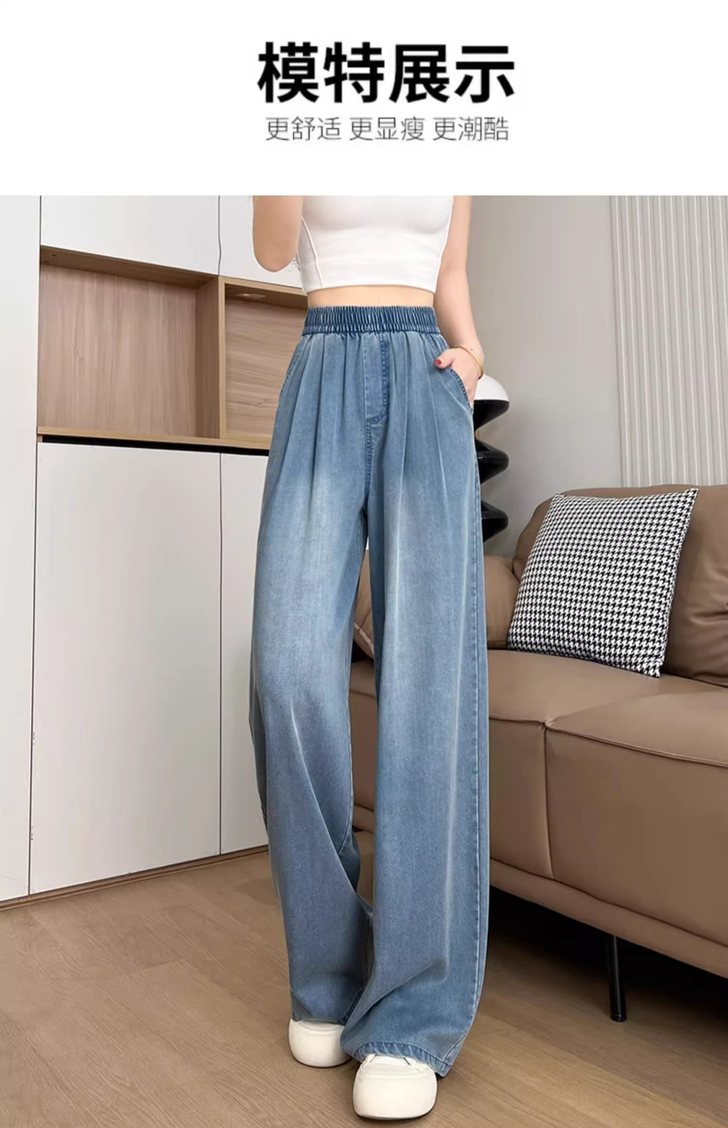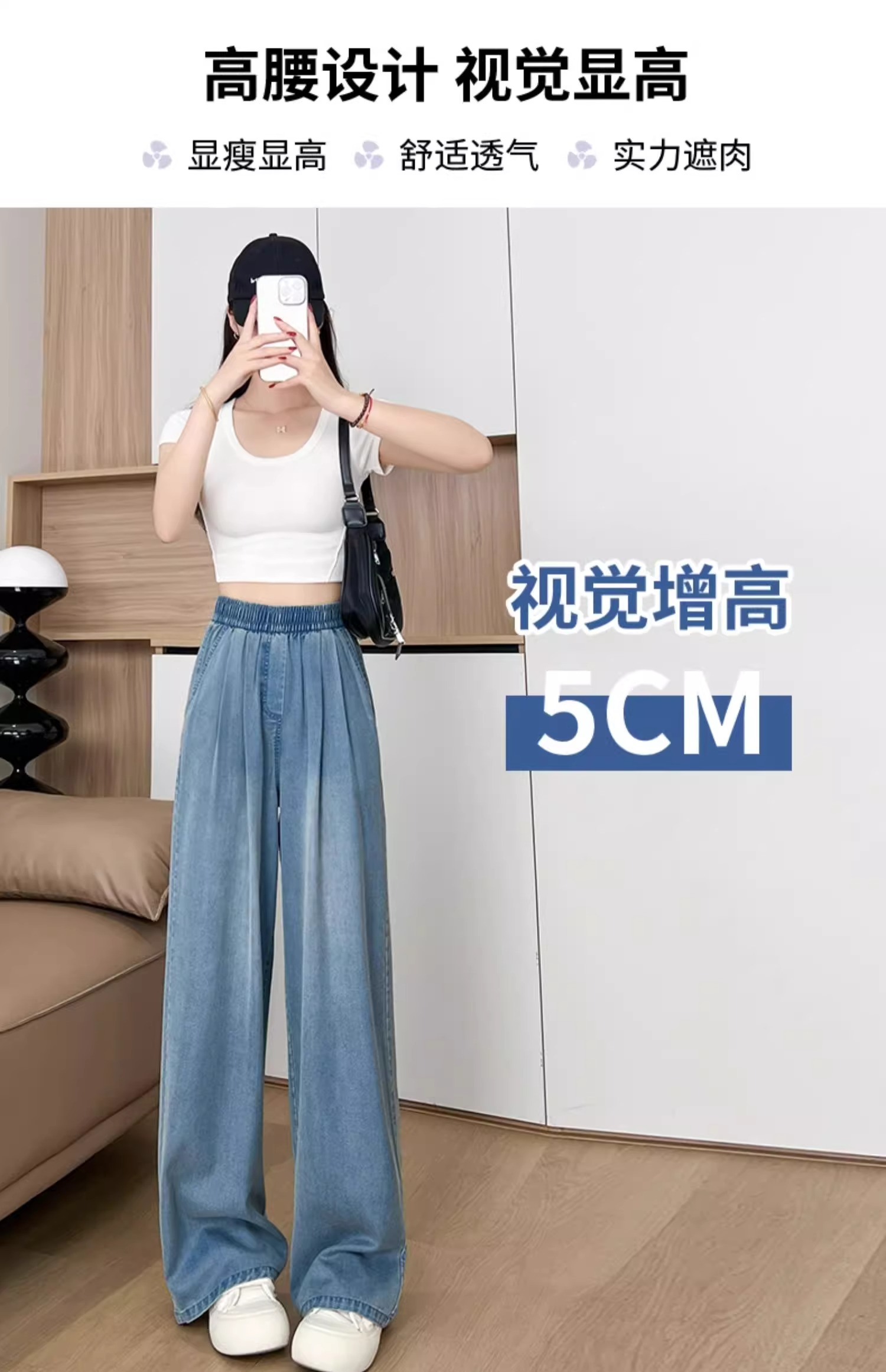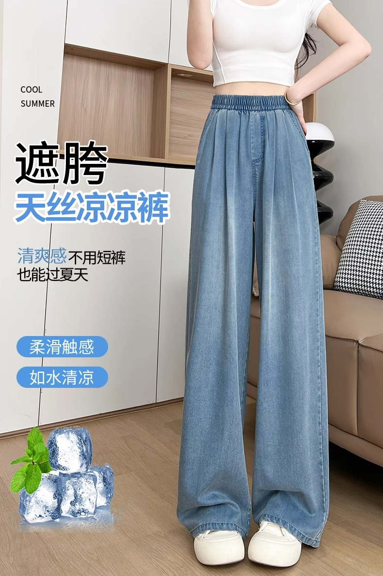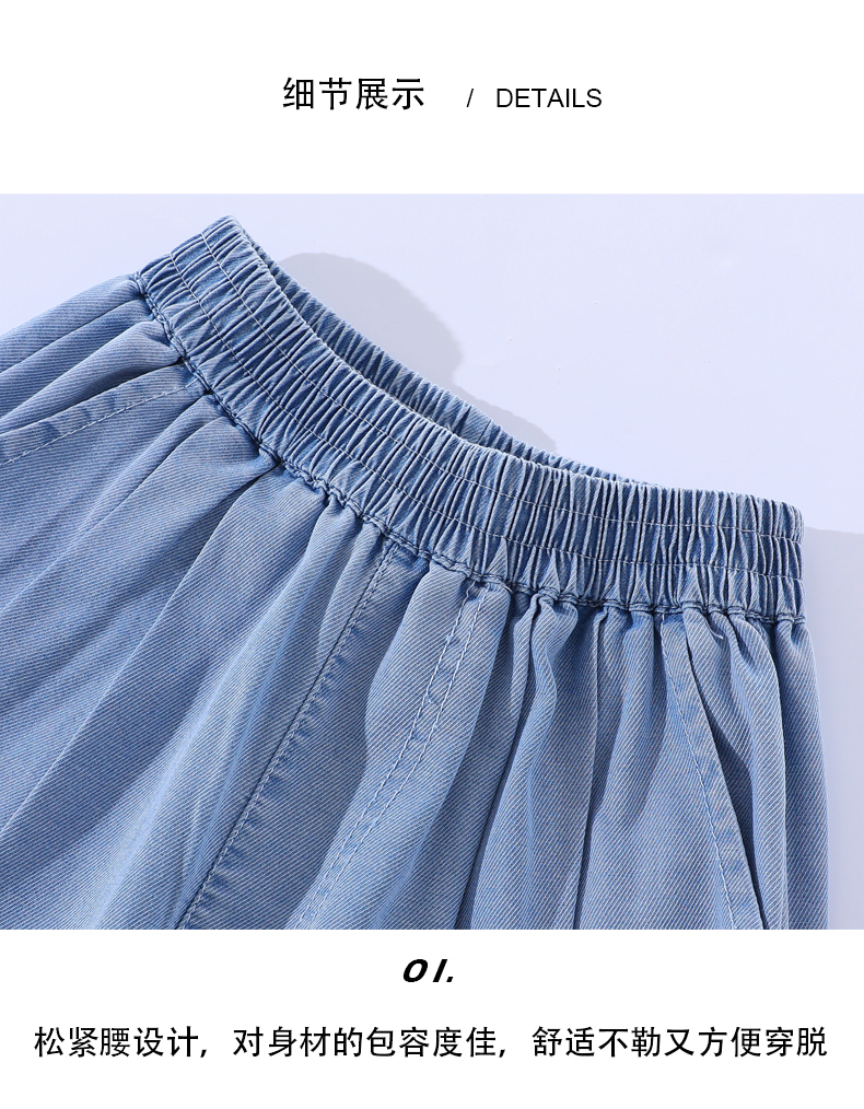 女童夏季褲子2025新款薄款冰絲褲防蚊大童寬松牛仔褲兒童天絲濶腿
