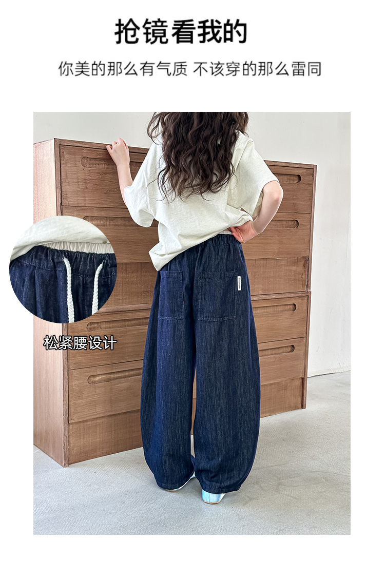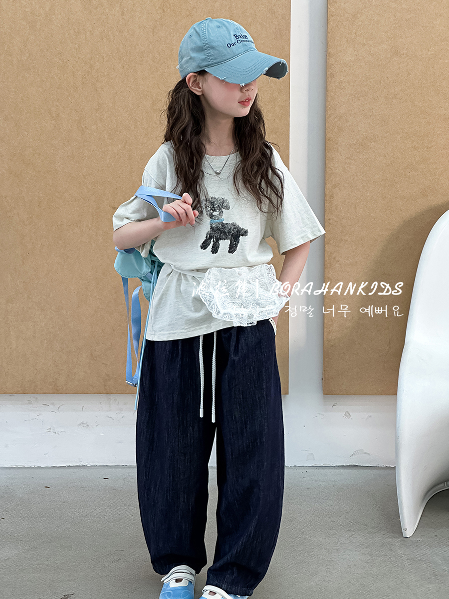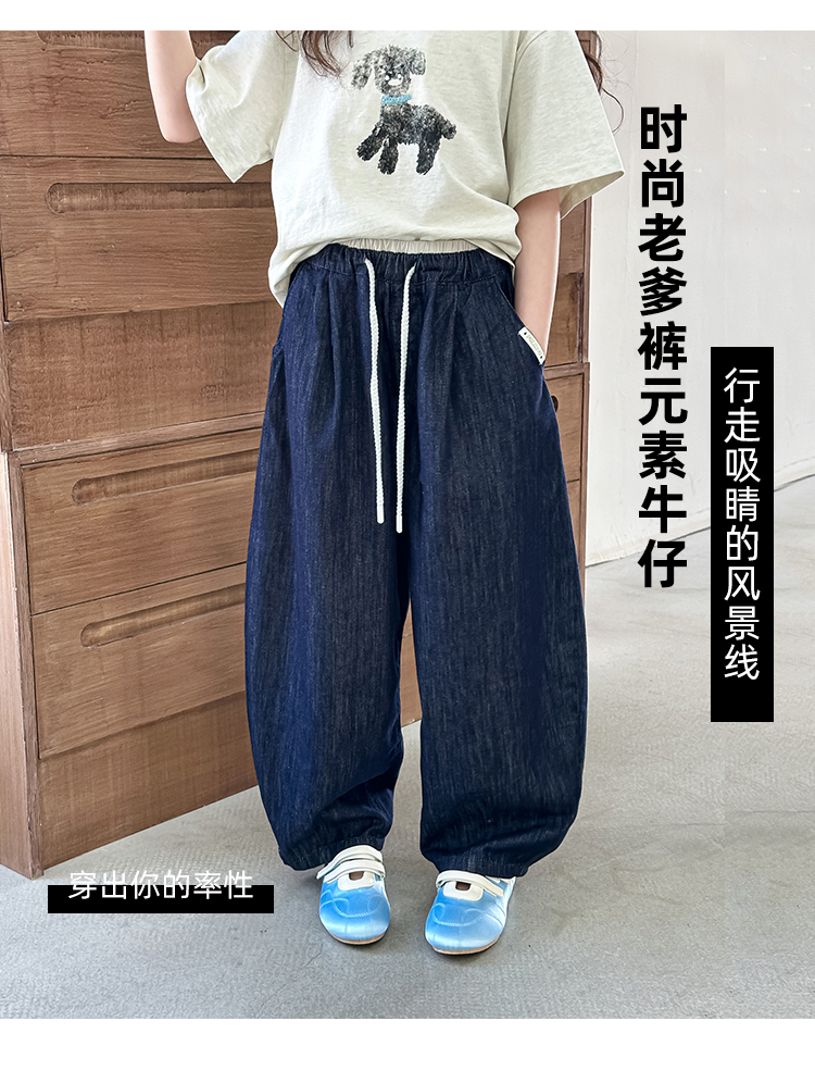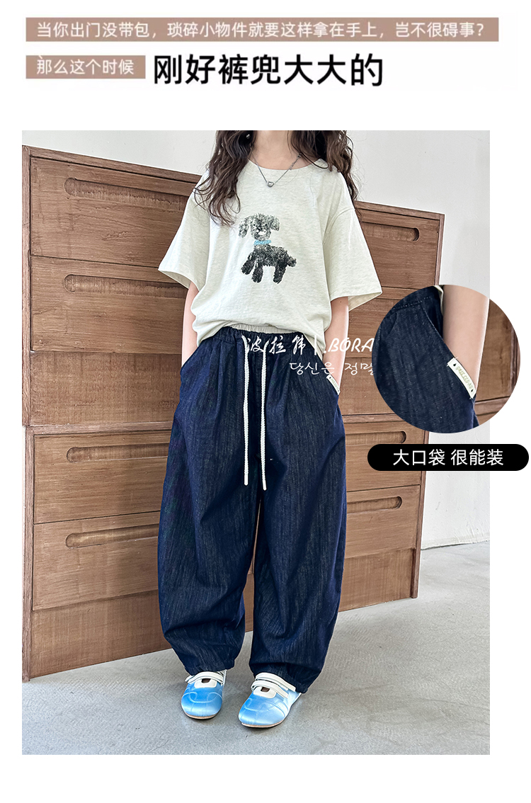 波拉韓女童牛仔褲夏季2025新款兒童韓系褲子中大童寬松老爹褲長褲