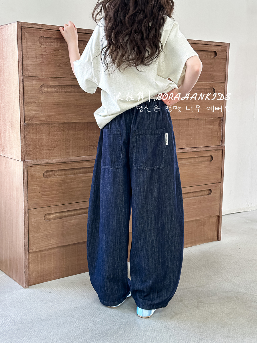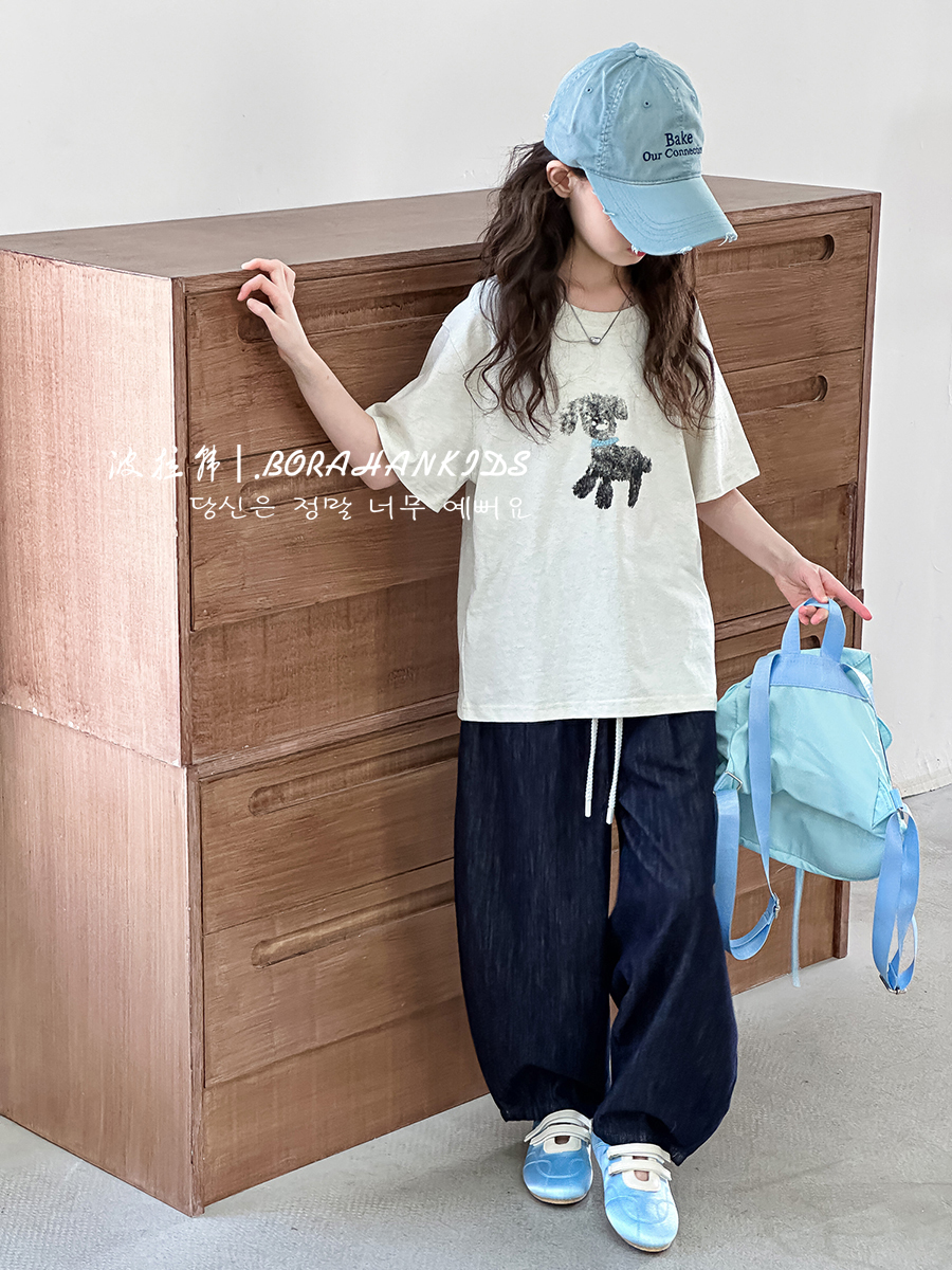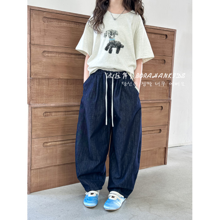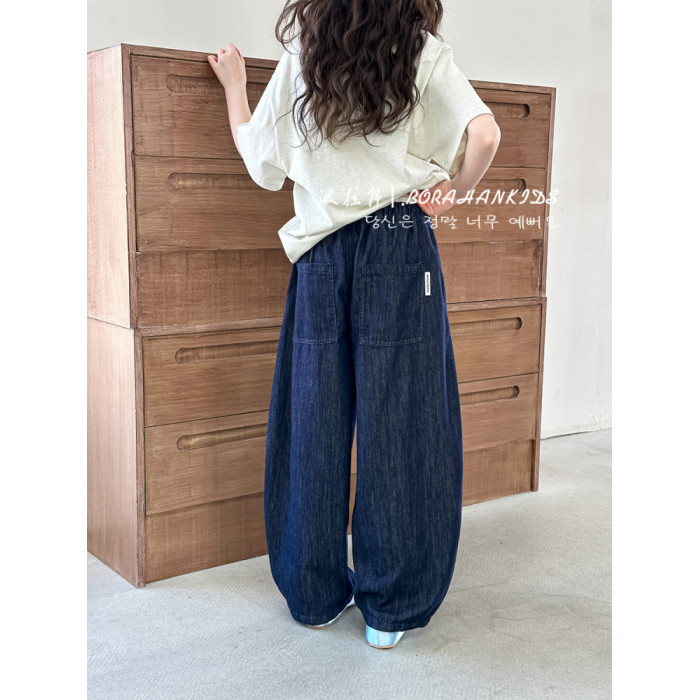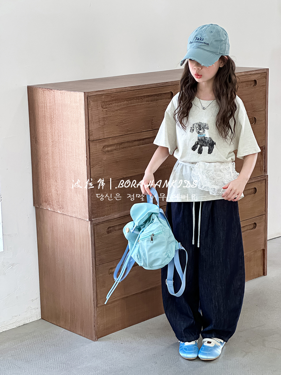 波拉韓女童牛仔褲夏季2025新款兒童韓系褲子中大童寬松老爹褲長褲