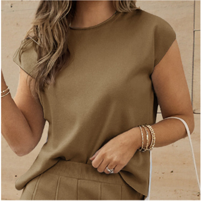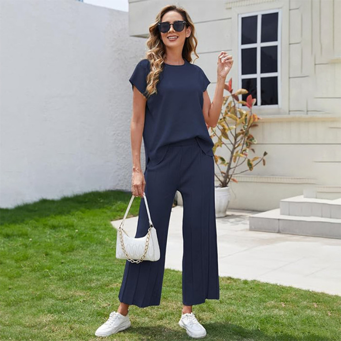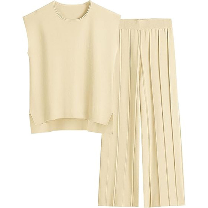 歐美女士 2 件套休閒針織濶腿褲子套裝海灘度假服裝