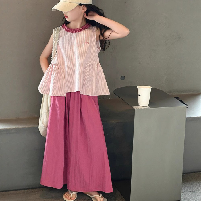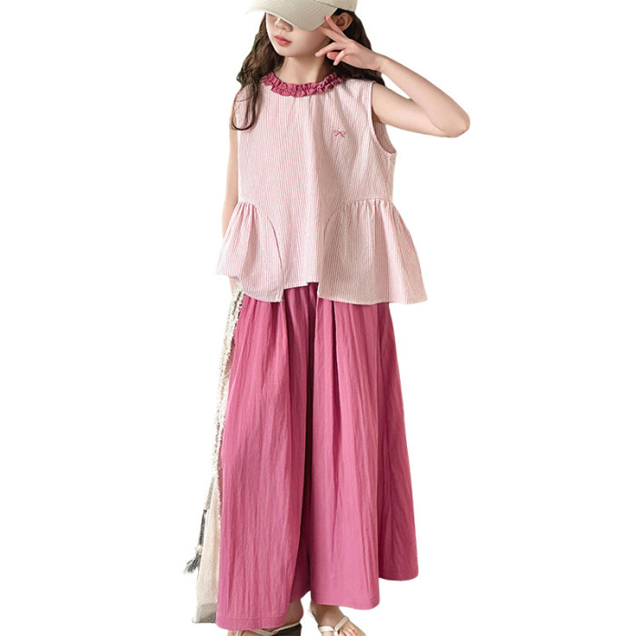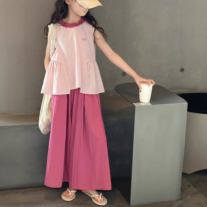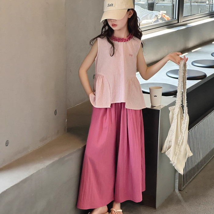 女童夏裝無袖套裝2025新款大童夏季韓系上衣兒童濶腿褲棉布兩件套