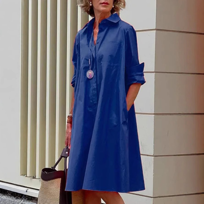 2025女裝春夏季 爆款襯衫連衣裙氣質風優雅長袖連衣裙女