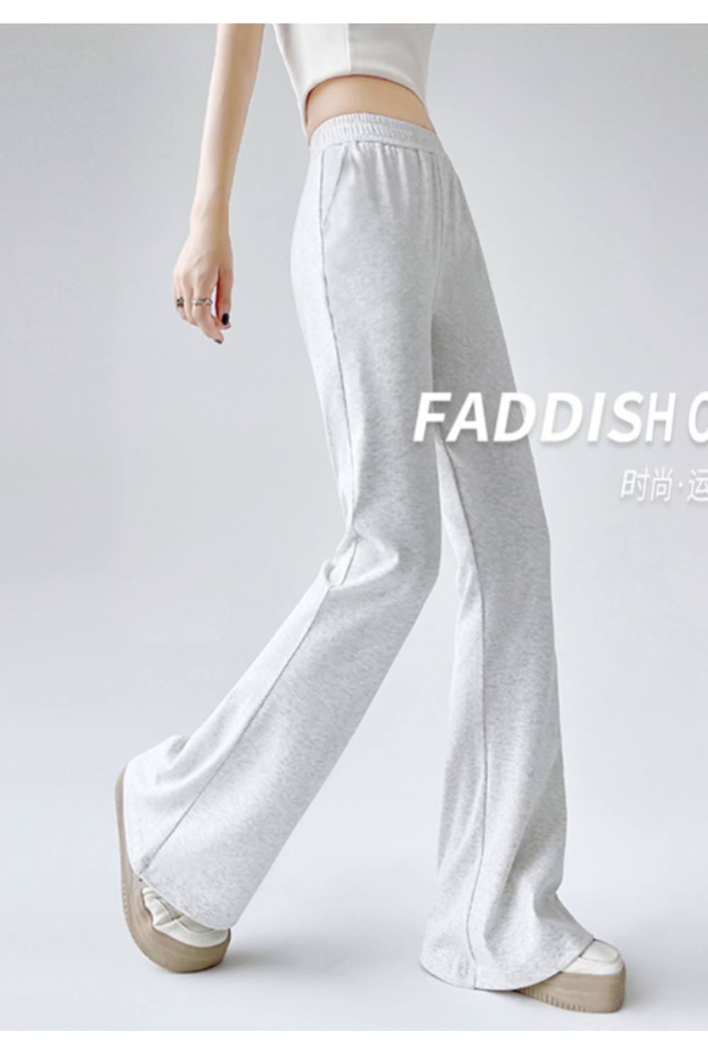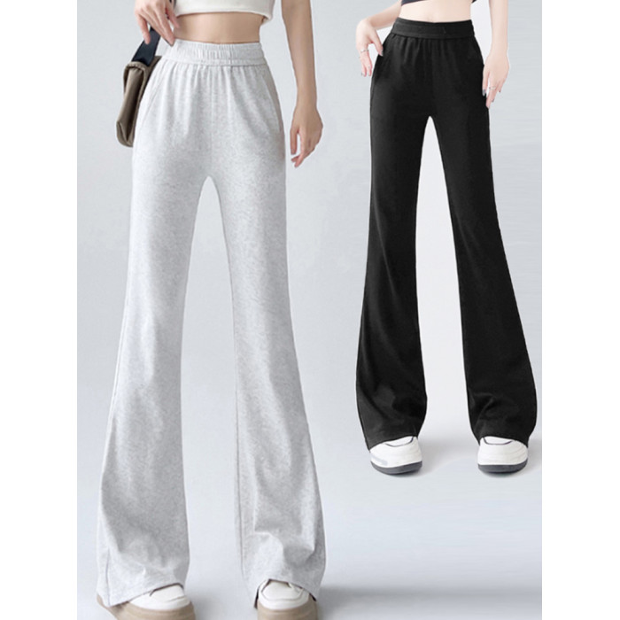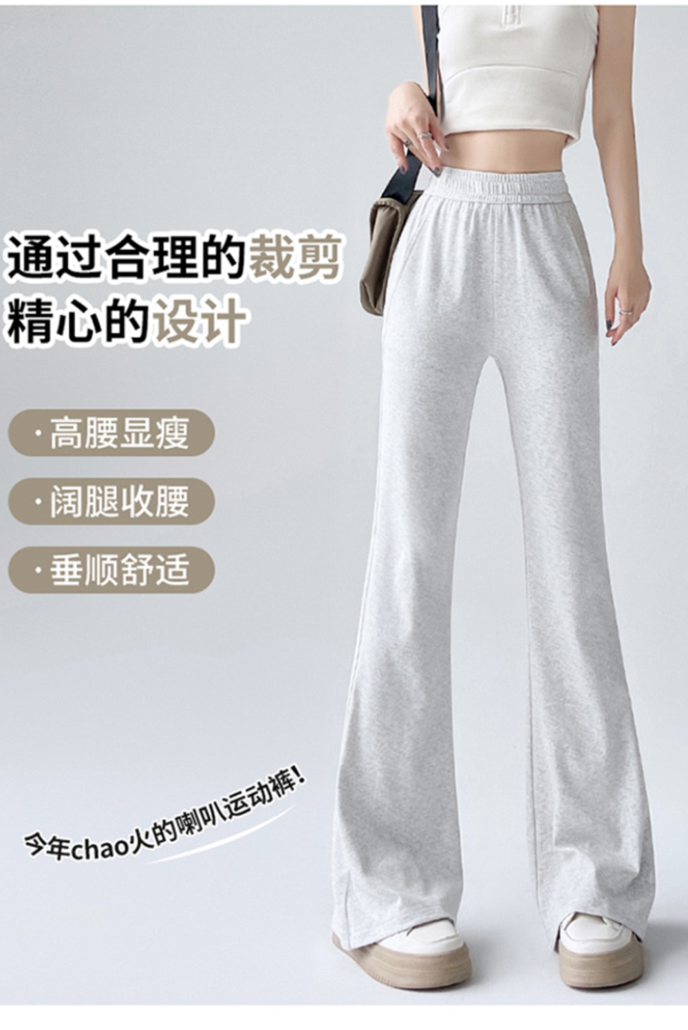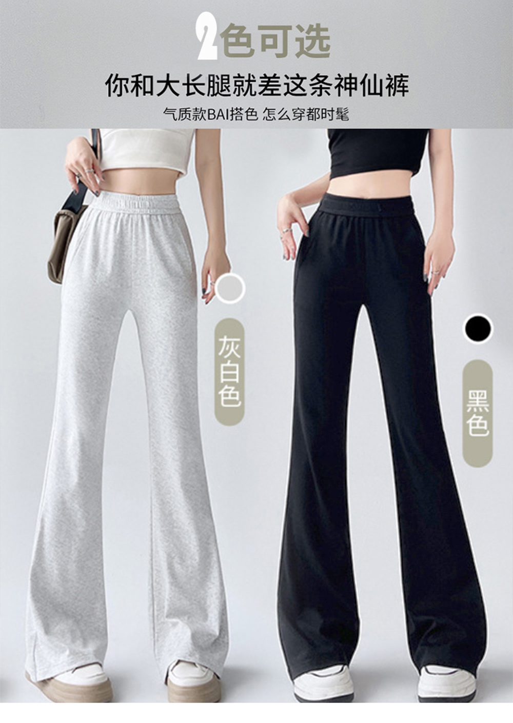 後拼淺灰微喇褲一夏薄