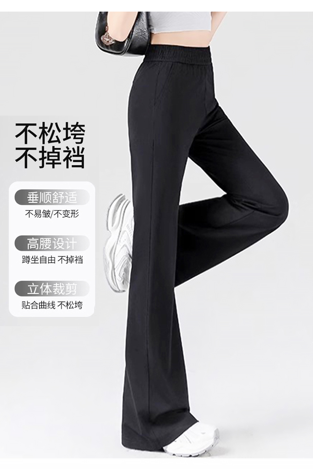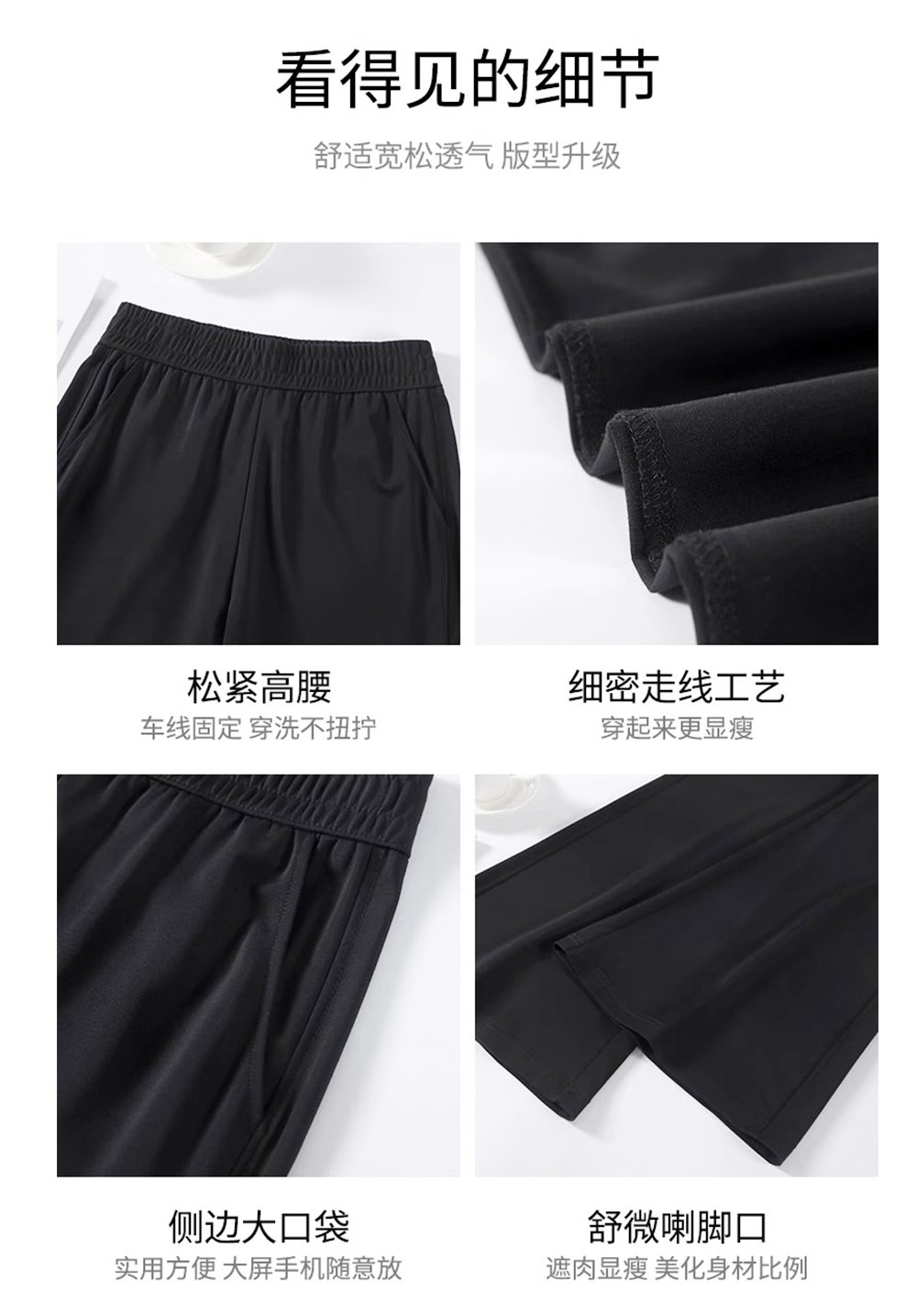 後拼黑色微喇褲一夏薄