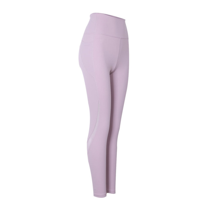 健身褲網紗拼接帶口袋瑜伽褲高腰收腹蜜桃提臀運動褲跑步訓練透氣