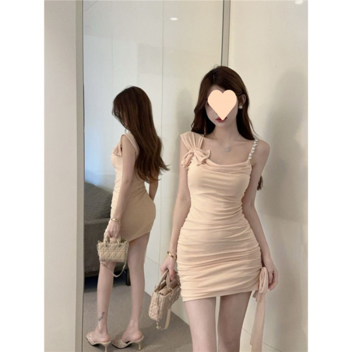 法式性感小個子修身包臀短裙女夏季純欲甜辣不規則設計吊帶連衣裙
