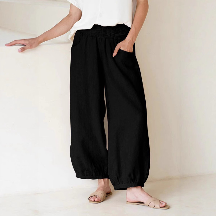 2025年春款歐美休閒褲女寬松休閒純色濶腿褲