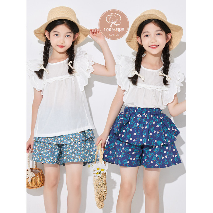 女童夏裝2025新款洋氣套裝兩件套兒童短褲外穿夏季薄款女孩裙褲