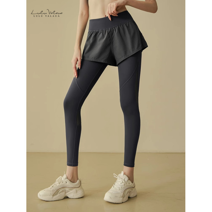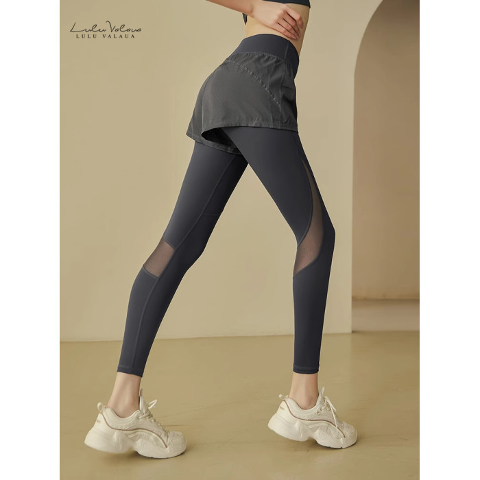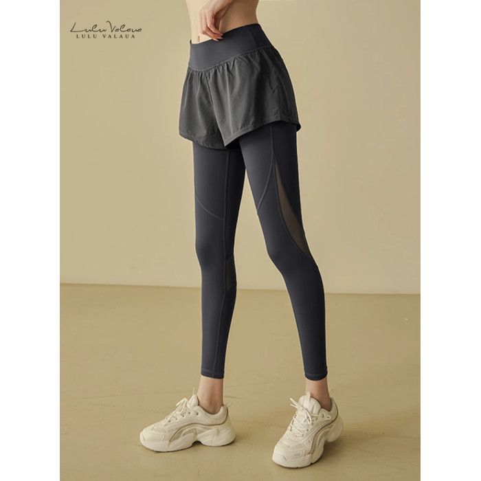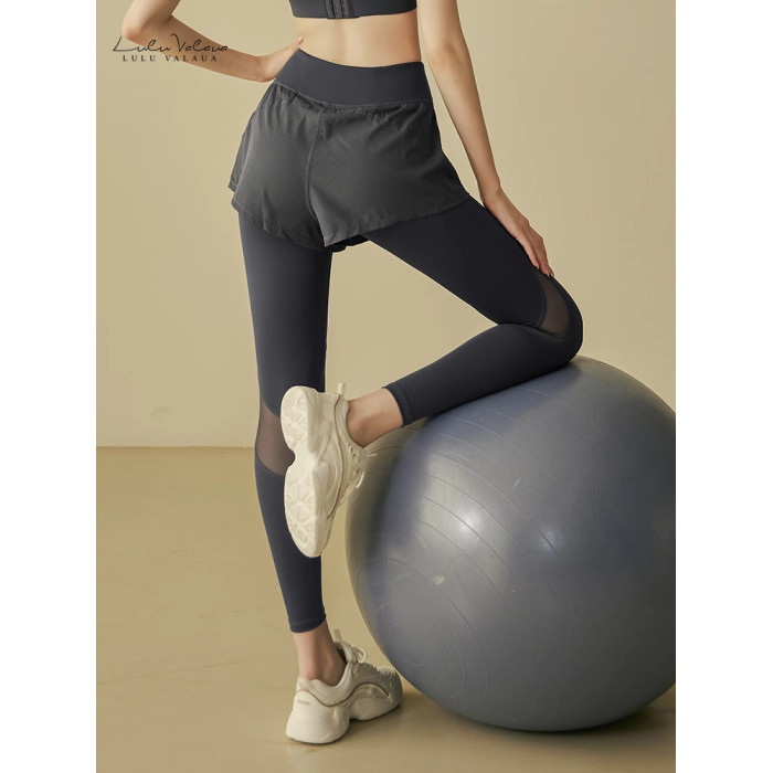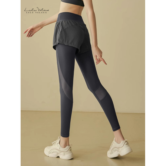 IuIu Yogo瑜伽褲女外穿高腰提臀假兩件網紗緊身速乾健身運動褲