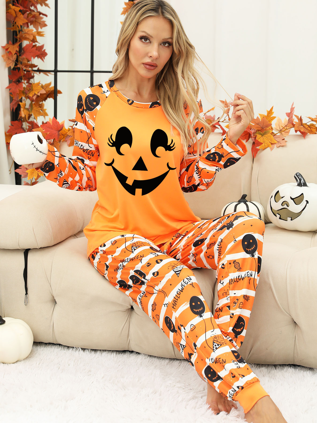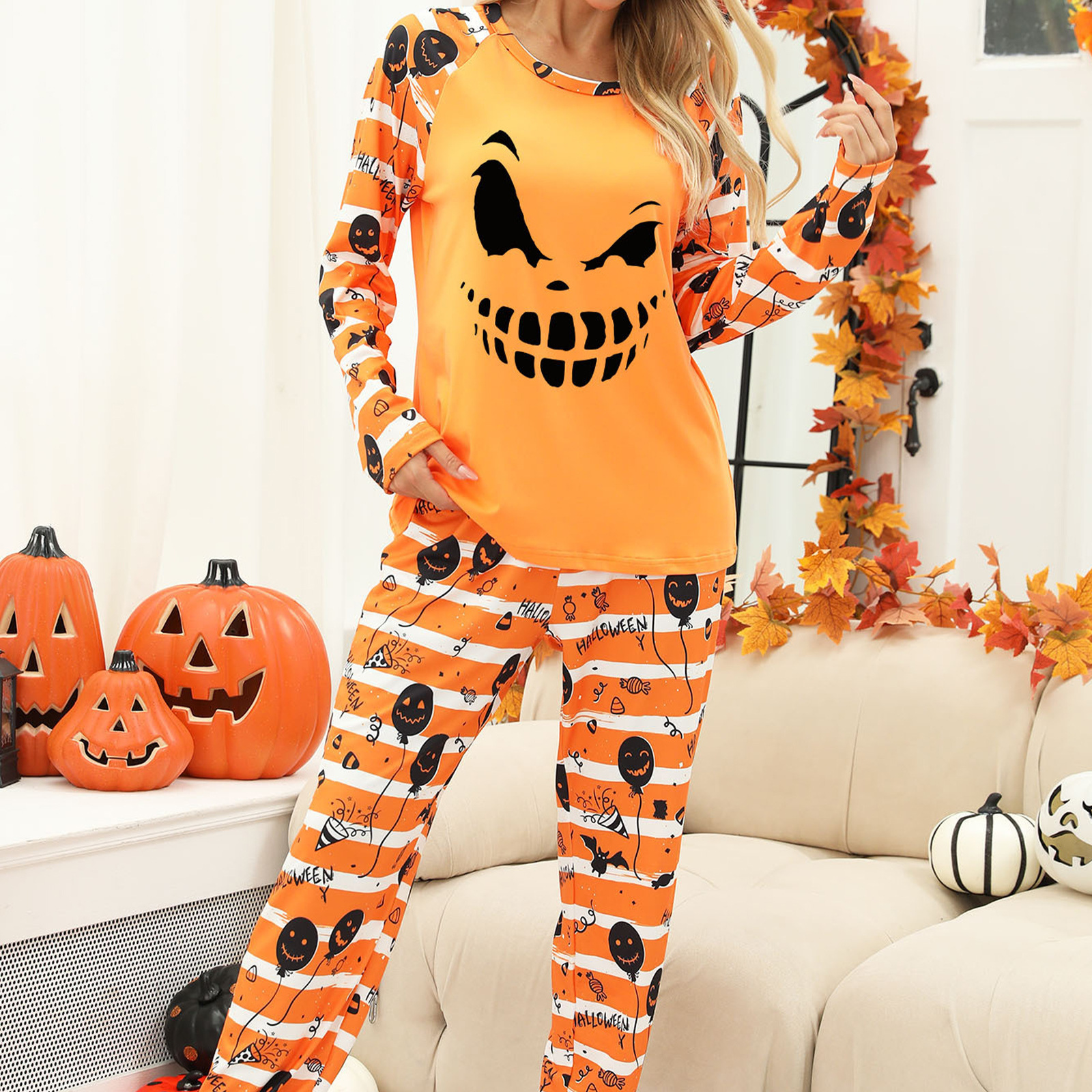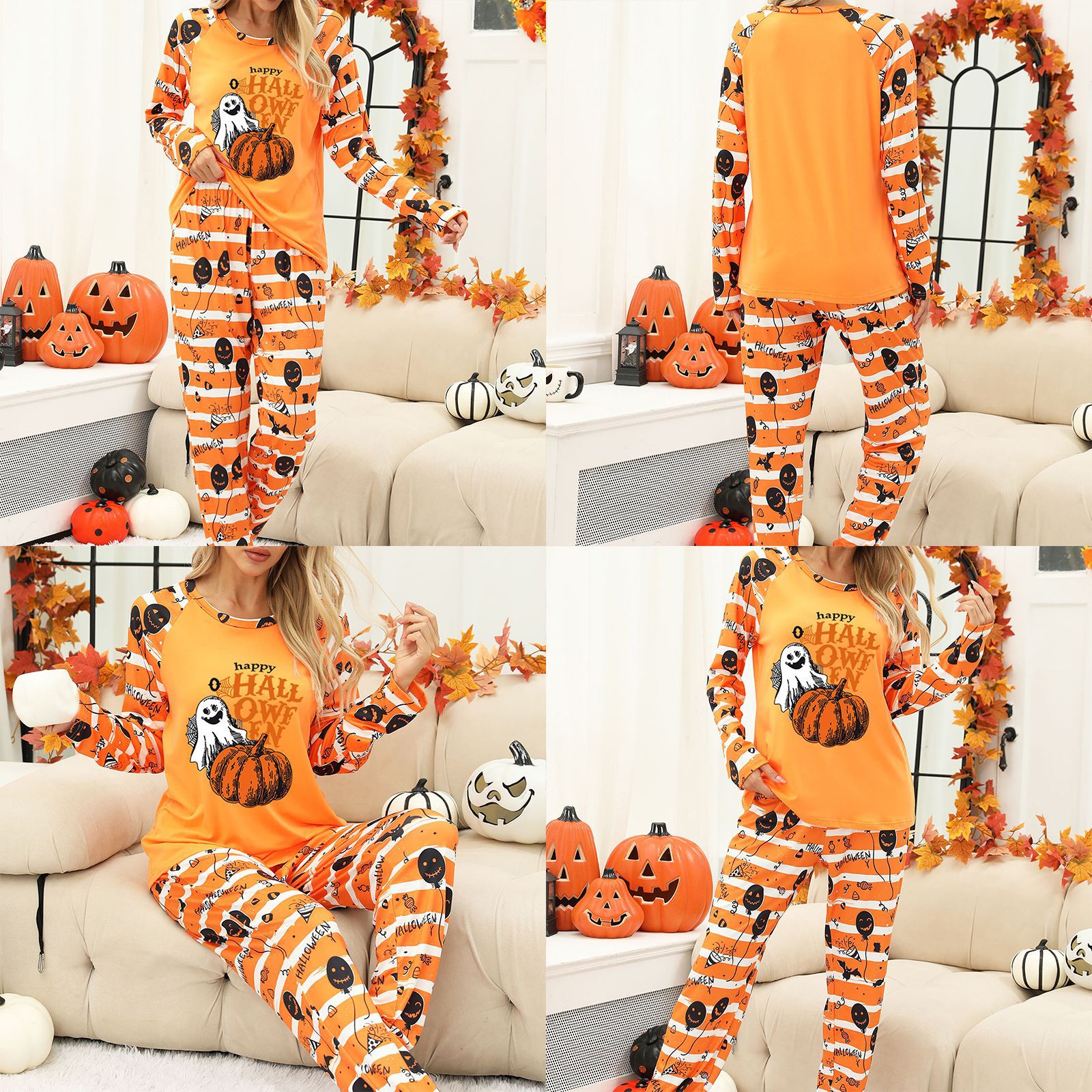 女裝家居服歐美兩件套分體家居服睡衣萬聖節南瓜印花