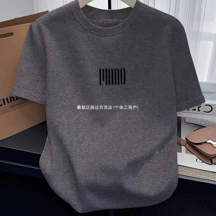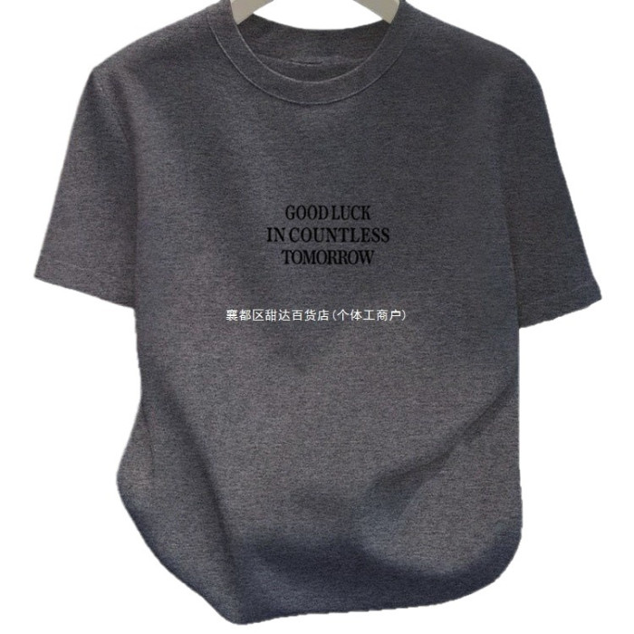灰色正肩棉質短袖恤女夏季新款時尚百搭上衣基礎款薄款體恤