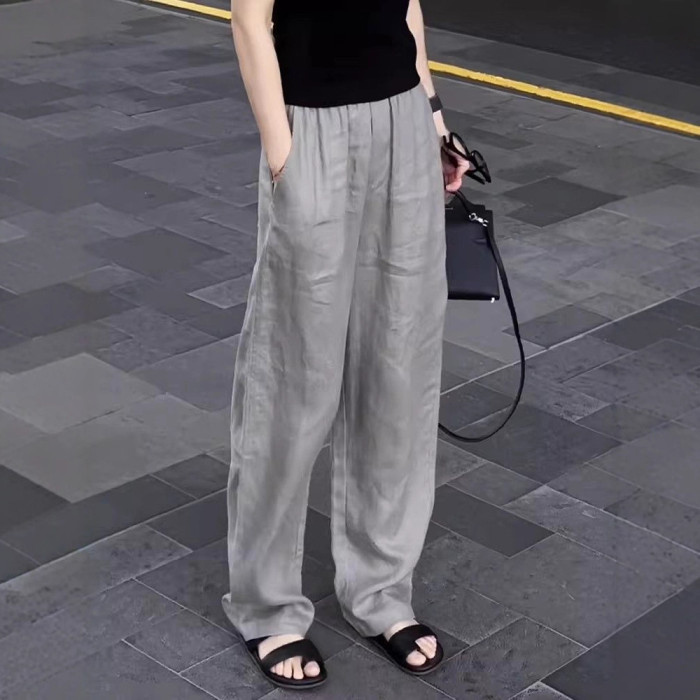 早秋新款歐貨韓版垂感濶腿褲女2025夏季薄款大碼胖mm小個子寬松顯