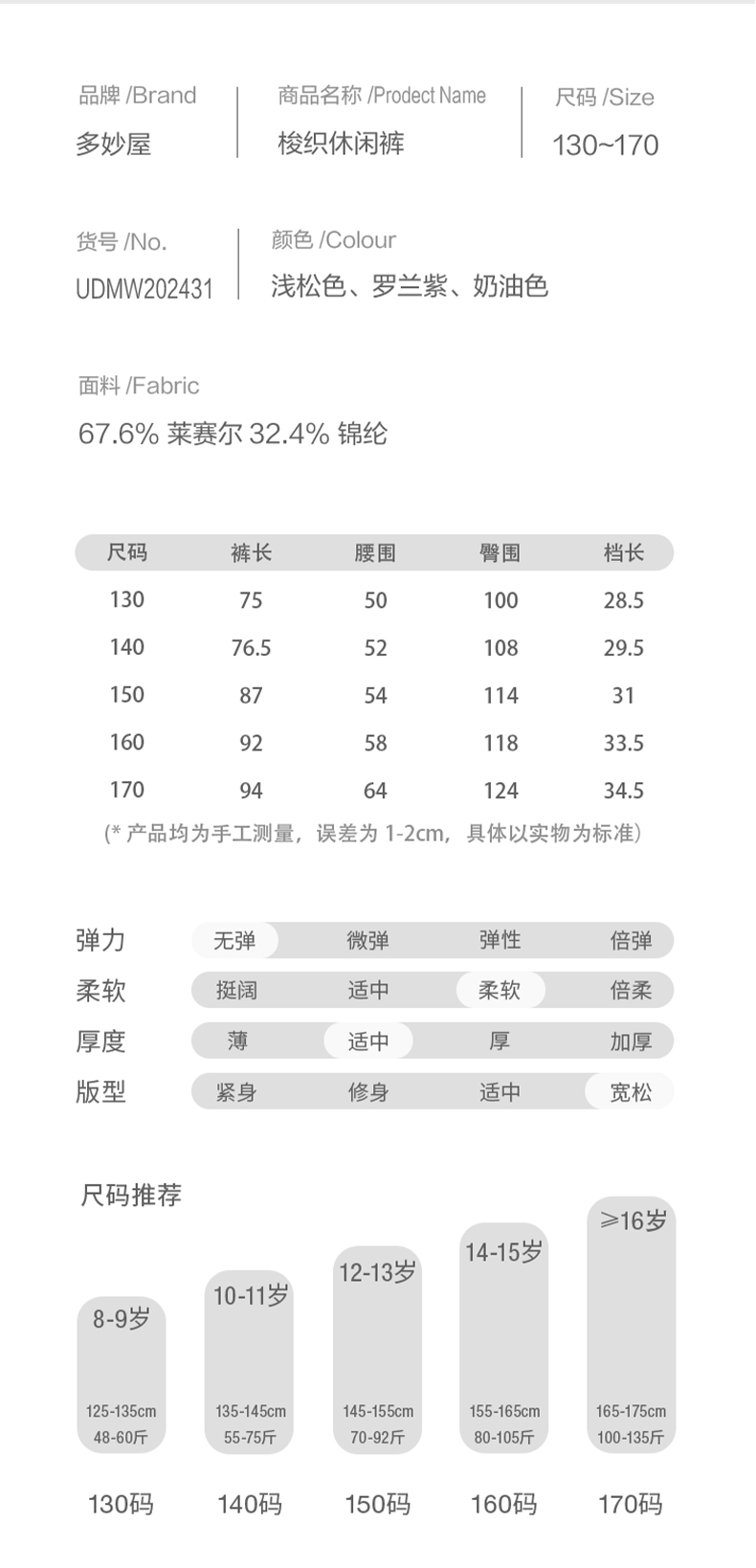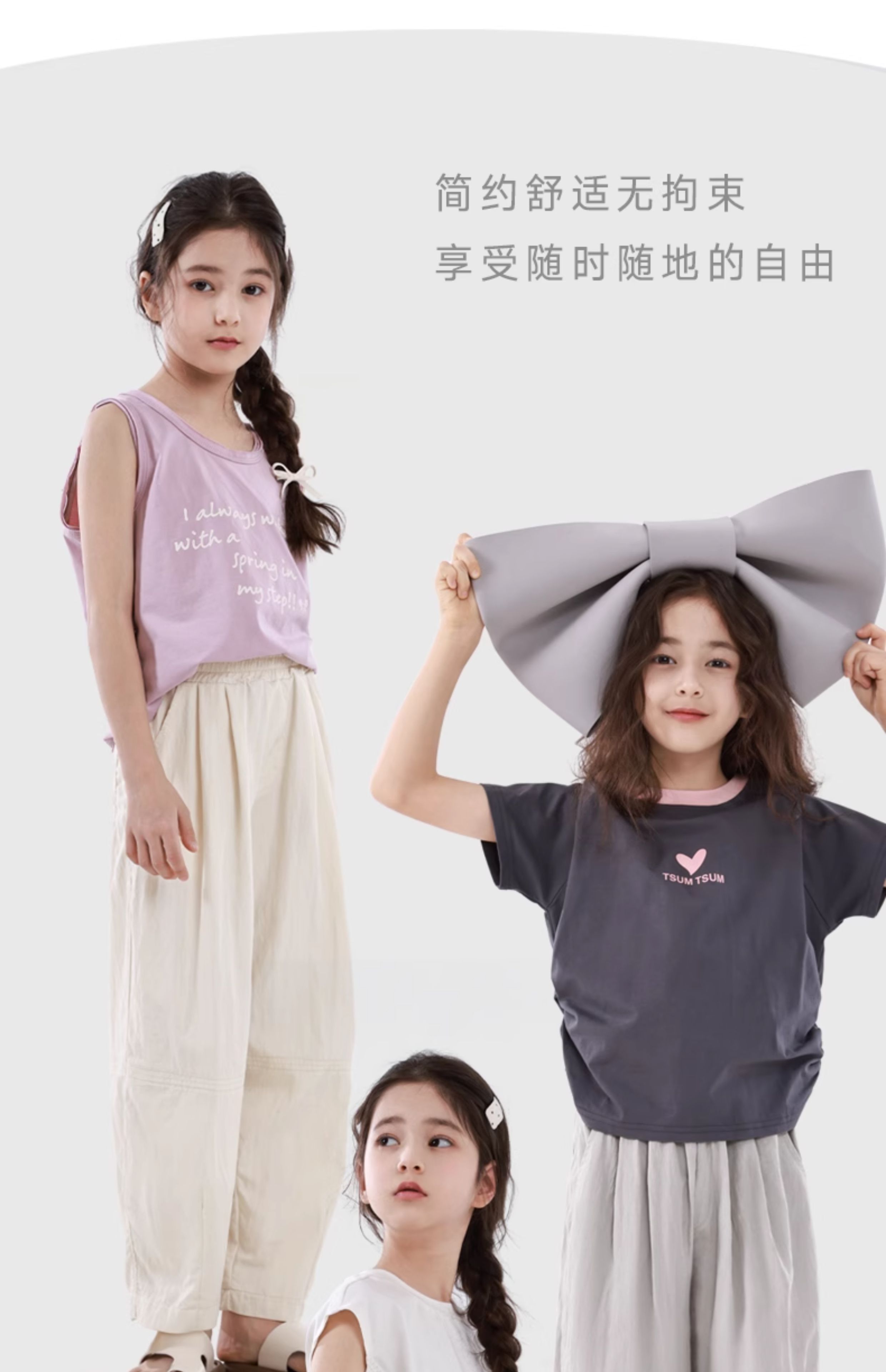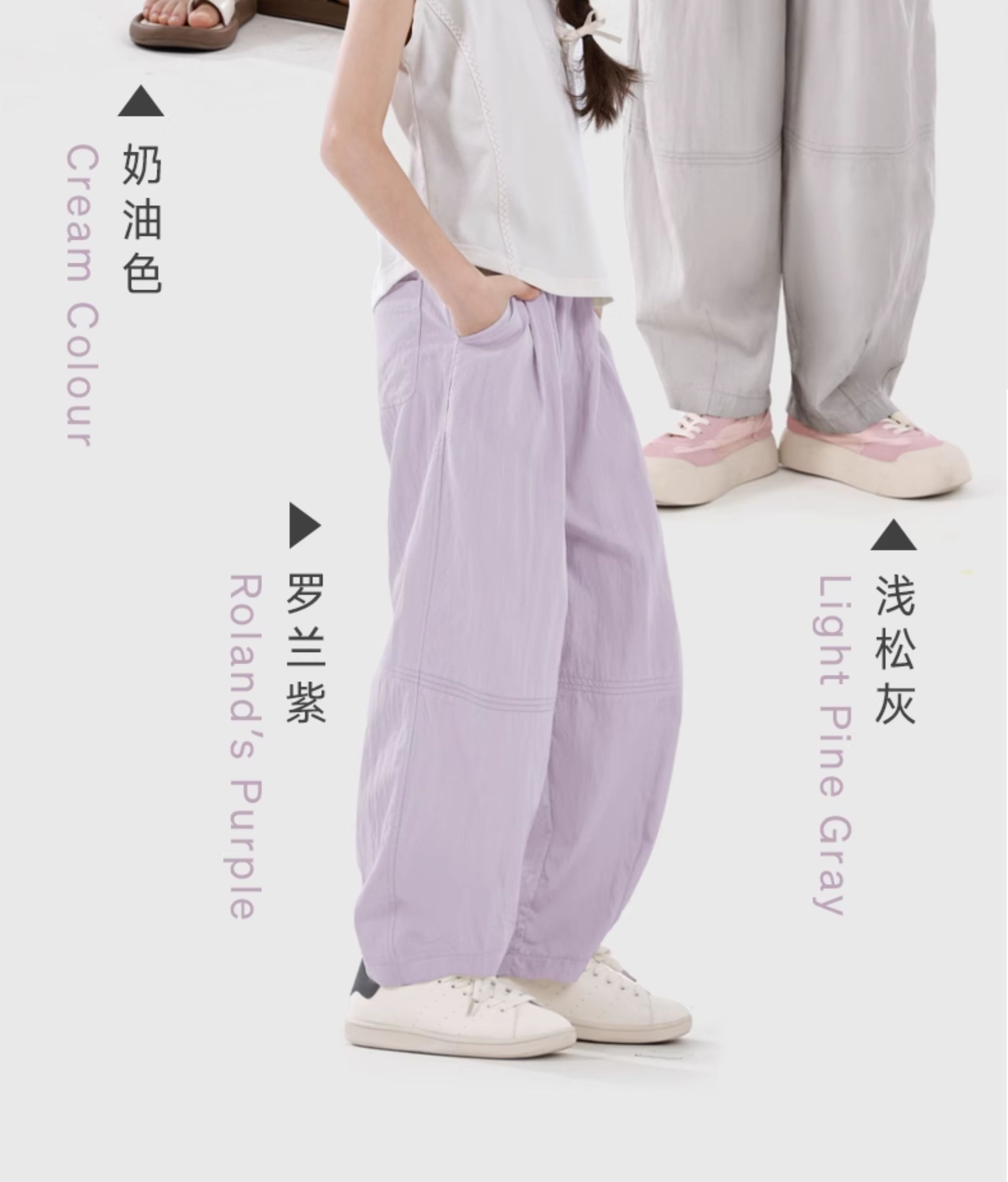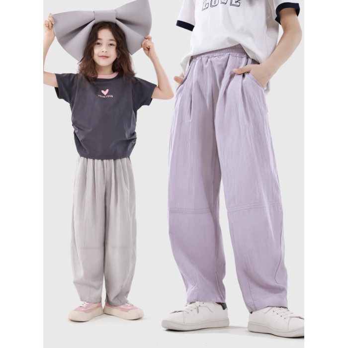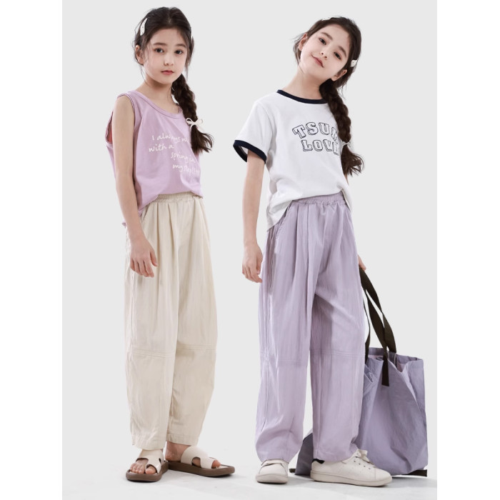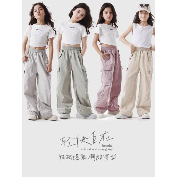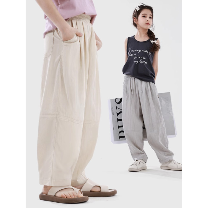 DOMIO女童防蚊褲子25新款輕薄夏休閒工裝褲大童濶腿褲洋氣松弛感