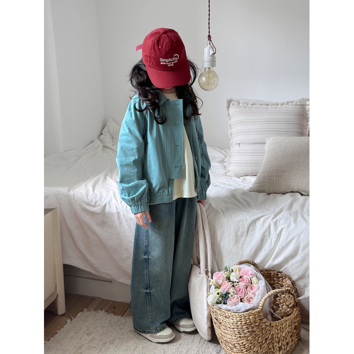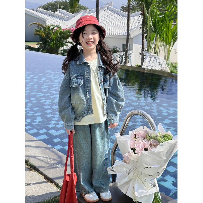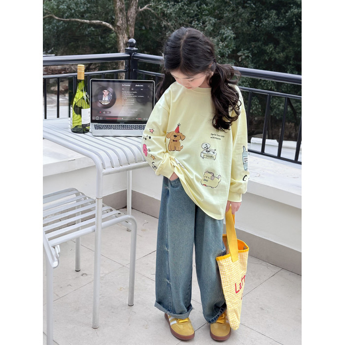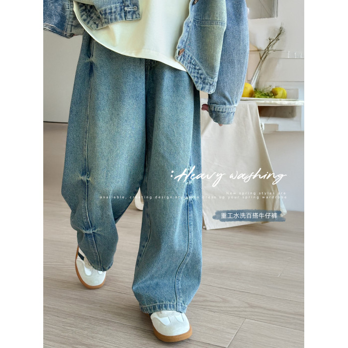 【牛牛】藍小爸童裝女童直筒牛仔褲春季新款百搭寬松休閒濶腿長褲