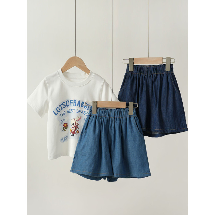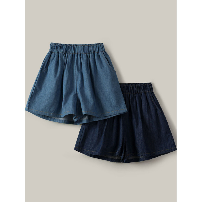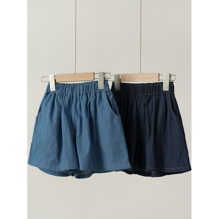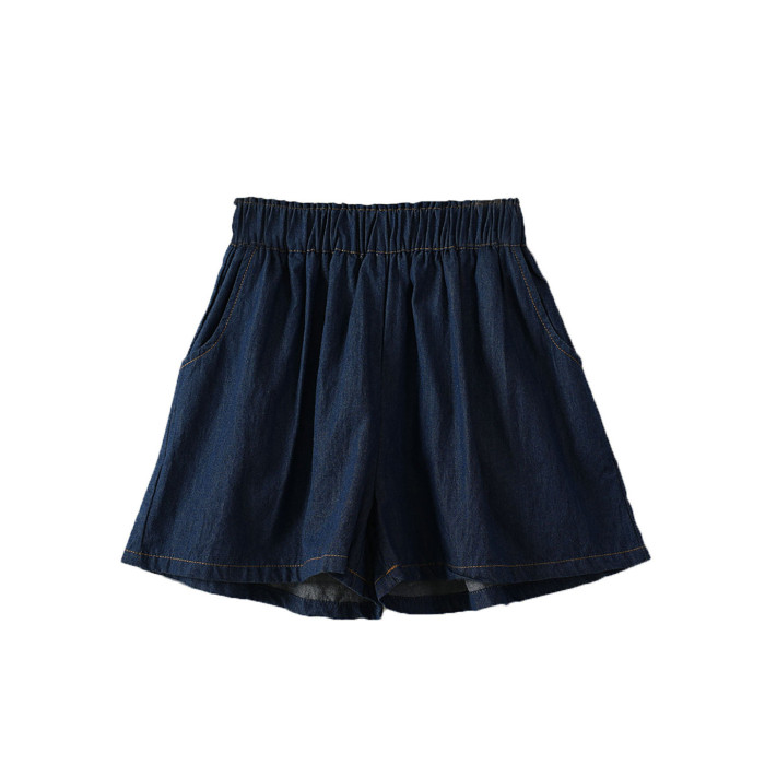 純棉 兒童牛仔水洗短褲 女童松緊腰三分褲 中大童 夏款 童裝