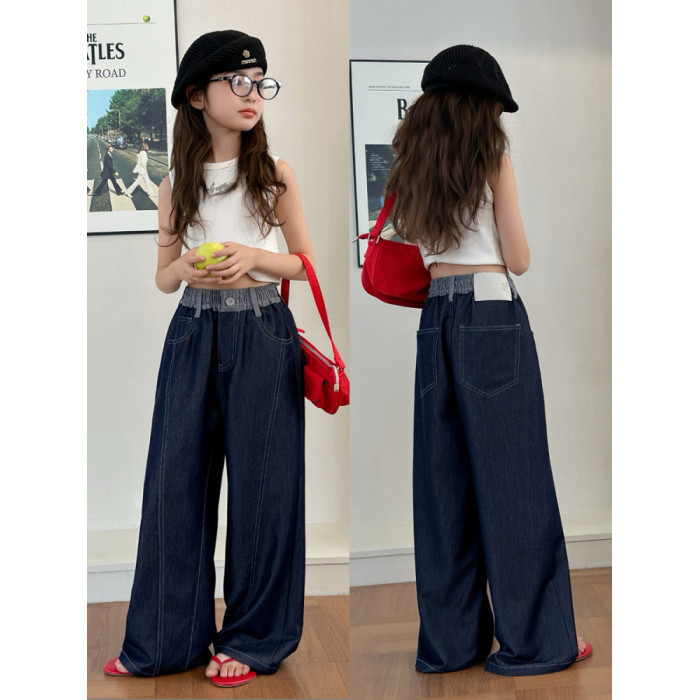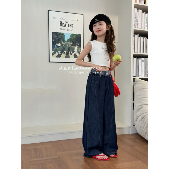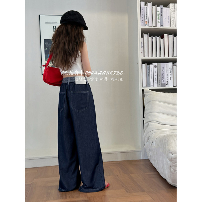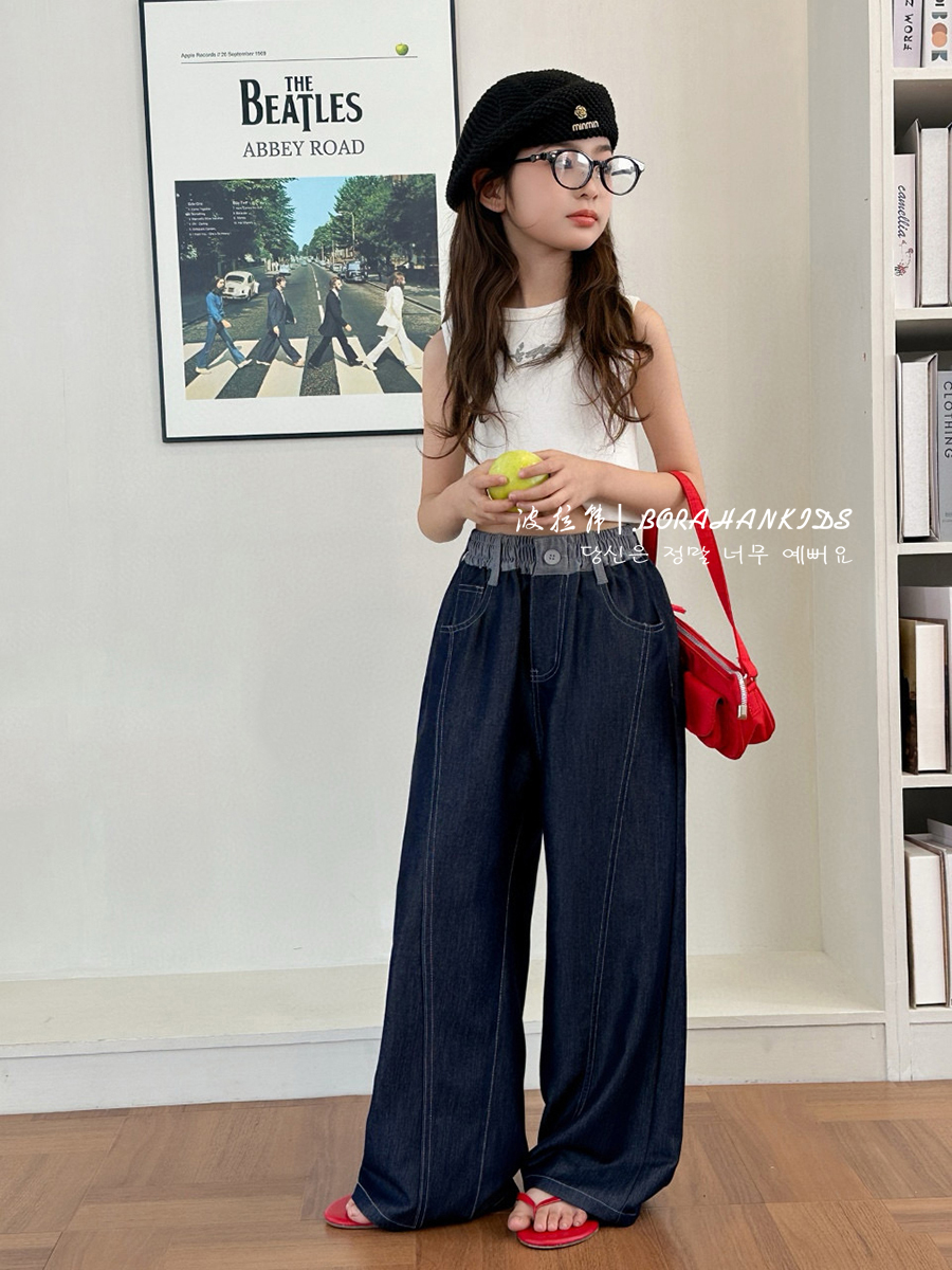 波拉韓女童薄款天絲牛仔褲夏季兒童直筒褲2025中大童防蚊褲抖抖褲