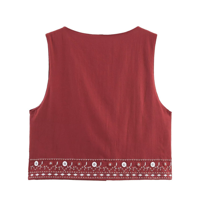女裝2025夏歐美風休閒開衫刺綉短款馬甲背心上衣休閒短褲套裝