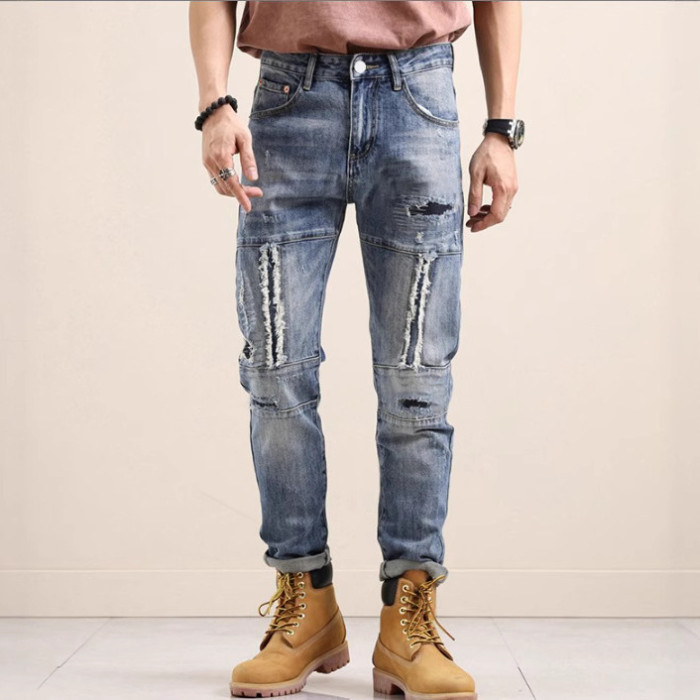 男士牛仔褲2025新款秋季高級塗鴉印花男潮牌修身彈力小腳褲