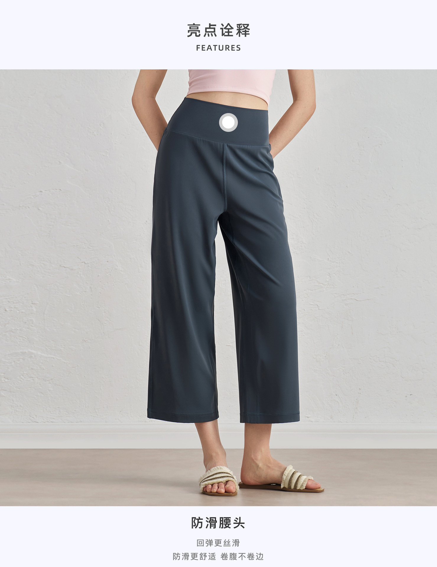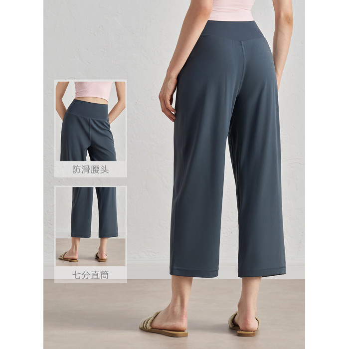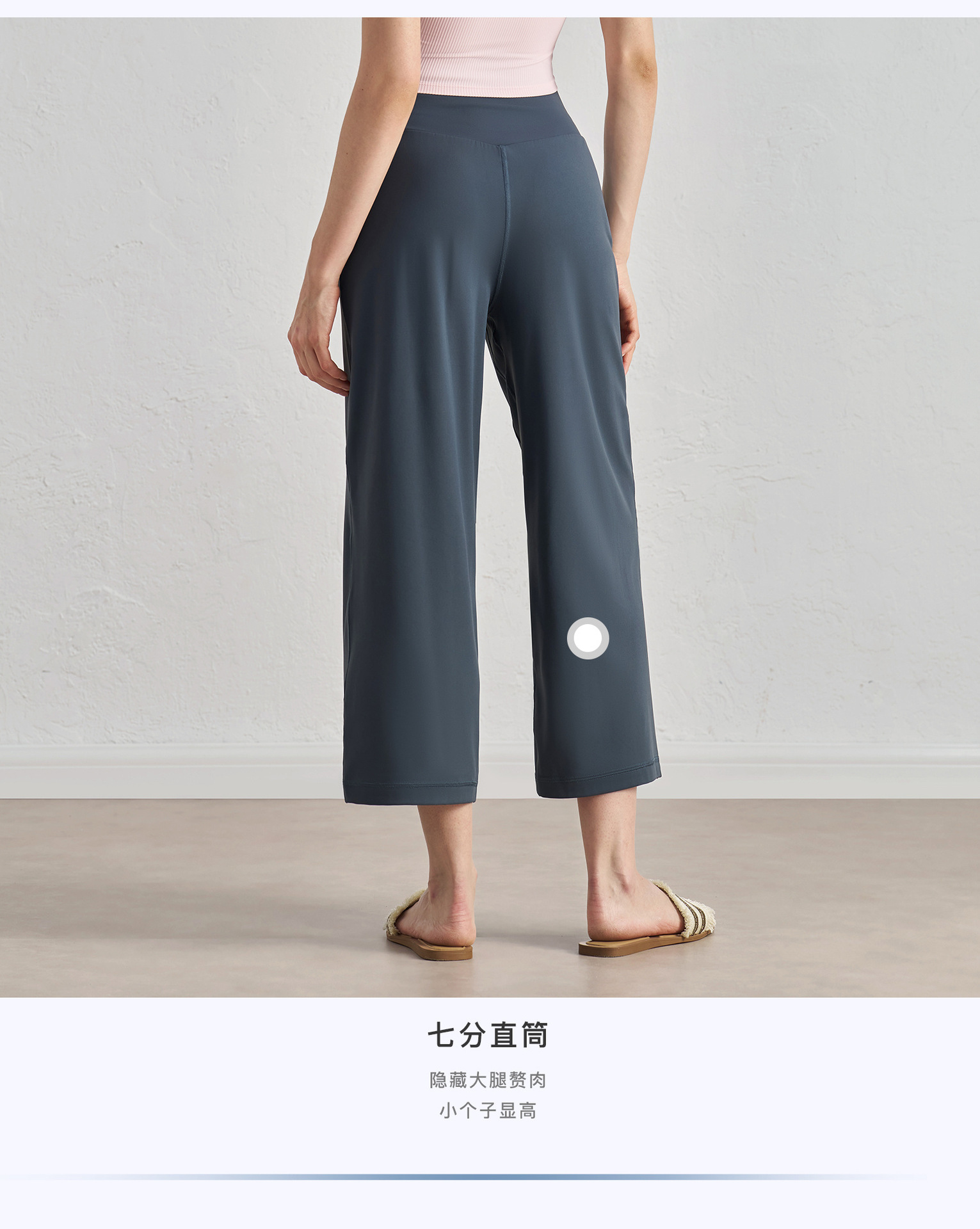 新款春夏通勤高腰八分直筒健身運動褲寬松濶腿褲女顯瘦休閒瑜伽褲