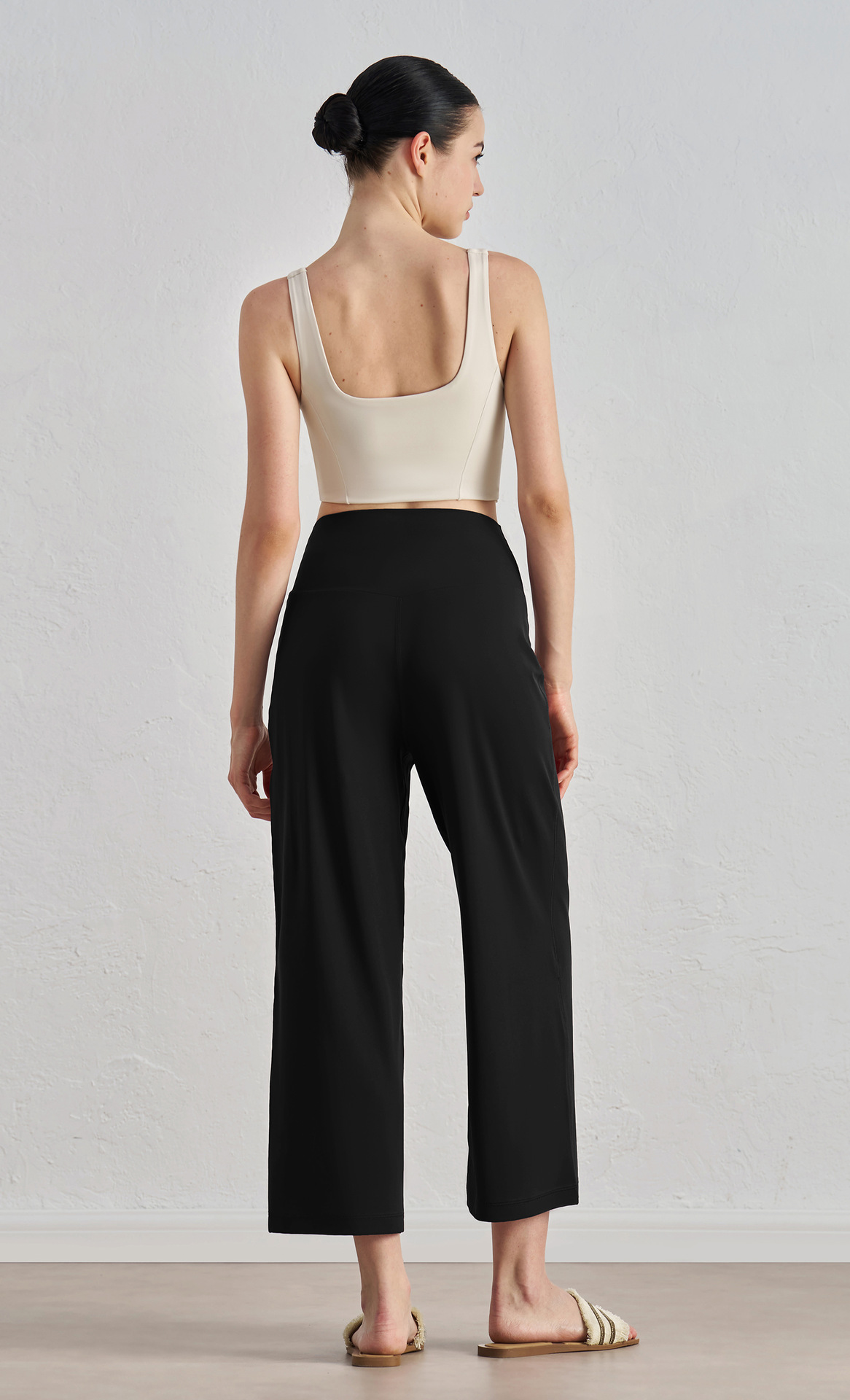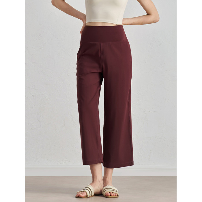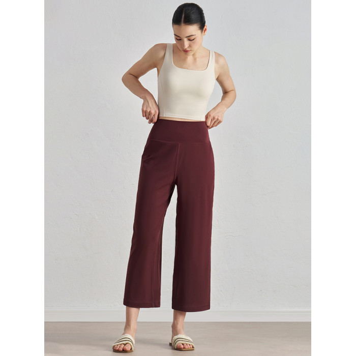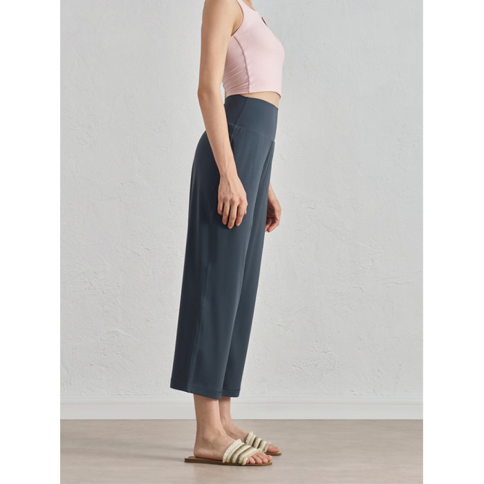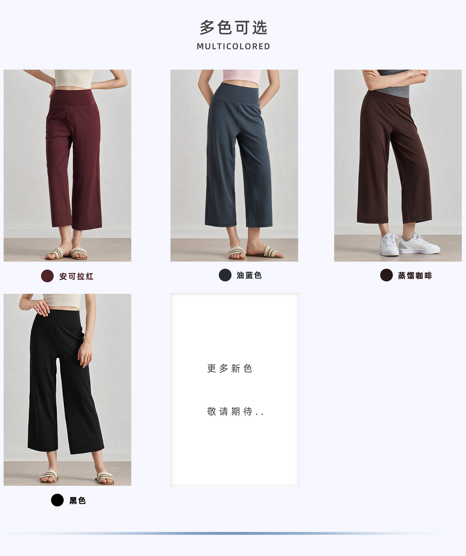 新款春夏通勤高腰八分直筒健身運動褲寬松濶腿褲女顯瘦休閒瑜伽褲